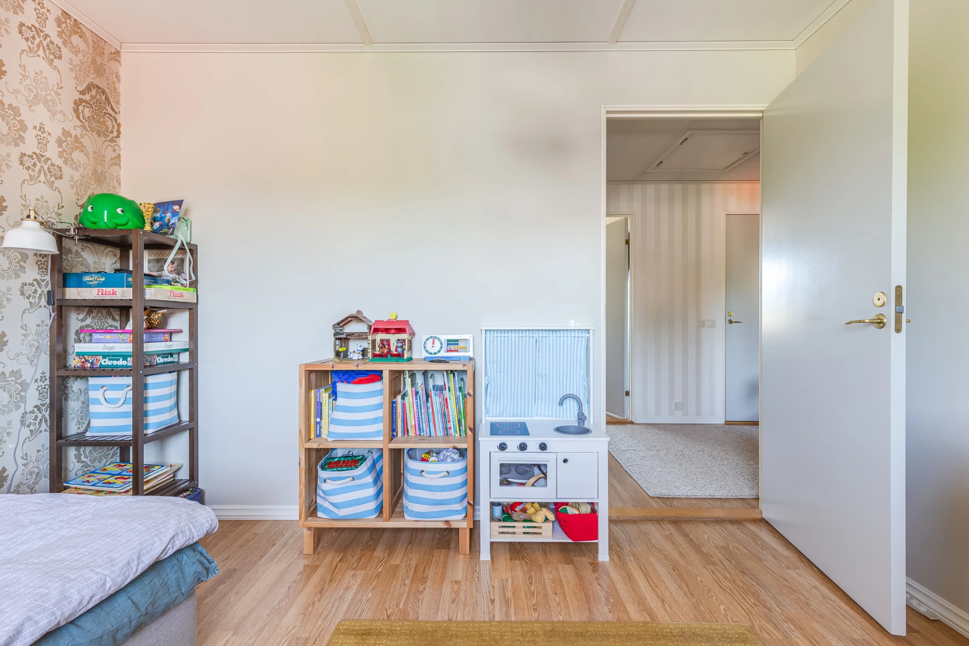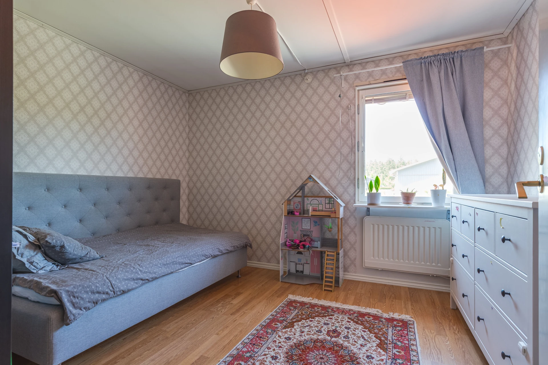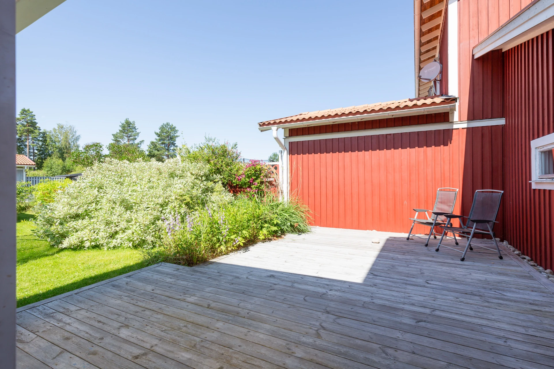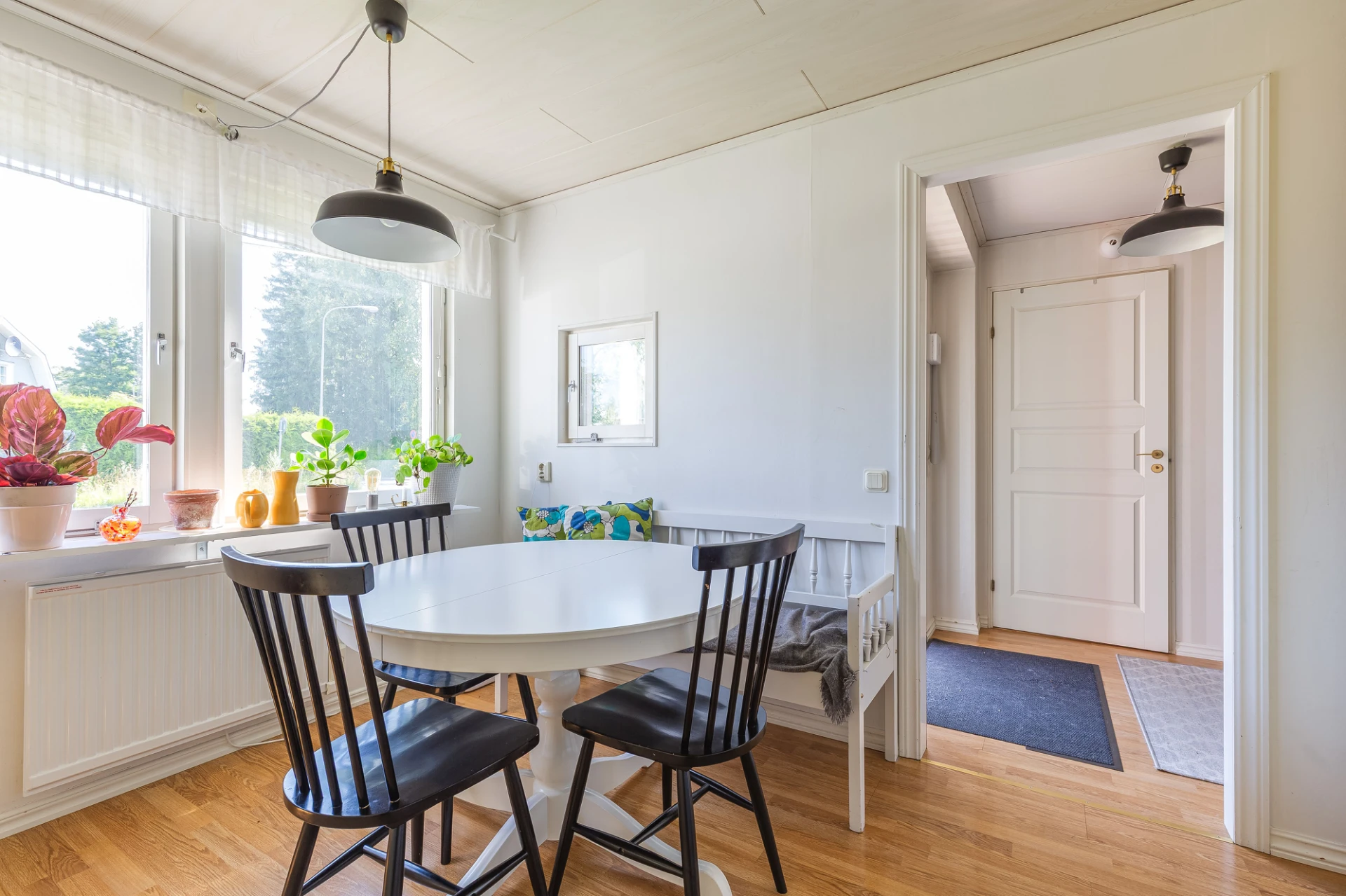 Bostaden är smakfullt fördelad på två våningsplan och erbjuder genomtänkta ytor för hela familjen. Entréplan välkomnar med en rymlig och generös hall som leder vidare till ett luftigt matrum med braskamin. Härifrån når du det inglasade uterummet och det generösa soldäcket, perfekta platser för sommarens middagar och lata dagar i solen. Den öppna planlösningen mellan matrum och vardagsrum skapar en social och trivsam känsla. För den som har behov av ett extra sovrum finns här också en utmärkt möjlighet att sätta upp en vägg och på så vis skapa ett fjärde sovrum, utan att kompromissa med bostadens funktionalitet. Det stilrena köket är funktionellt med goda förvaringsmöjligheter och plats för matbord. På entréplanet finns även ett helkaklat duschrum samt en praktisk tvättstuga med groventré. På övre plan hittar du tre sovrum varav ett med utgång till balkong, perfekt plats för morgonkaffet. Här finns även en klädkammare och ett badrum.