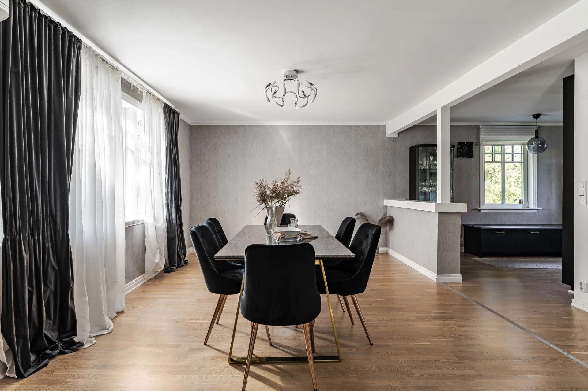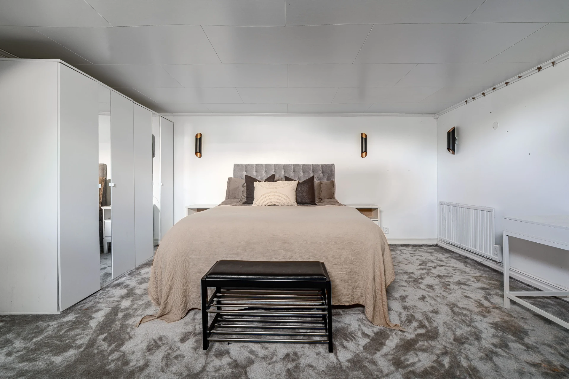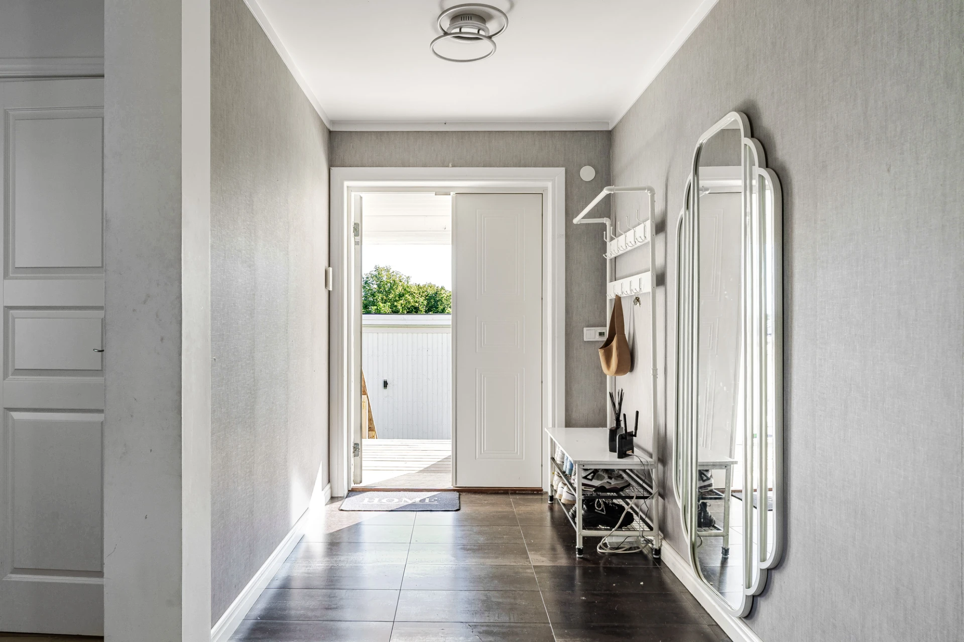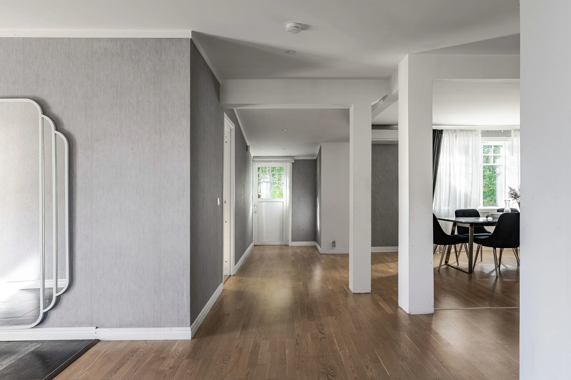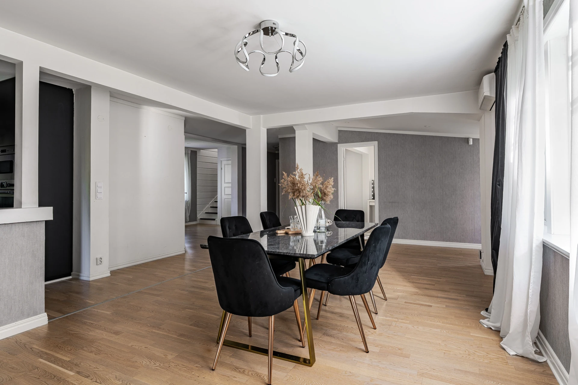 När du kliver in genom entrén möts du av en rymlig hall med praktiskt klinkergolv och gott om plats för avhängning. Härifrån öppnar sig ett ljust vardagsrum med utrymme för både soffgrupp och matplats. Från vardagsrummet nås altanen, och tack vare den öppna planlösningen binds rummet naturligt samman med det stilrena köket som totalrenoverades 2021. På entréplan finns även ett sovrum samt ett modernt, helkaklat badrum i generös storlek, utrustat med både dusch och badkar. Övre plan erbjuder ett rymligt allrum, perfekt som barnens egna tv-rum samt två sovrum och en praktisk wc. Källarplanet bjuder på en stor gillestuga som lämpar sig utmärkt som tonårsrum eller gästrum, tillsammans med tvättstuga och goda förvaringsytor.