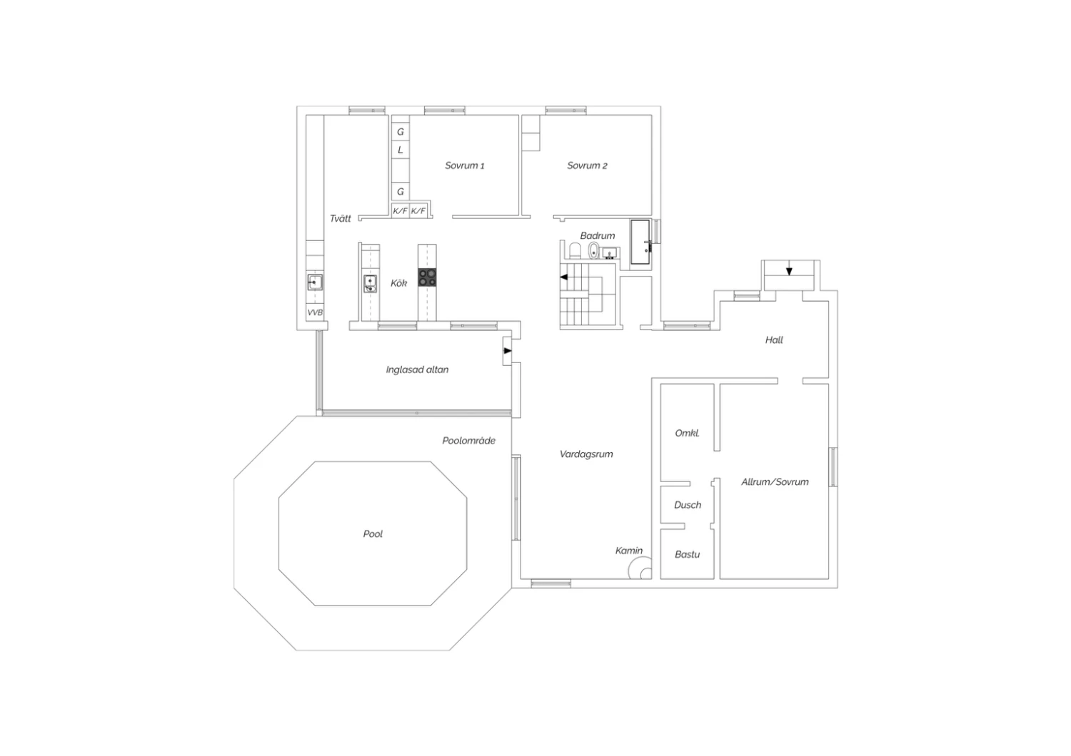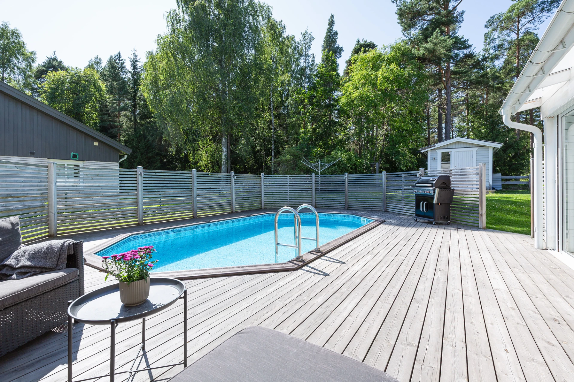 - pool: byggd 2012, ny pool liner 2020, ny poolpump 2023. Yrkesman.