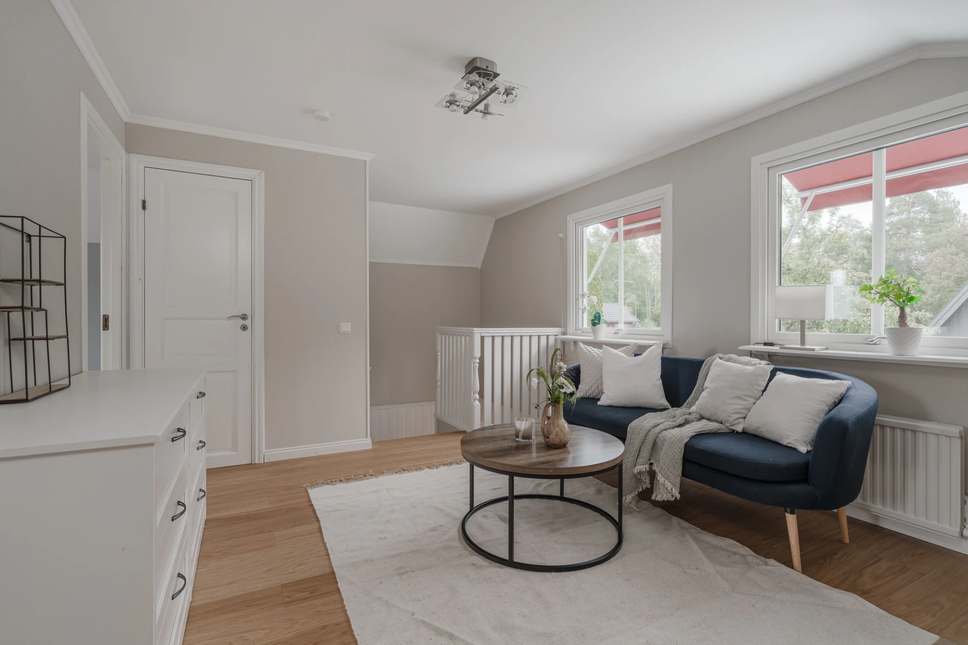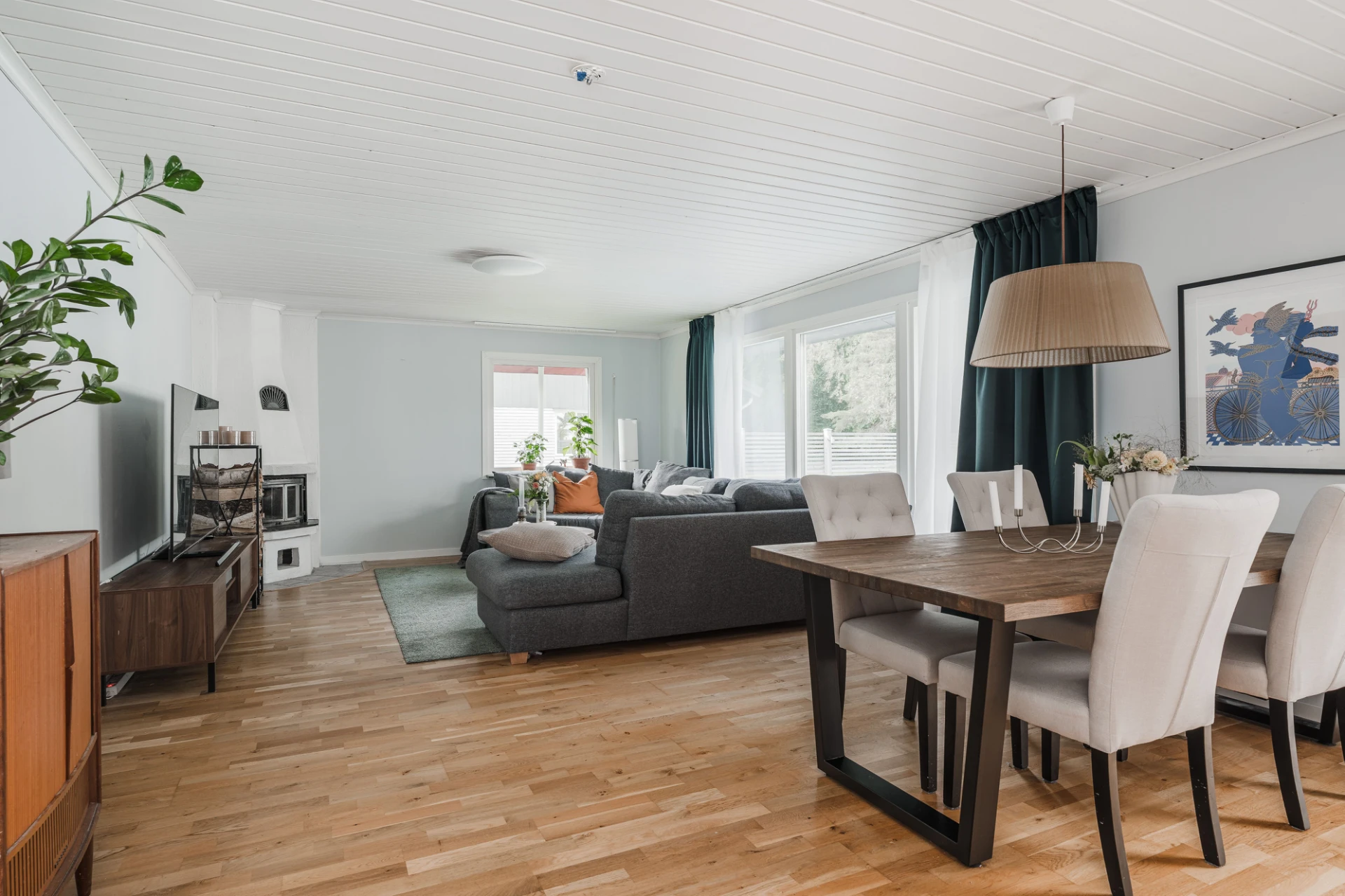 Här erbjuds en charmig och välplanerad 1 ½-plansvilla med det lilla extra här finns en plats där varje årstid har sin egen magi! Med stora, ljusa och luftiga rum i öppen planlösning bjuder hemmet på både rymd och trivsel. Här är det lätt att trivas oavsett om du söker plats för familjeliv, avkoppling eller sociala tillställningar.