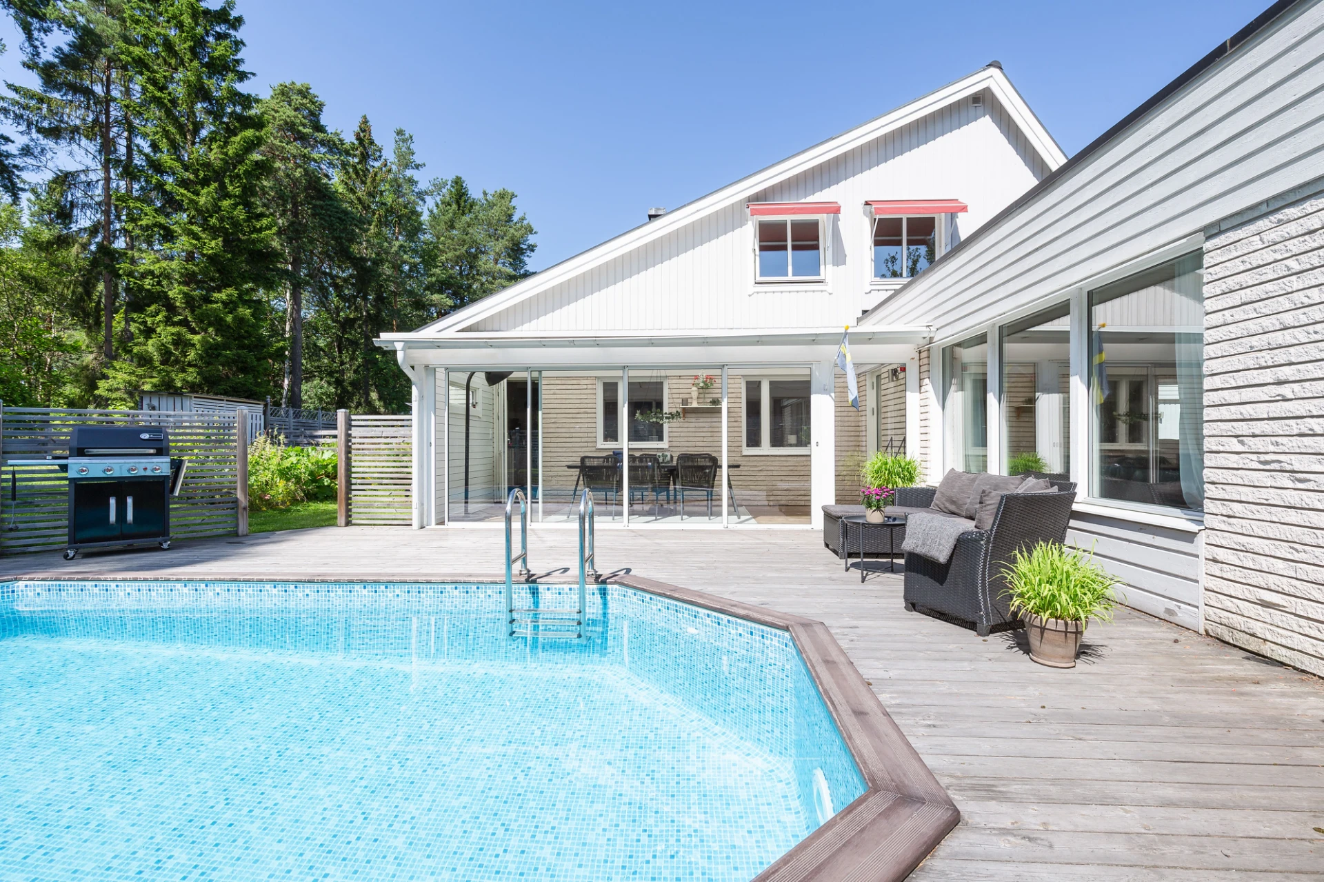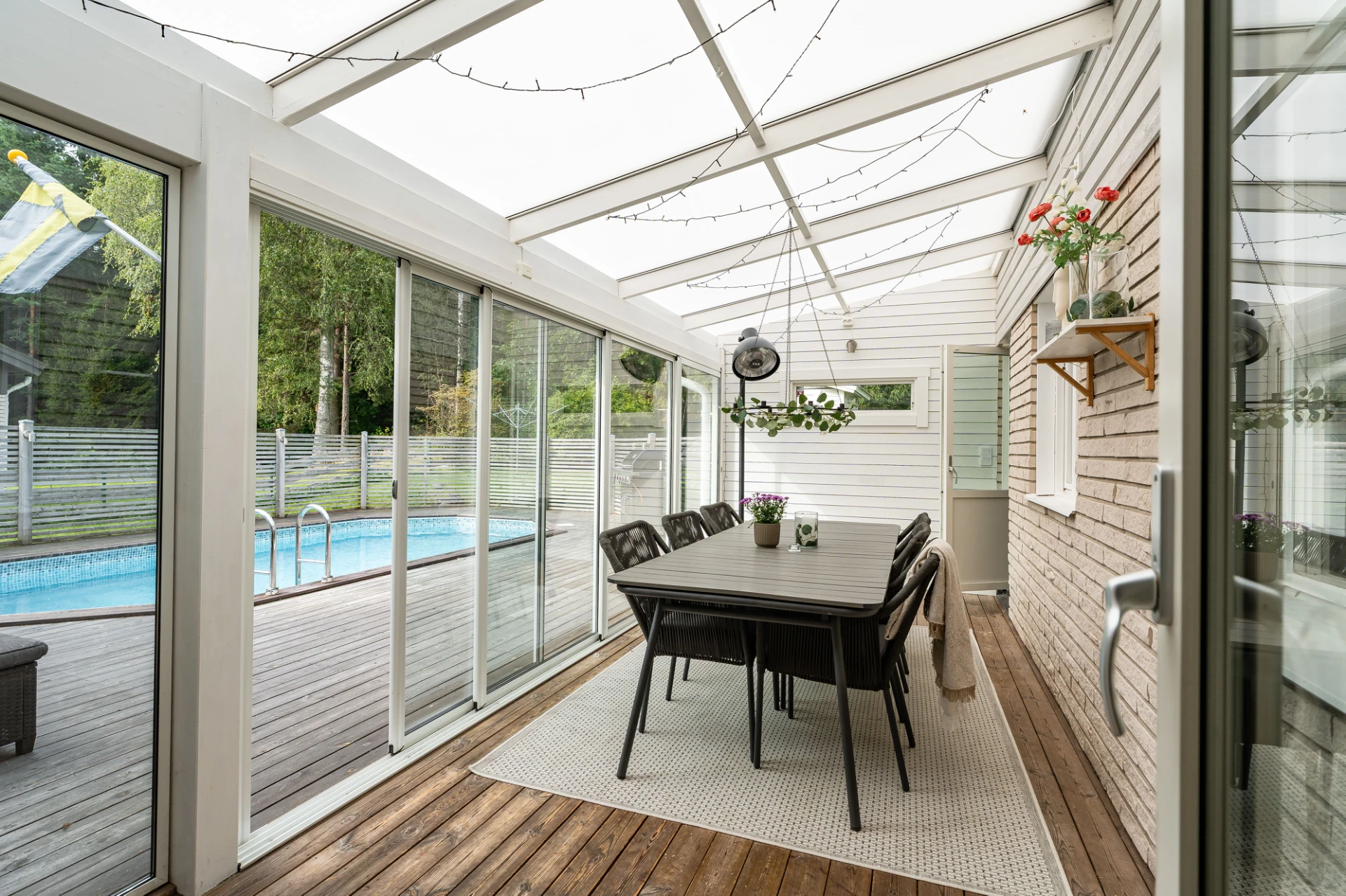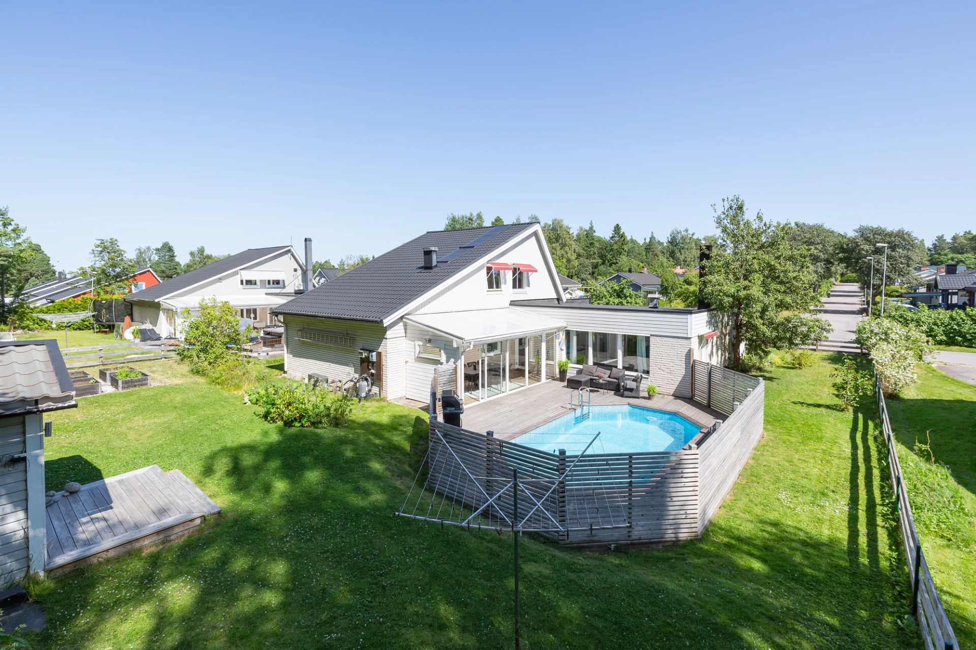 För dig som gillar att njuta av livet utomhus väntar en fantastisk uteplats med en stor, uppvärmd pool, perfekt för lata sommardagar och härliga grillkvällar. Intill finns även ett inglasat uterum som blir ett extra vardagsrum under stora delar av året.