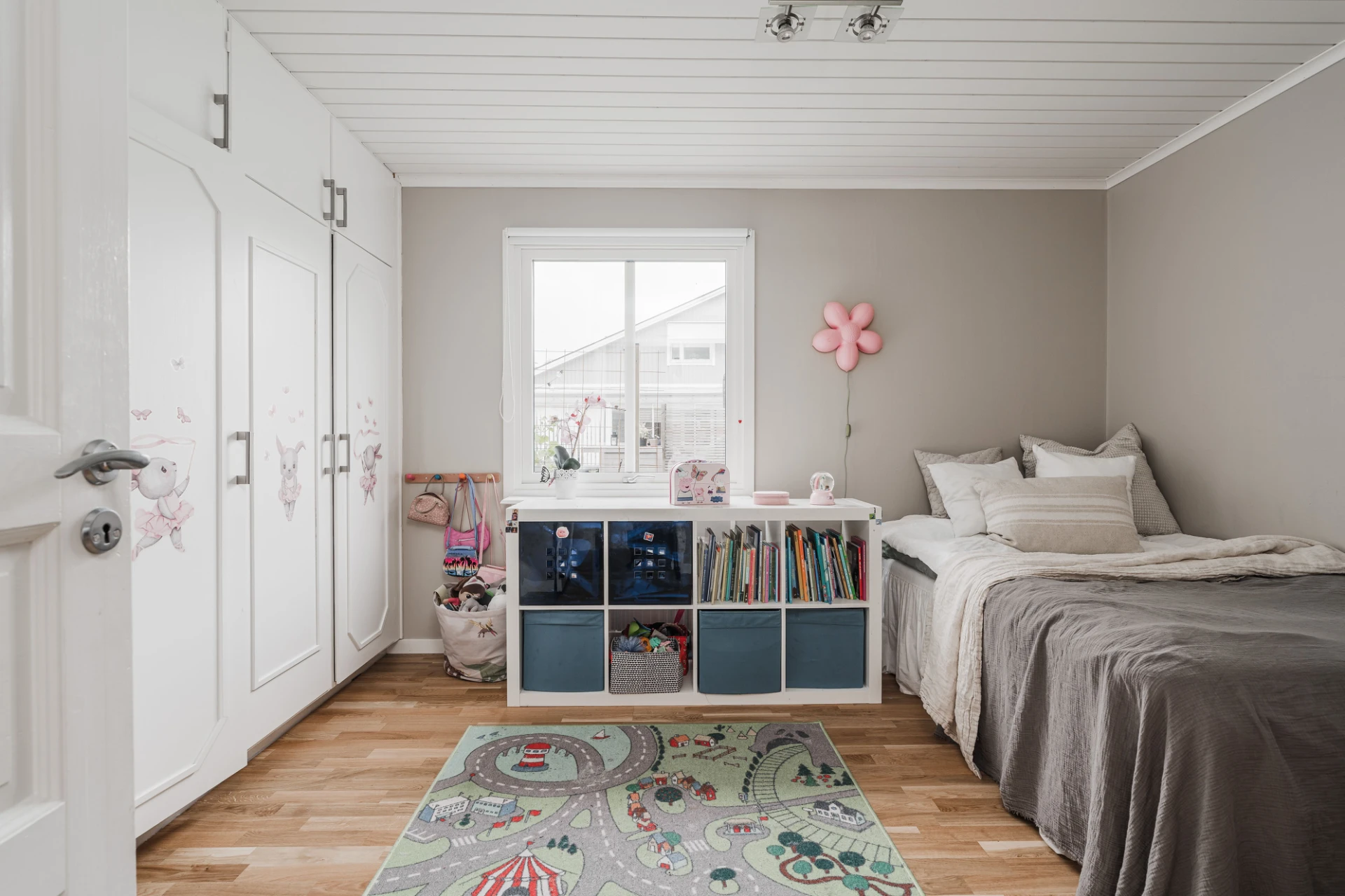 Villan har genomgående mycket goda förvaringsutrymmen som gör det enkelt att hålla ordning och reda. Huset är rymligt och är större än de flesta husen i området då det byggts ut med åren. Idag har du vardagsrum, allrum och fyra sovrum men allrummet skulle mycket väl kunna fungera som ett perfekt master bedroom och således ge fem sovrum. Utöver detta har du för ett fungerande vardagligt liv ett fräscht kök, badrum, gäst-wc, och tvättstuga.
