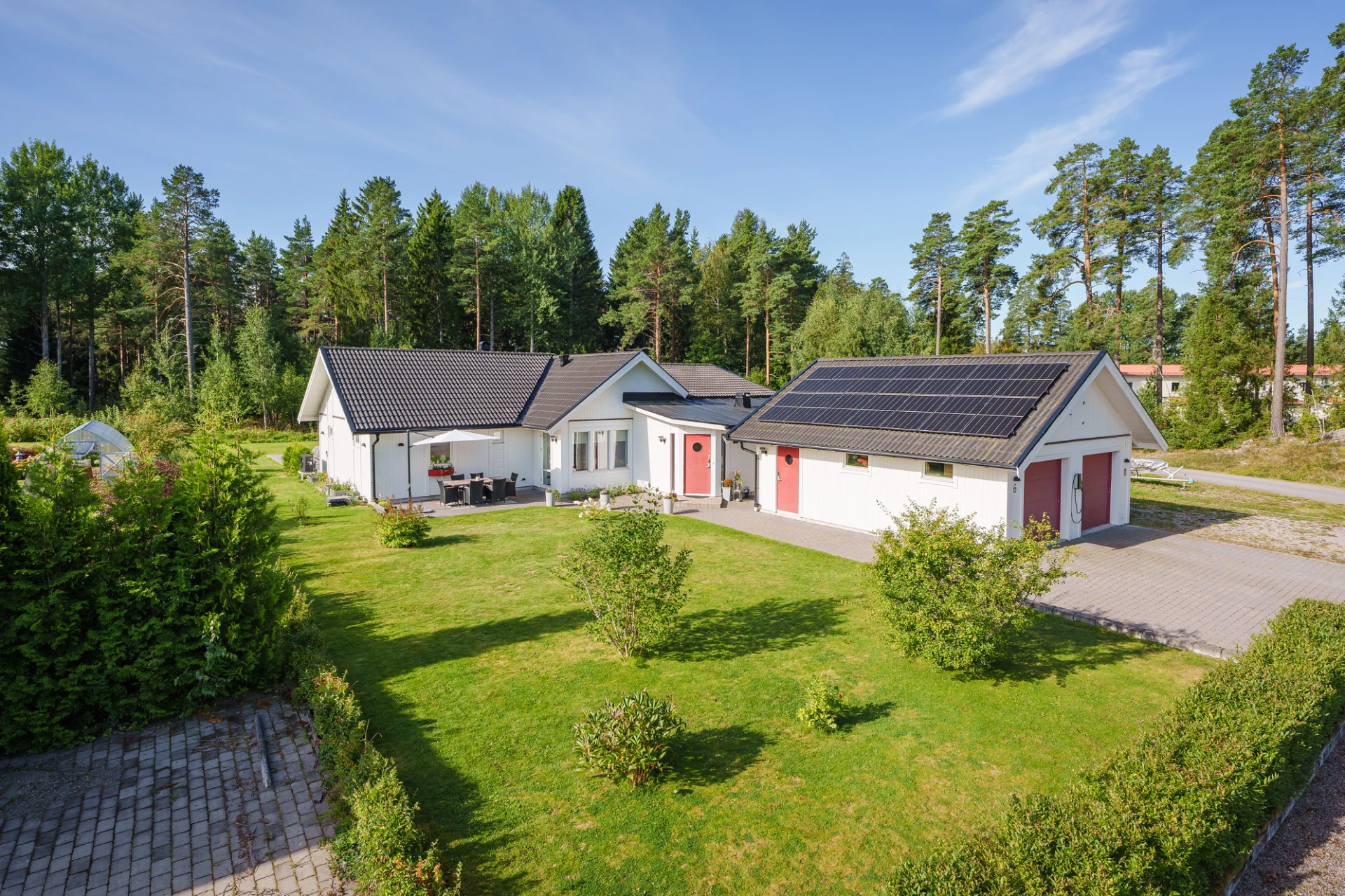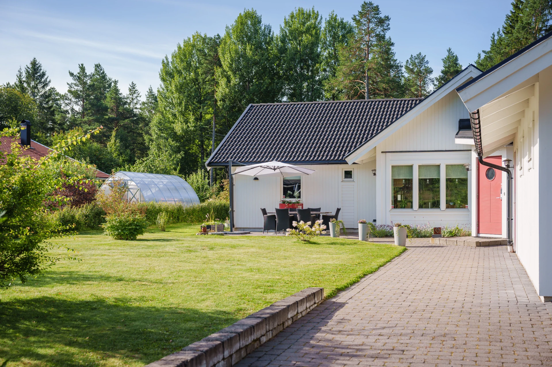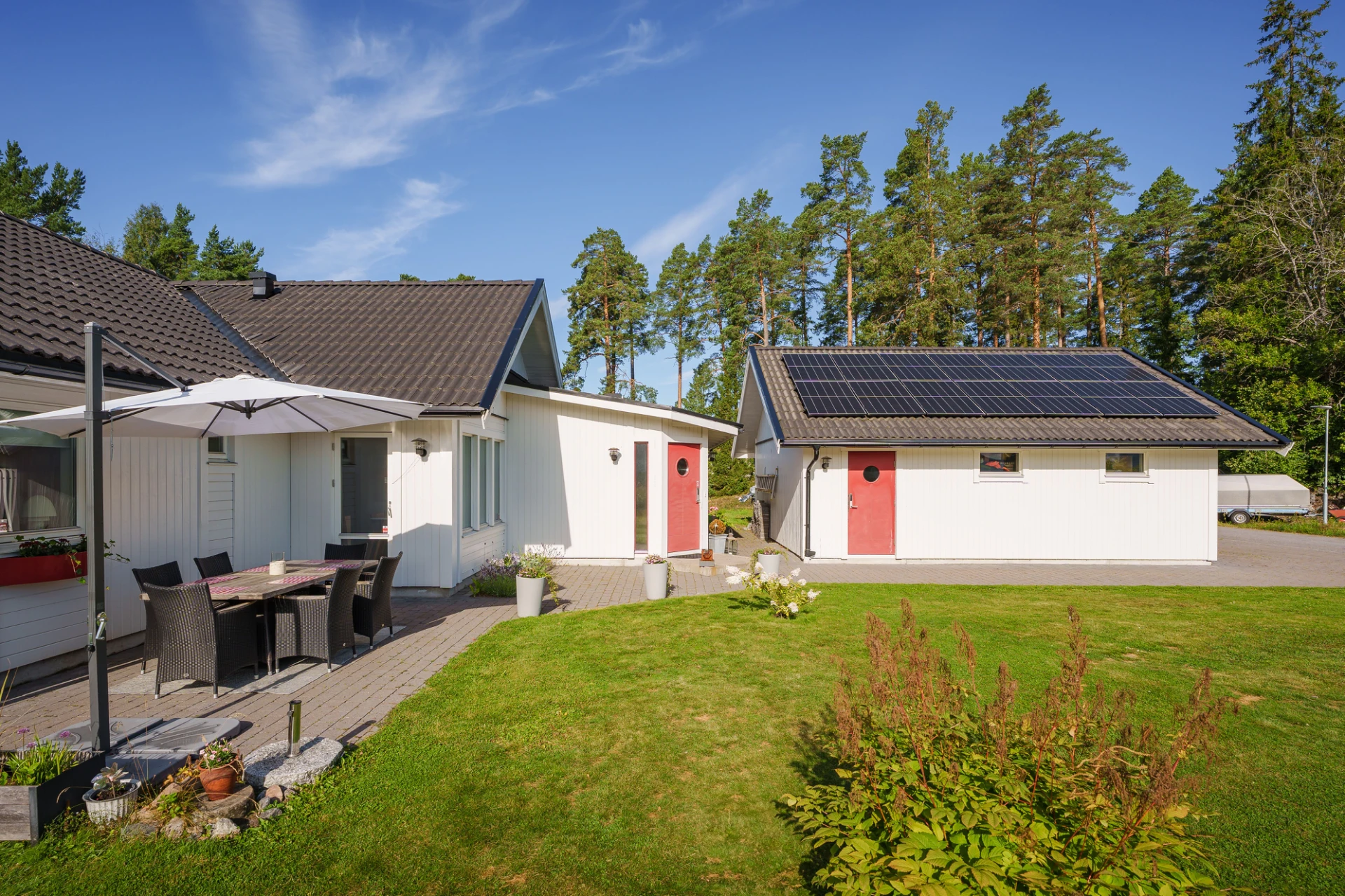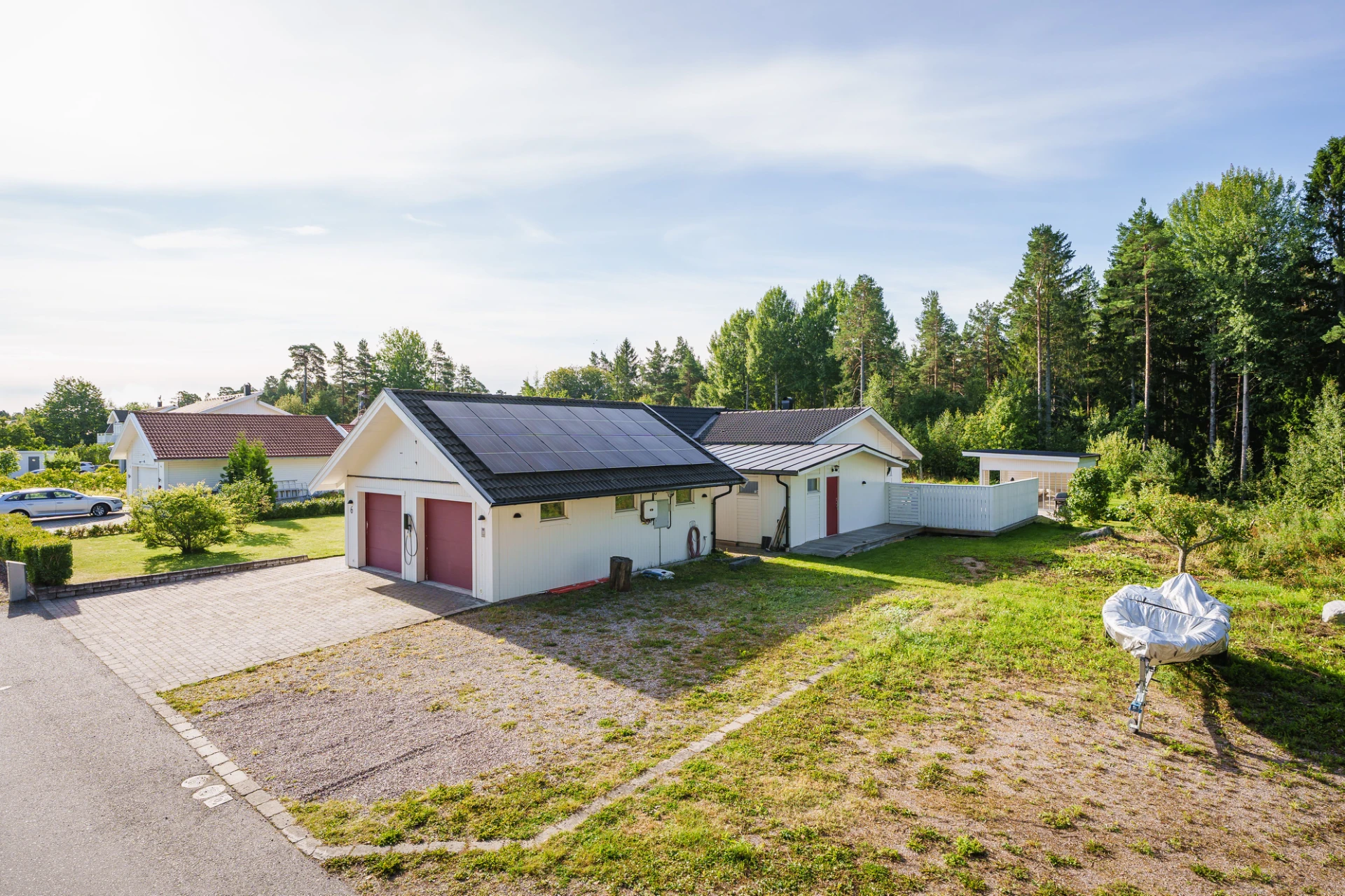 Parkettgolv och väggar i en ljus nyans. Rummet kan exempelvis användas som allrum, kontor, gym eller extra sovrum. Utgång till husets nordvästra sida.