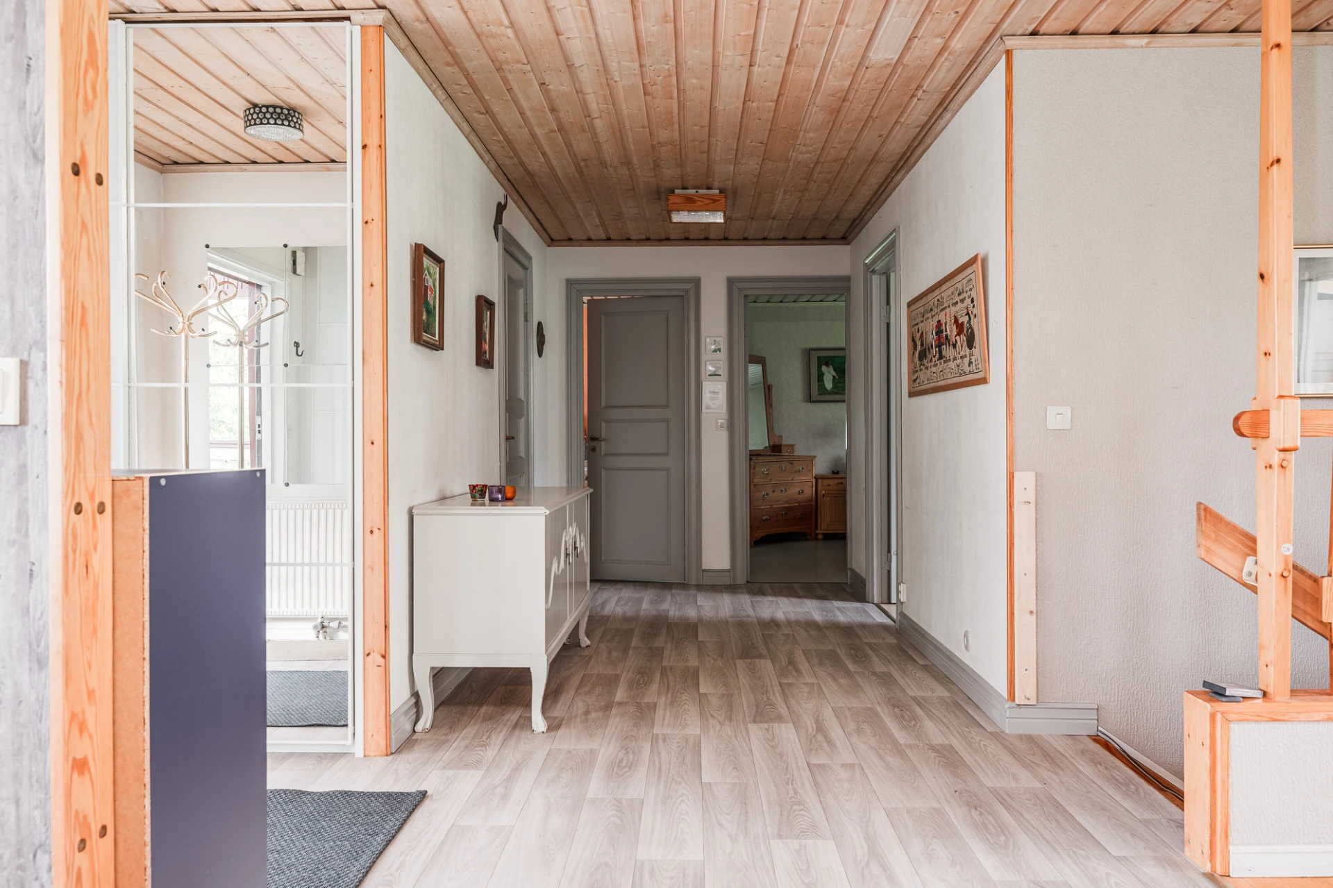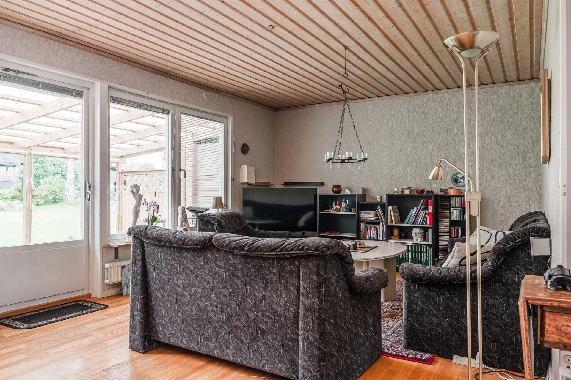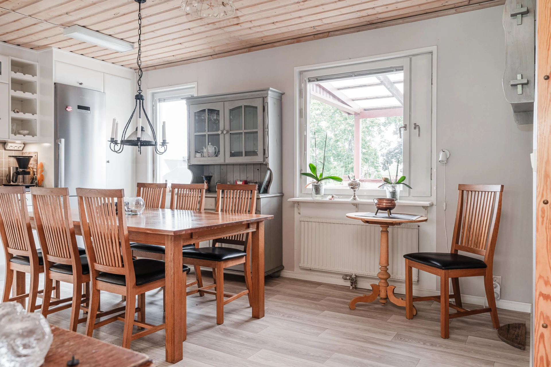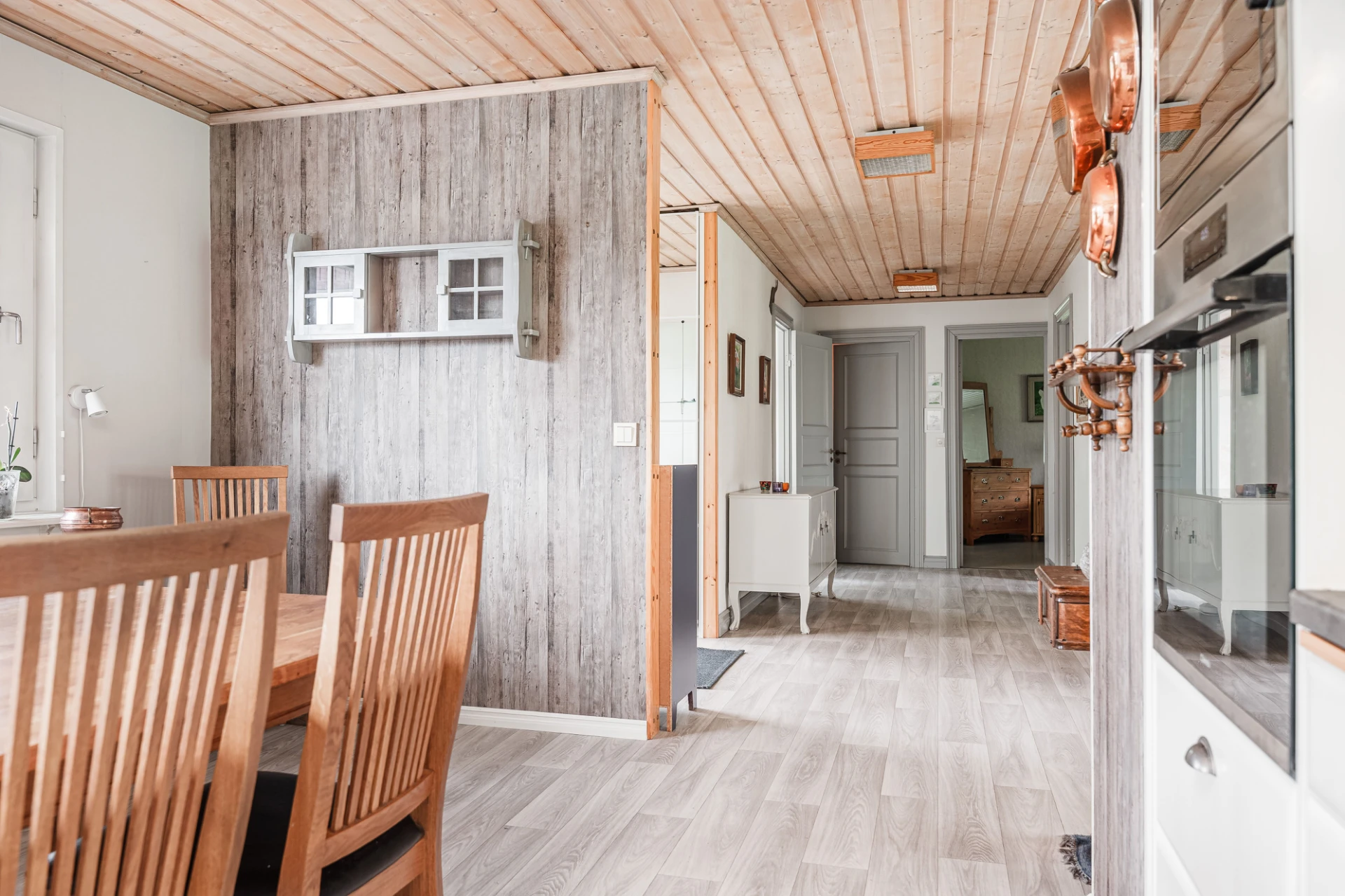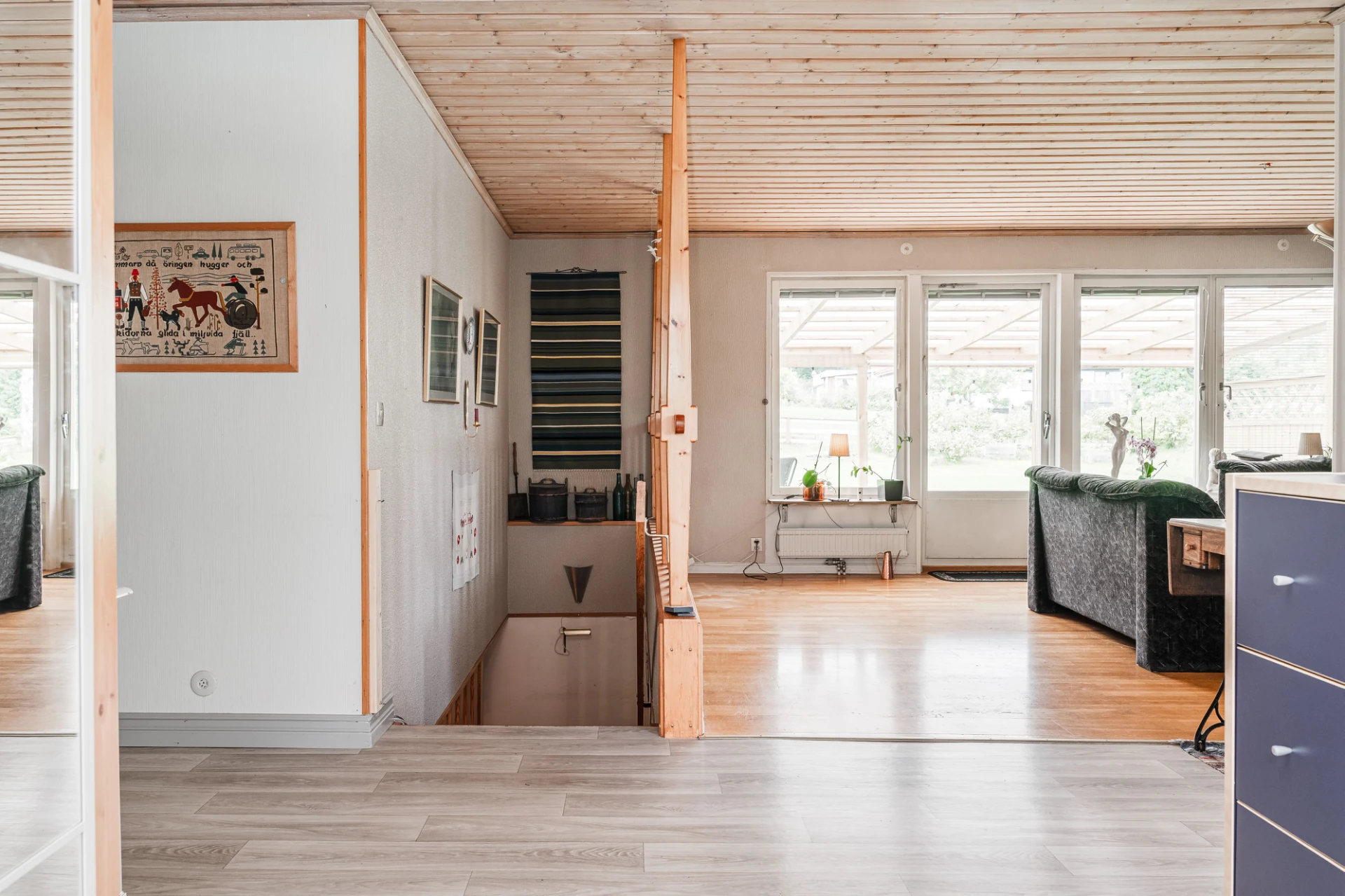 Redan i hallen möts du av ett stilrent garderobssystem och en välkomnande känsla. Det ljusa köket har generösa arbetsytor, bra förvaring samt plats för ett större matbord där hela familjen får plats. Vardagsrummet bjuder på ett härligt ljusinsläpp från stora fönster och utgång till en altan med tak – perfekt för både morgonkaffet och grillkvällen. Vidare på entréplanet finns tre sovrum och ett badrum. I den fullt utrustade källaren väntar en mysig gillestuga med kamin, ytterligare ett sovrum, toalett, pannrum, rymlig tvättstuga med bastu, utrymme för hobbyverksamhet samt ett extra förråd. Härifrån nås även dubbelgaraget med plats för två bilar och goda förvaringsmöjligheter.