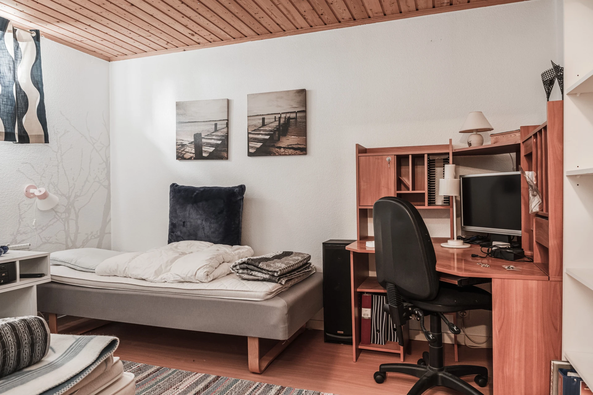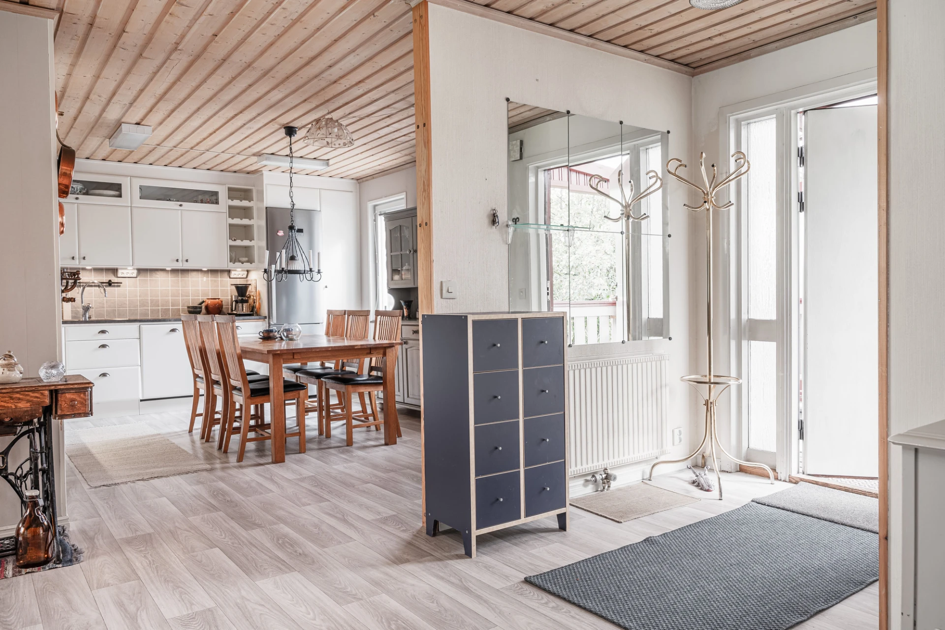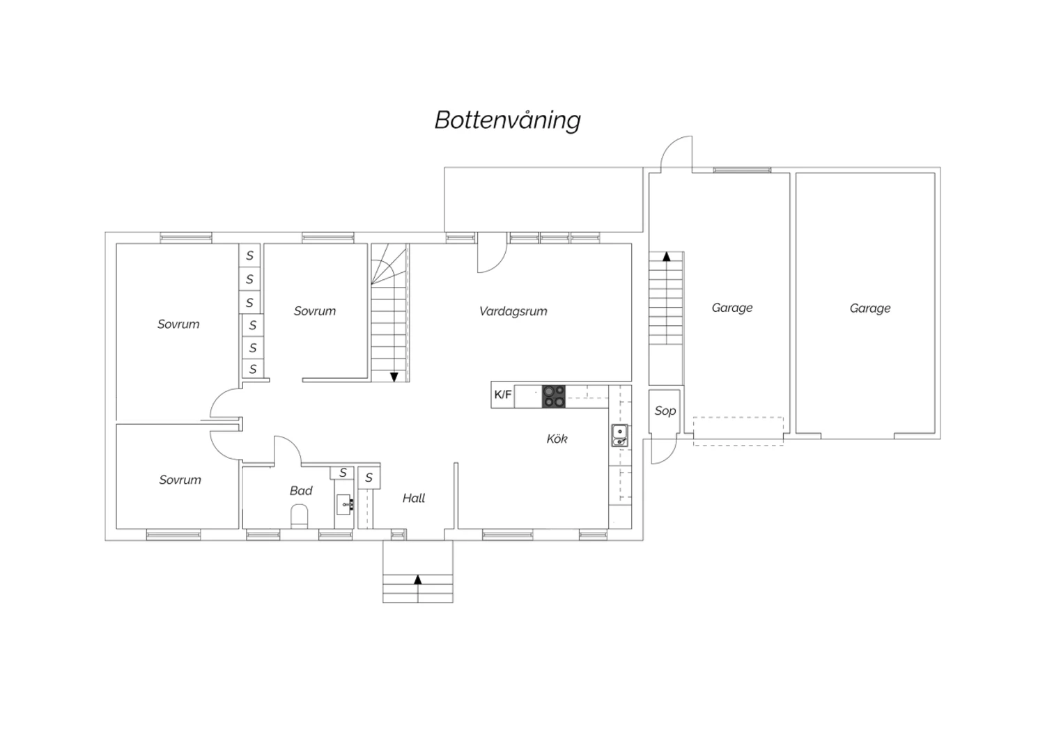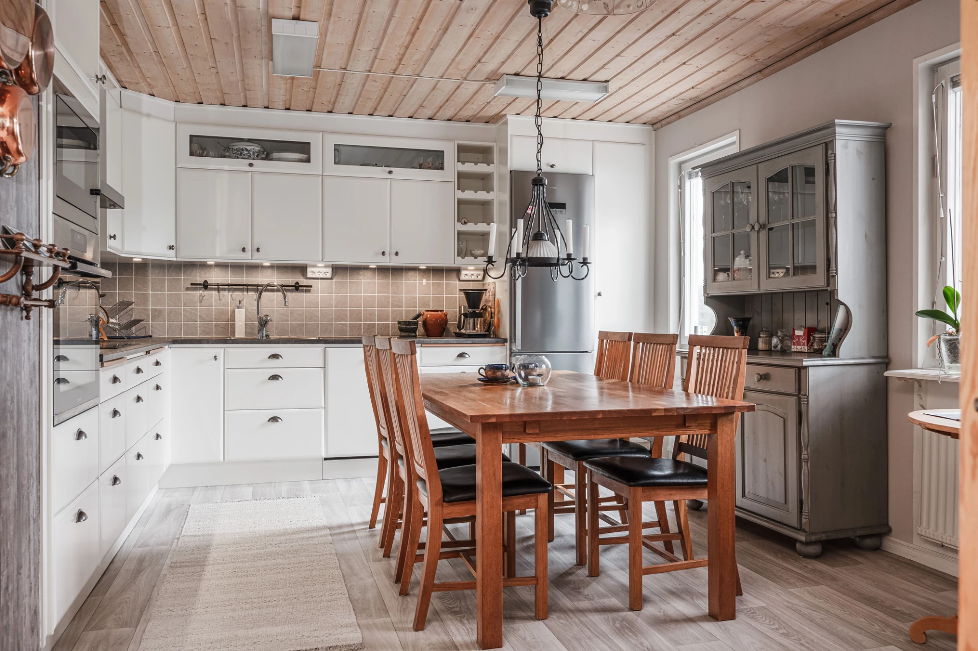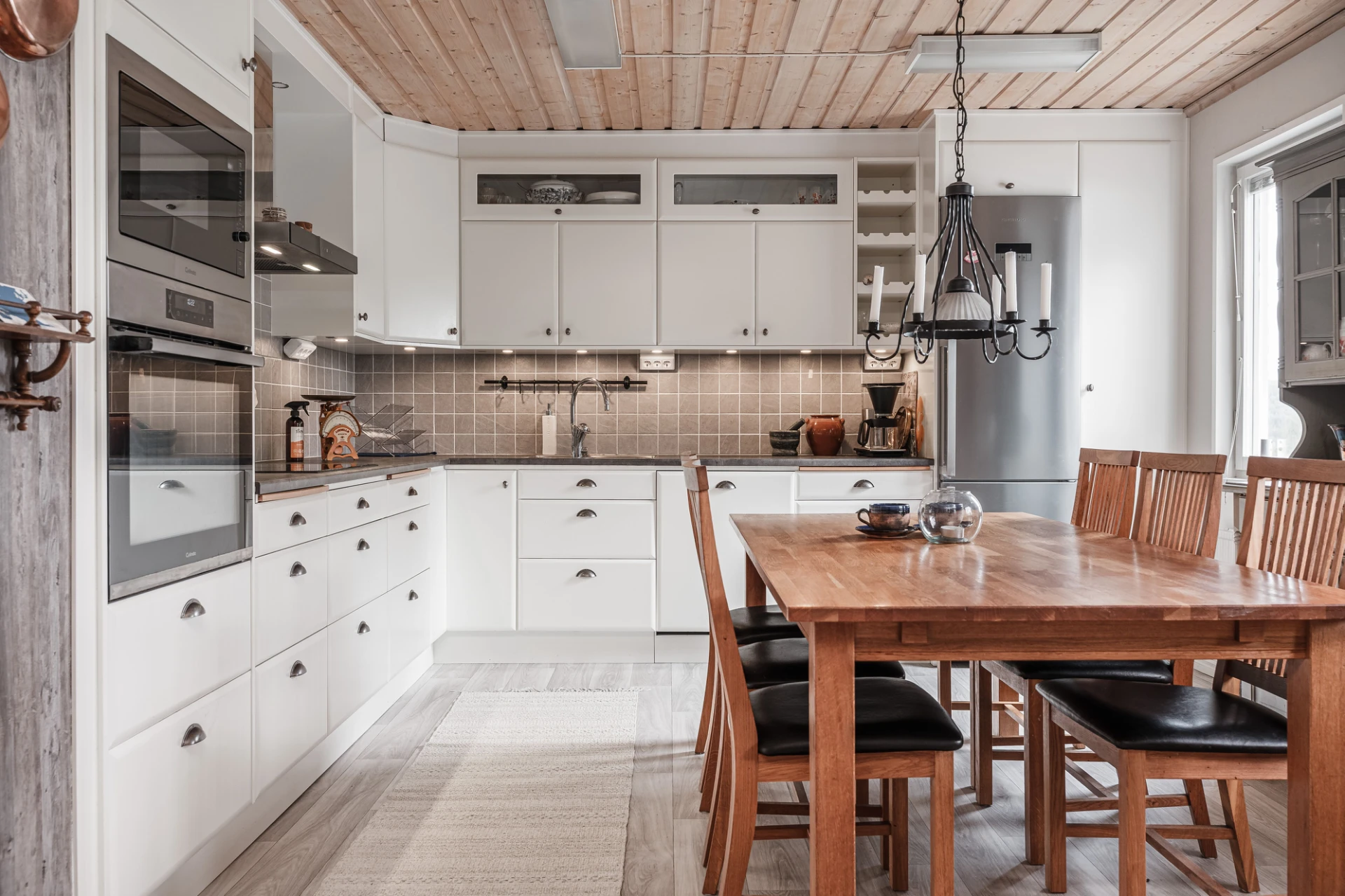 Redan i hallen möts du av ett stilrent garderobssystem och en välkomnande känsla. Det ljusa köket har generösa arbetsytor, bra förvaring samt plats för ett större matbord där hela familjen får plats. Vardagsrummet bjuder på ett härligt ljusinsläpp från stora fönster och utgång till en altan med tak – perfekt för både morgonkaffet och grillkvällen. Vidare på entréplanet finns tre sovrum och ett badrum. I den fullt utrustade källaren väntar en mysig gillestuga med kamin, ytterligare ett sovrum, toalett, pannrum, rymlig tvättstuga med bastu, utrymme för hobbyverksamhet samt ett extra förråd. Härifrån nås även dubbelgaraget med plats för två bilar och goda förvaringsmöjligheter.