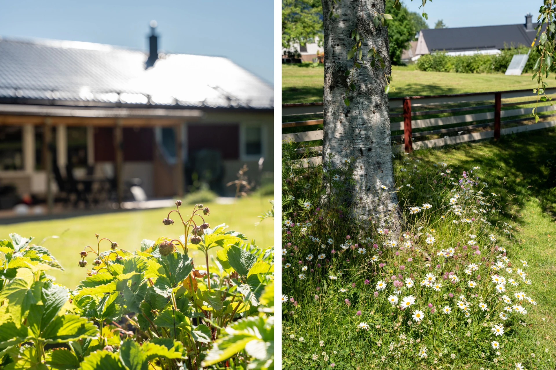 Den 913 kvm stora tomten är lättskött och gränsar till kvarterets allmänning – en trygg och rolig plats för barnens lekar