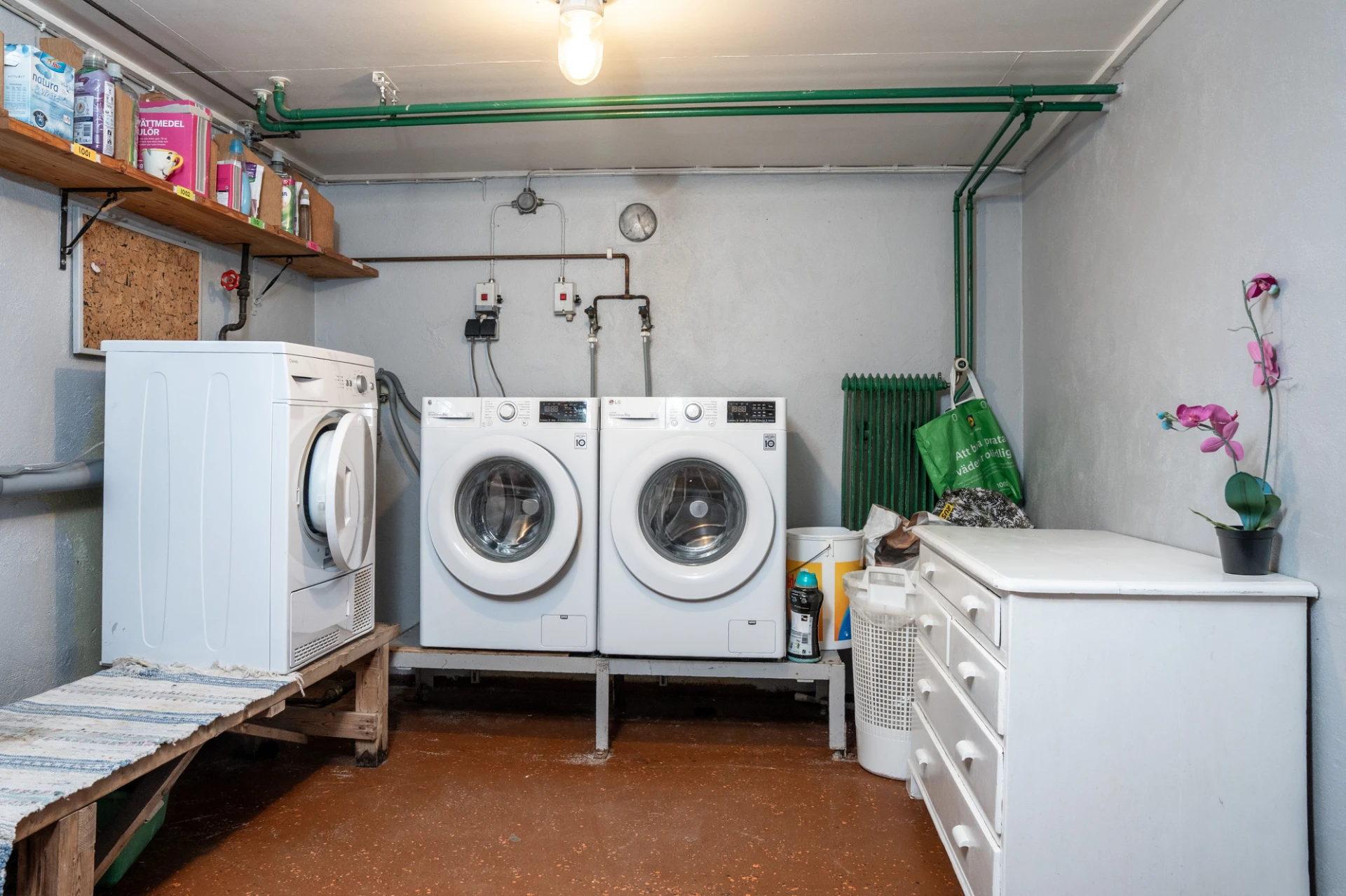 I uterummet kan du njuta av den vackra utsikten mot älven, och här finns gott om plats att inreda med både loungemöbler och matgrupp. Källaren har ingång från utsidan och rymmer bland annat den gemensamma tvättstugan för både hyresgäster och bostadshuset. Här finns även gott om förvaringsutrymme.