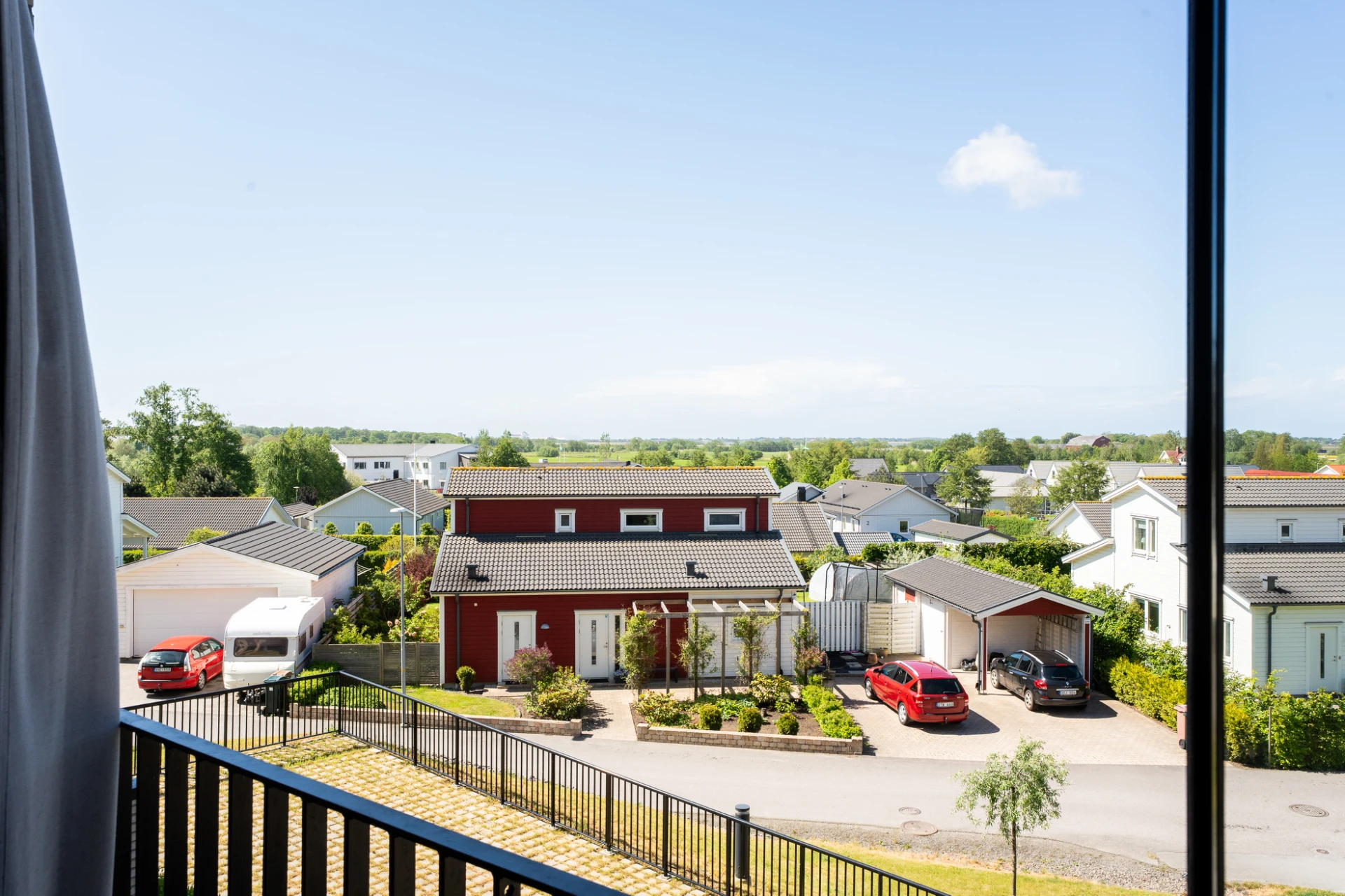 Gaveltrea med inglasad balkong och ljuvlig utsikt