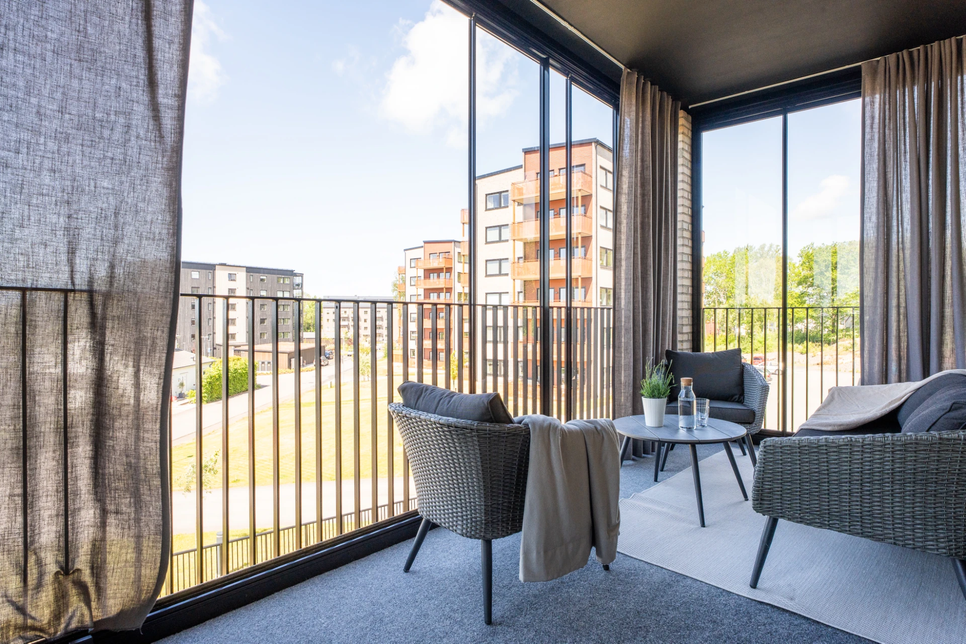 Inbjudande, ljus och stilren trerumslägenhet uppförd 2022. Ljuvlig inglasad balkong som bjuder på många soltimmar och vidsträckt utsikt. Balkongen är anpassad för vårt nordiska balkongliv med smarta och flexibla system som kan anpassas efter väder och temperatur - en perfekt plats att tillbringa långa ljumma sommarkvällar med gott om plats för stora mjuka utemöbler, prunkande gröna växter och stämningsskapande ljusslingor. I lägenheten finns dessutom en trevlig sällskapsyta med kök och vardagsrum i öppen plan, två rofyllda sovrum samt ett rymligt badrum med tvättutrustning.