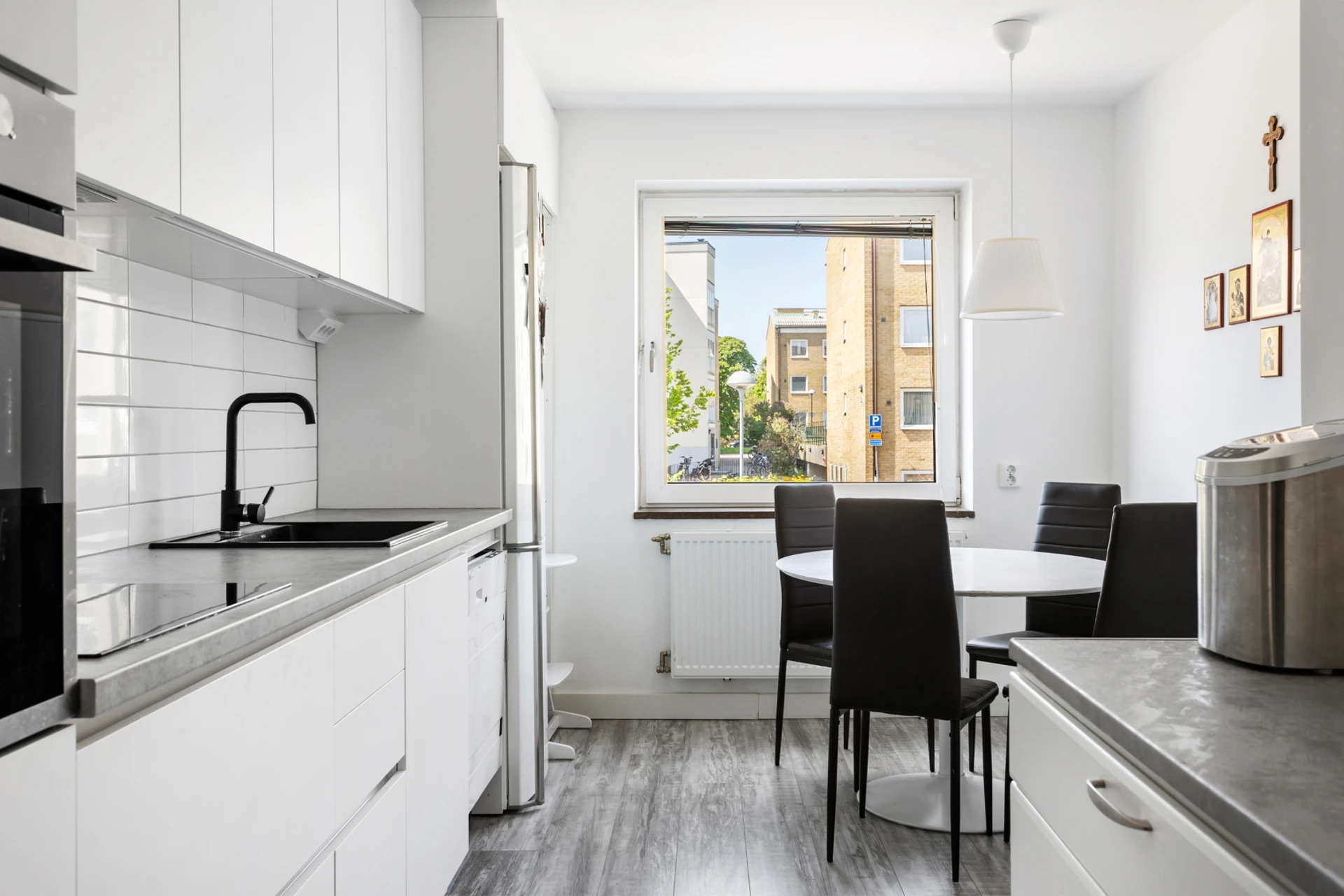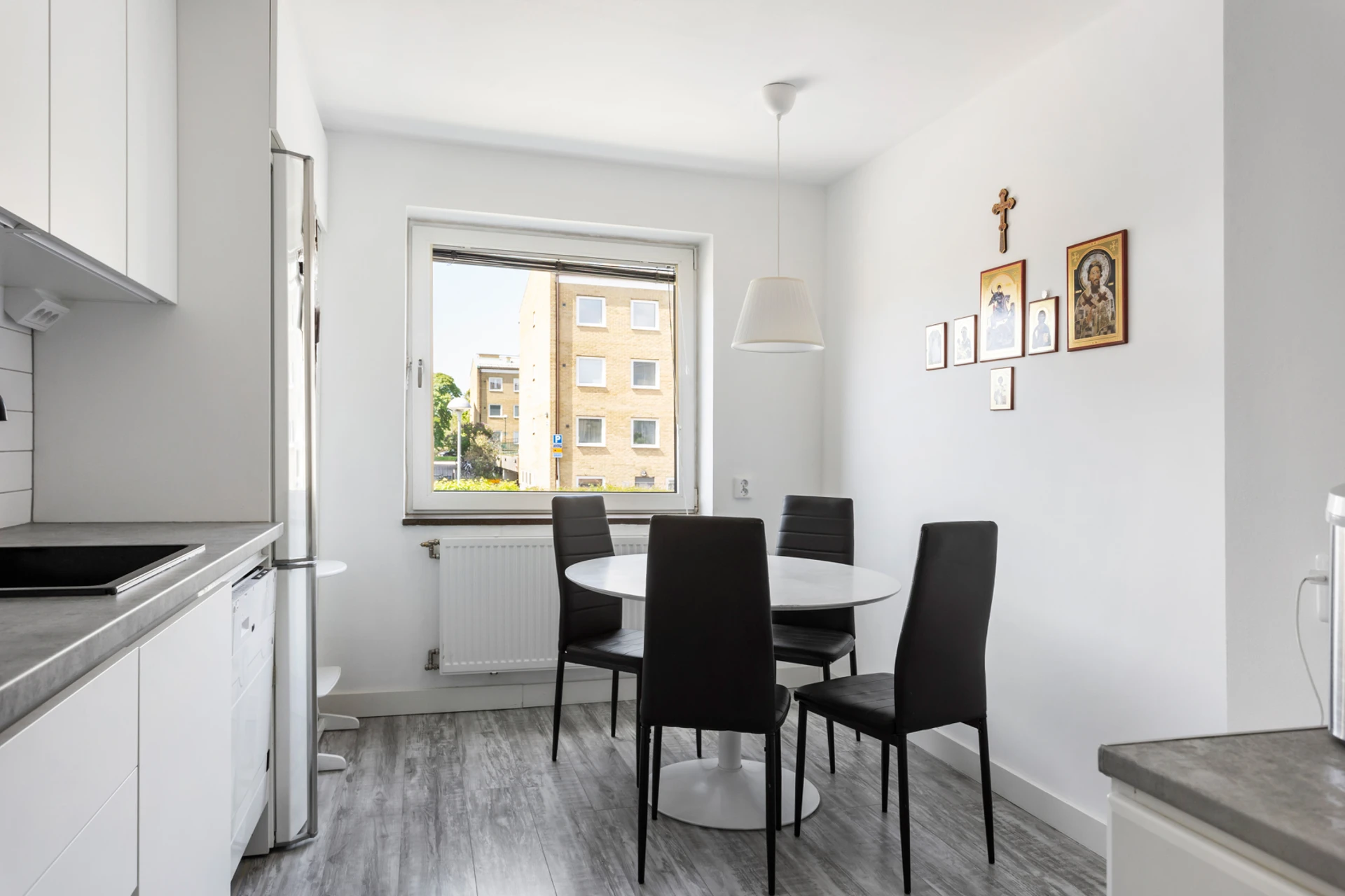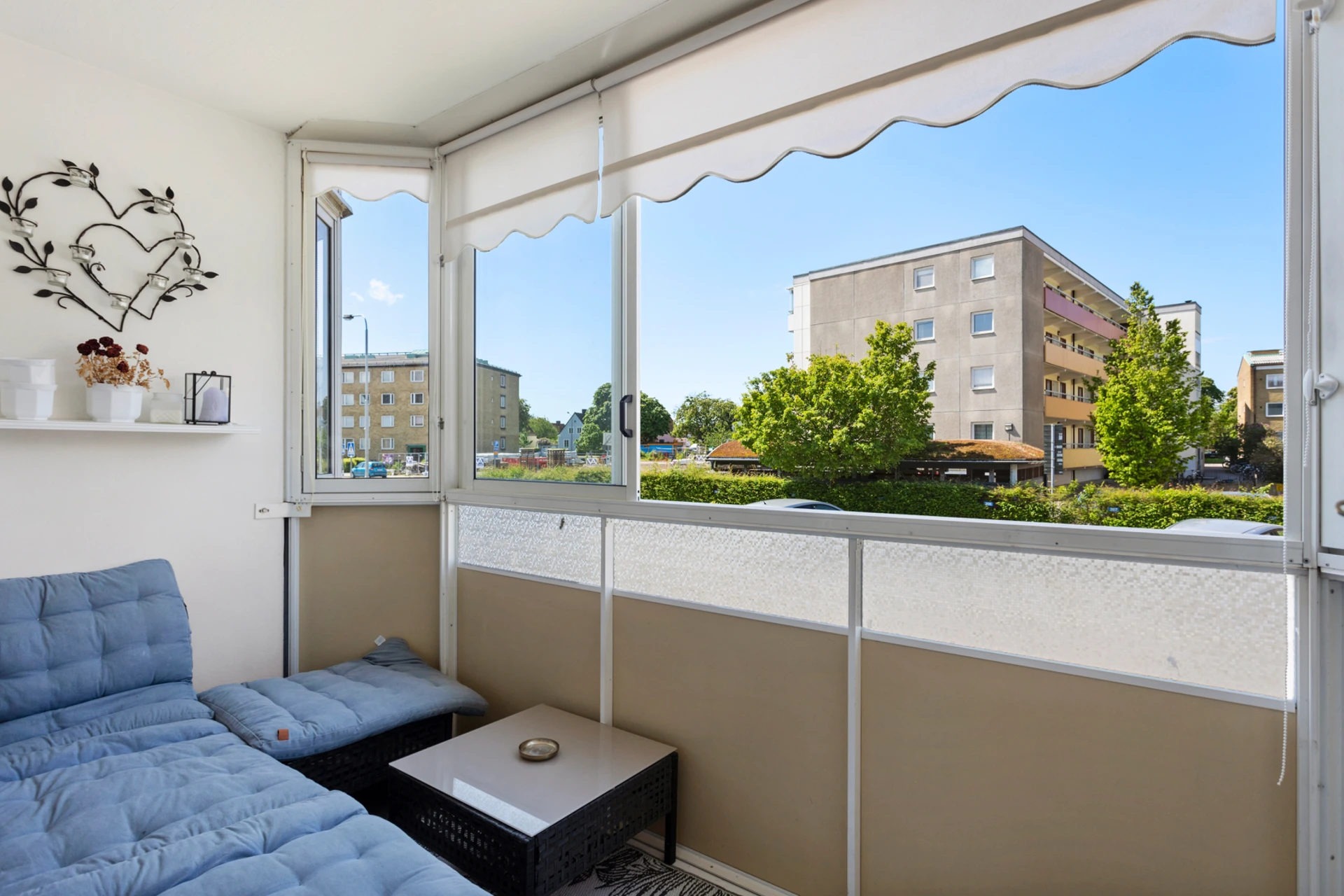 Rofyllt belägen i familjevänligt område väntar denna ljusa och totalrenoverade tvåa som erbjuder en genomgående planlösning och stora fönster med grönskande utsikt. Vardagsrummet är generöst till storleken med plats för både soffgrupp och matsalsmöblemang, som dessutom förlängs av den inglasade balkongen på gårdsvänt läge med ljuvlig eftermiddags- och kvällssol. Därtill ges ett fräscht modernt kök, rymligt sovrum och ett helkaklat badrum med egna tvättmöjligheter. Här bor vi på lugnt läge med närhet till allt som vardagen kan tänkas kräva. Pendlaren bor perfekt med smidig access till motorvägen och för den som söker stadspuls så är vi bara en kort cykeltur ifrån. Varmt välkomna på visning!