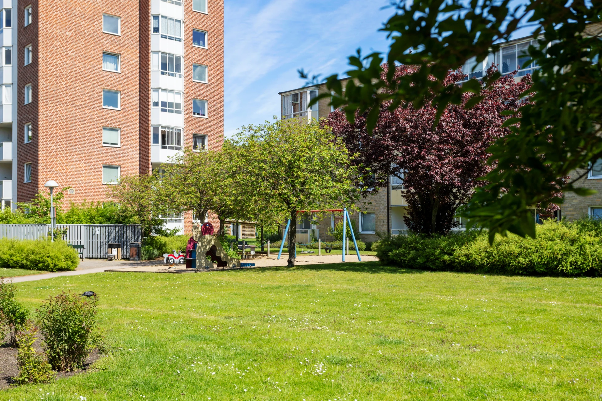 I föreningen finns en fin och grönskande innergård utrustad med sitt- och grillmöjligheter samt lekplats.