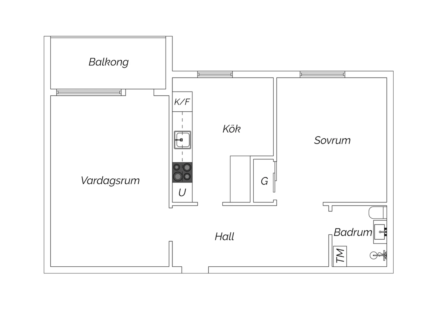 Storlek: 2 rum och kök, 56,5 kvm boarea