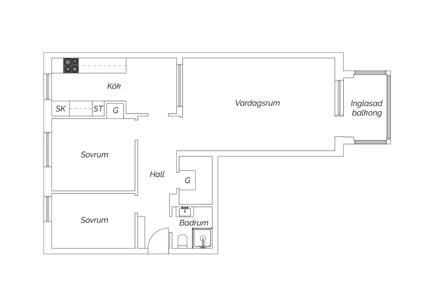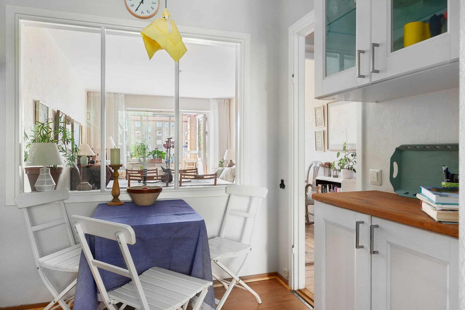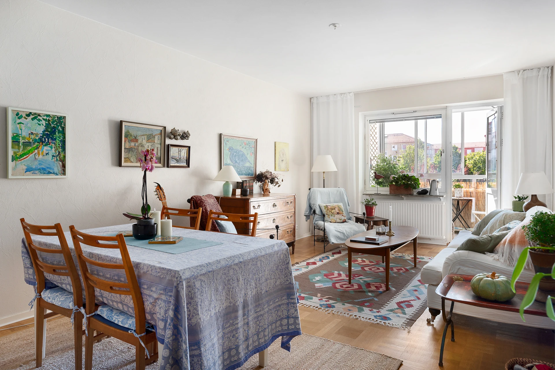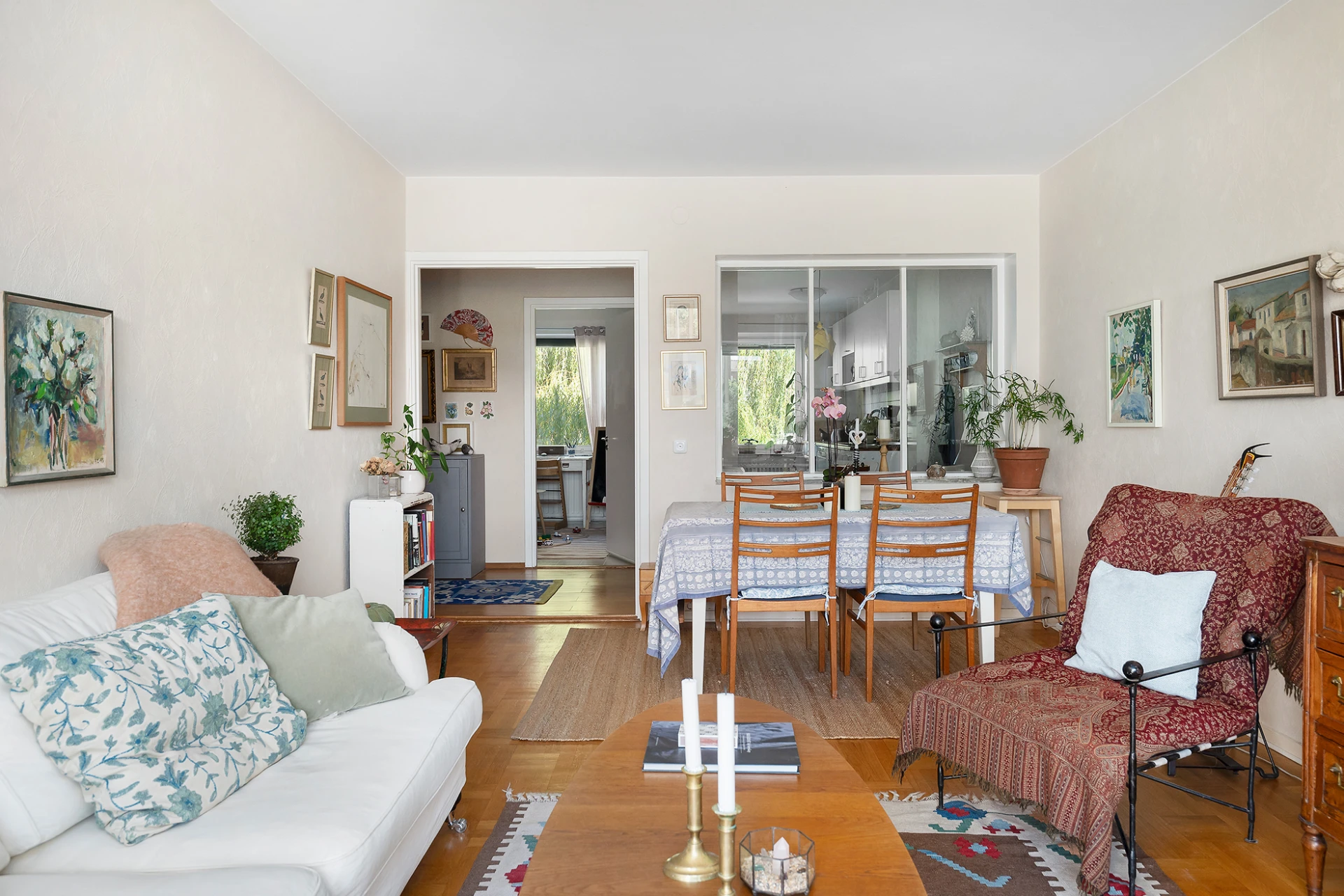 Här möts du av ett ljust och luftigt hem där vardagsrummet erbjuder vacker holländsk parkett och generös yta för både matbord och soffgrupp – en naturlig samlingsplats för både vardag och fest. Bostaden har två rogivande sovrum med goda förvaringsmöjligheter samt ett fräscht, helkaklat badrum. Utöver bostadens genomtänkta planlösning finns även ett tillhörande förråd – praktiskt för dig som vill ha det organiserat och enkelt.