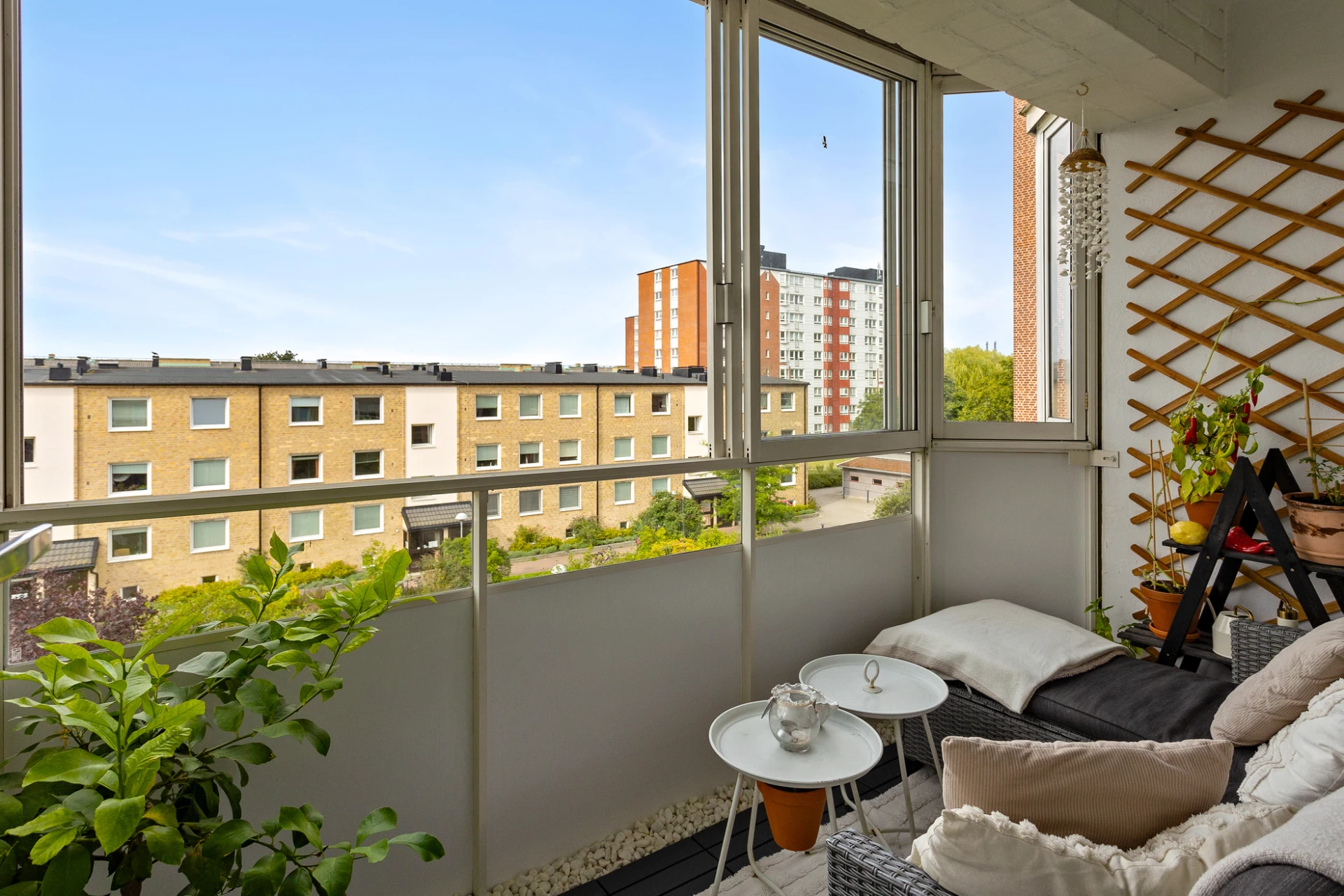 Välkommen till denna ljusa och välplanerade bostad belägen högst upp i huset – där du får njuta av lugnet, utsikten och solen i bästa tänkbara läge! Den stora inglasade balkongen vetter i solsäkert sydvästligt läge och bjuder på ljuvliga eftermiddagar och kvällar med utsikt mot en grönskande, rofylld innergård. En perfekt plats för både avkoppling och umgänge, året runt.