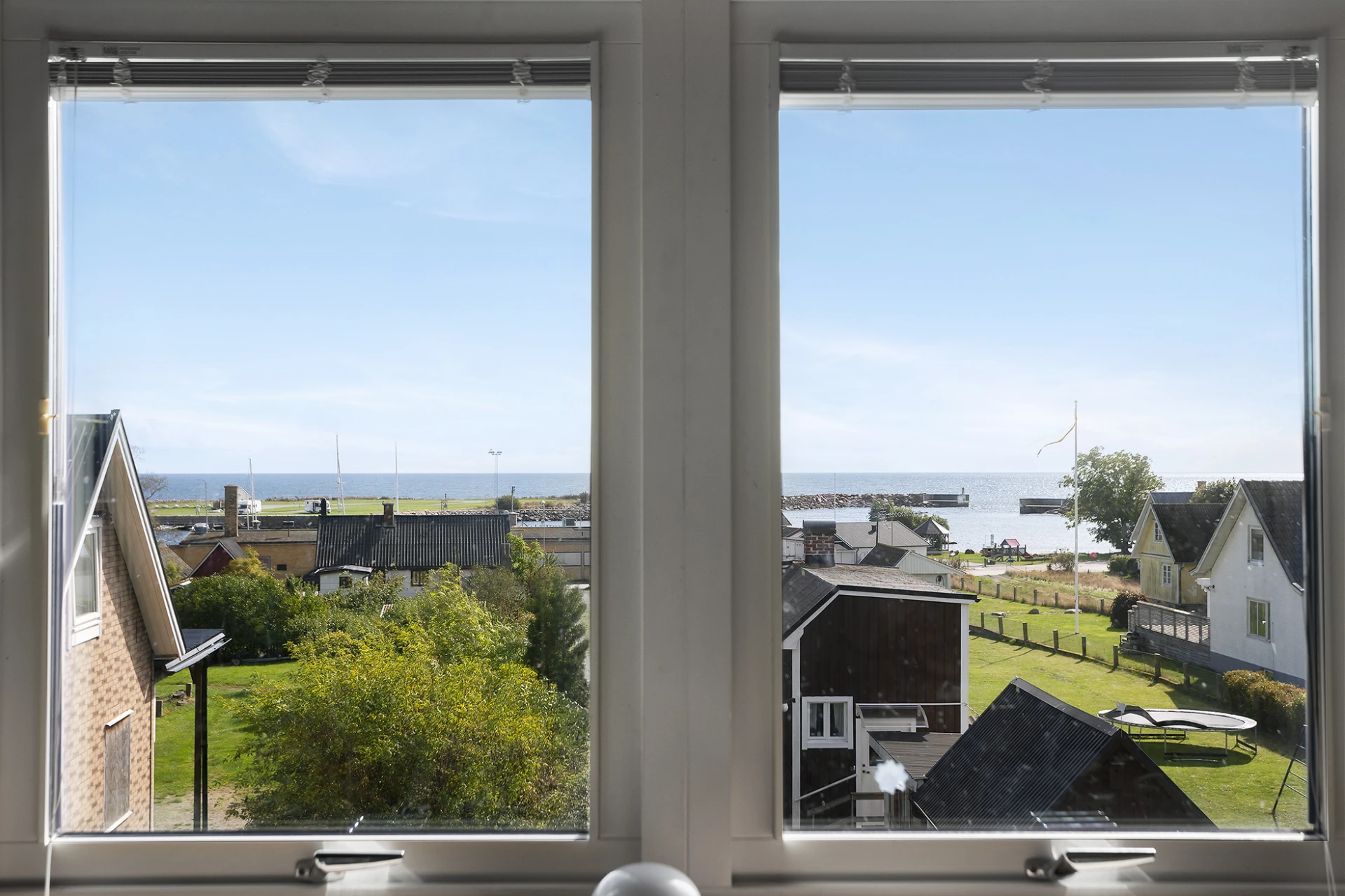 Allrum med utgång till mindre balkong och havsutsikt, sovrum, sovrum, sovrum med havsutsikt, toalett.