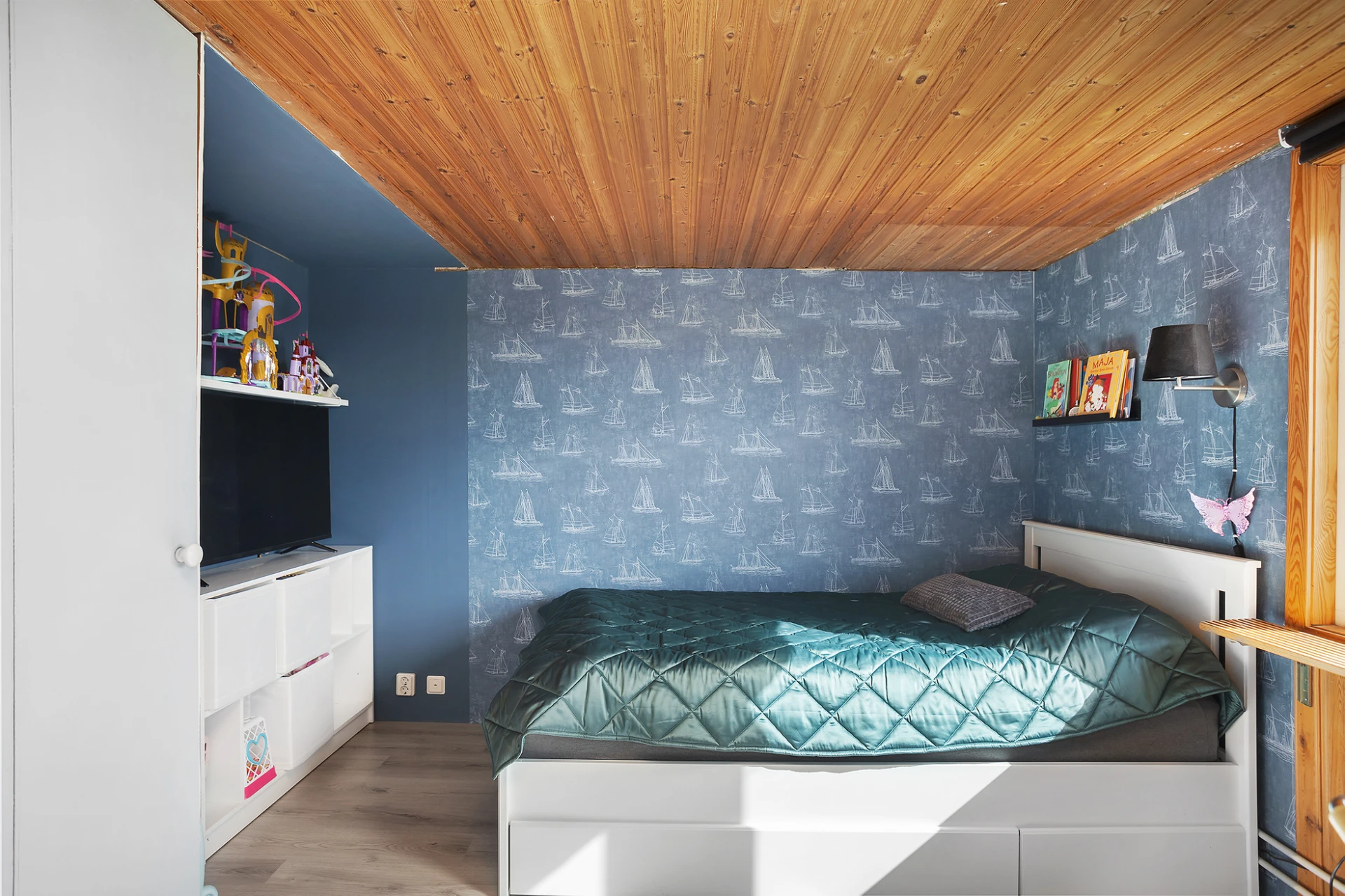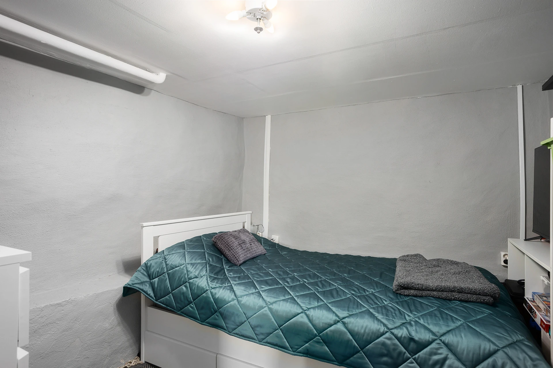 Passage, förråd med kyl och frys, pannrum/förråd, tvättrum, sovrum/kontor/gästrum, matkällare.