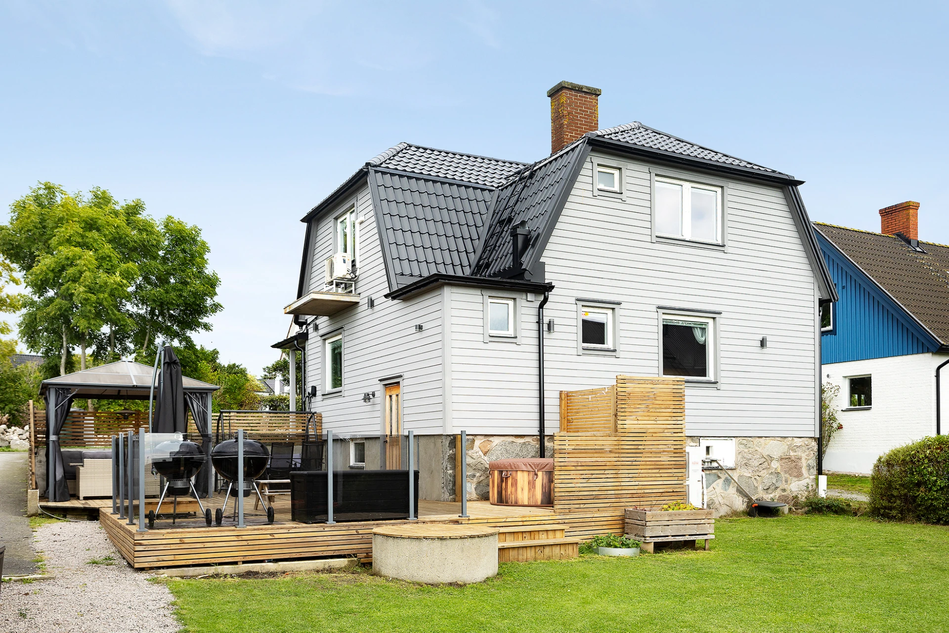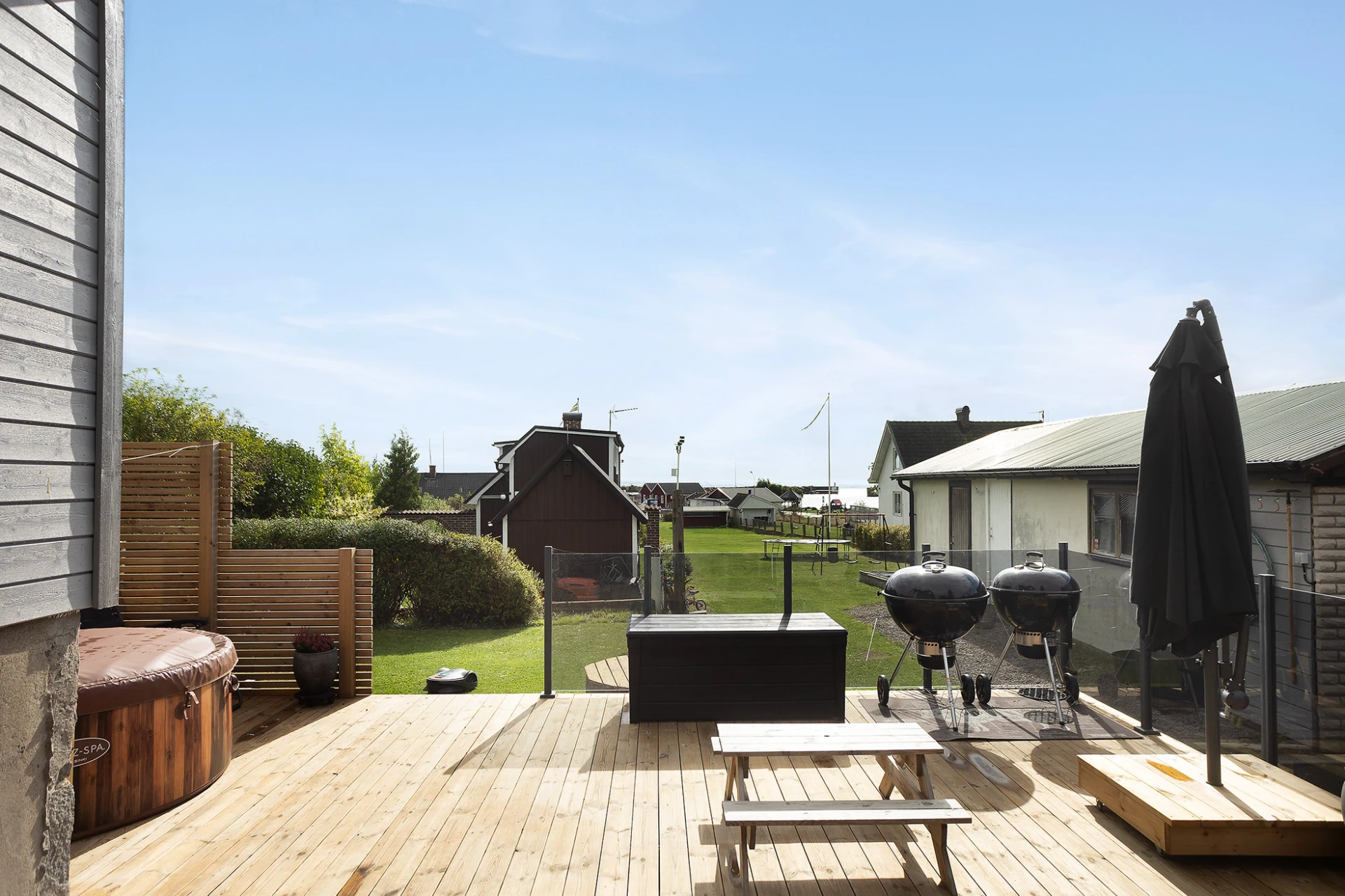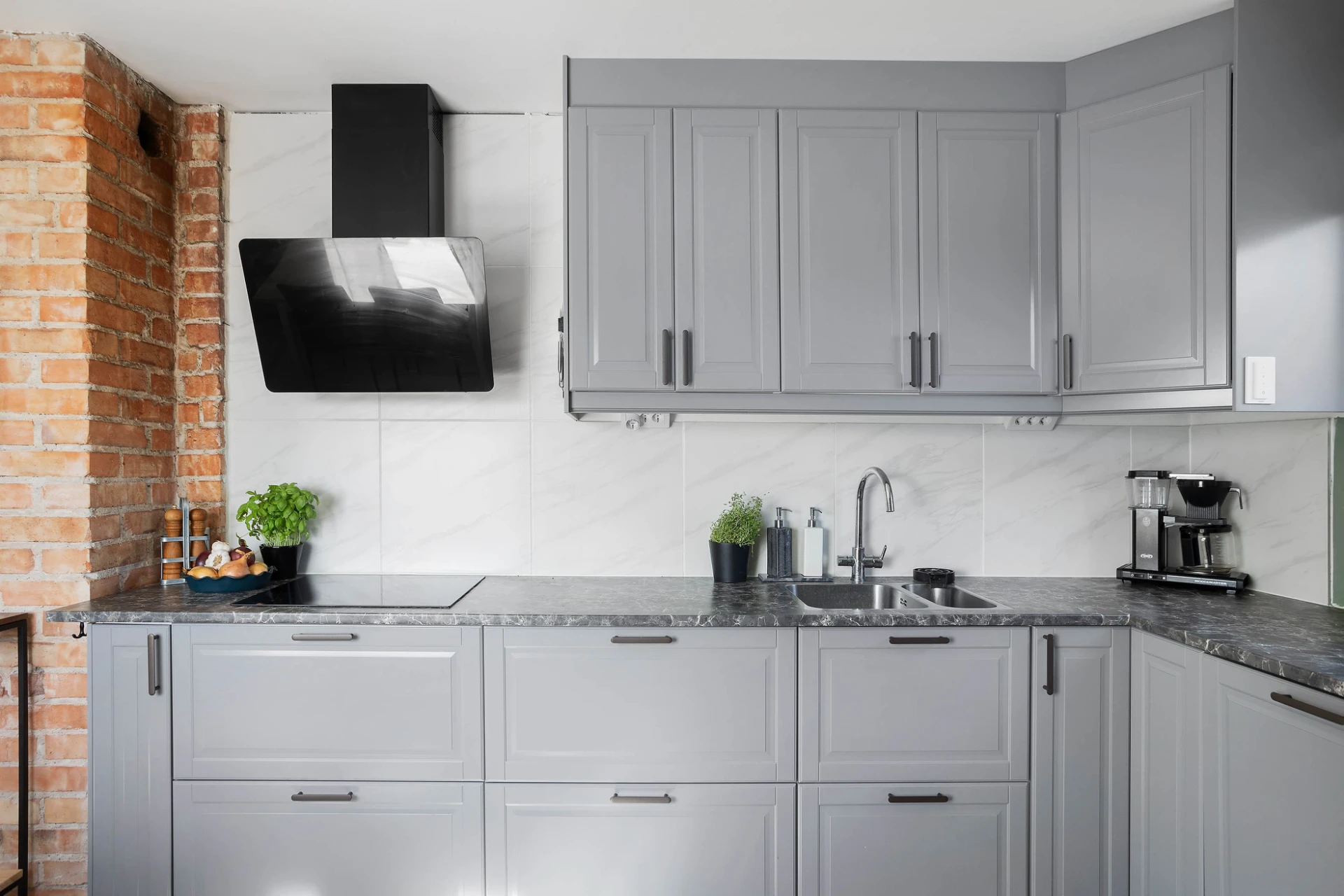 Utrustning: induktionshäll, kolfilterfläkt, inbyggd kombimikrovågsugn, inbyggd varmlufts/ångugn, diskmaskin, kakel.
