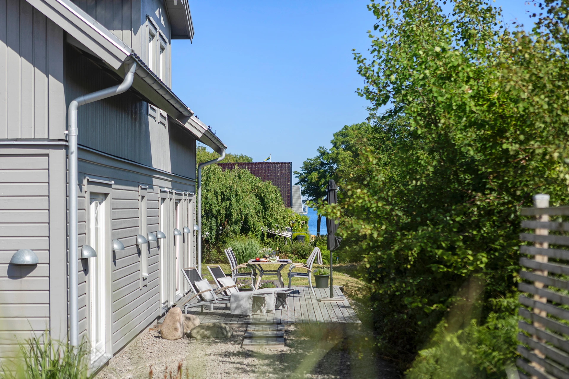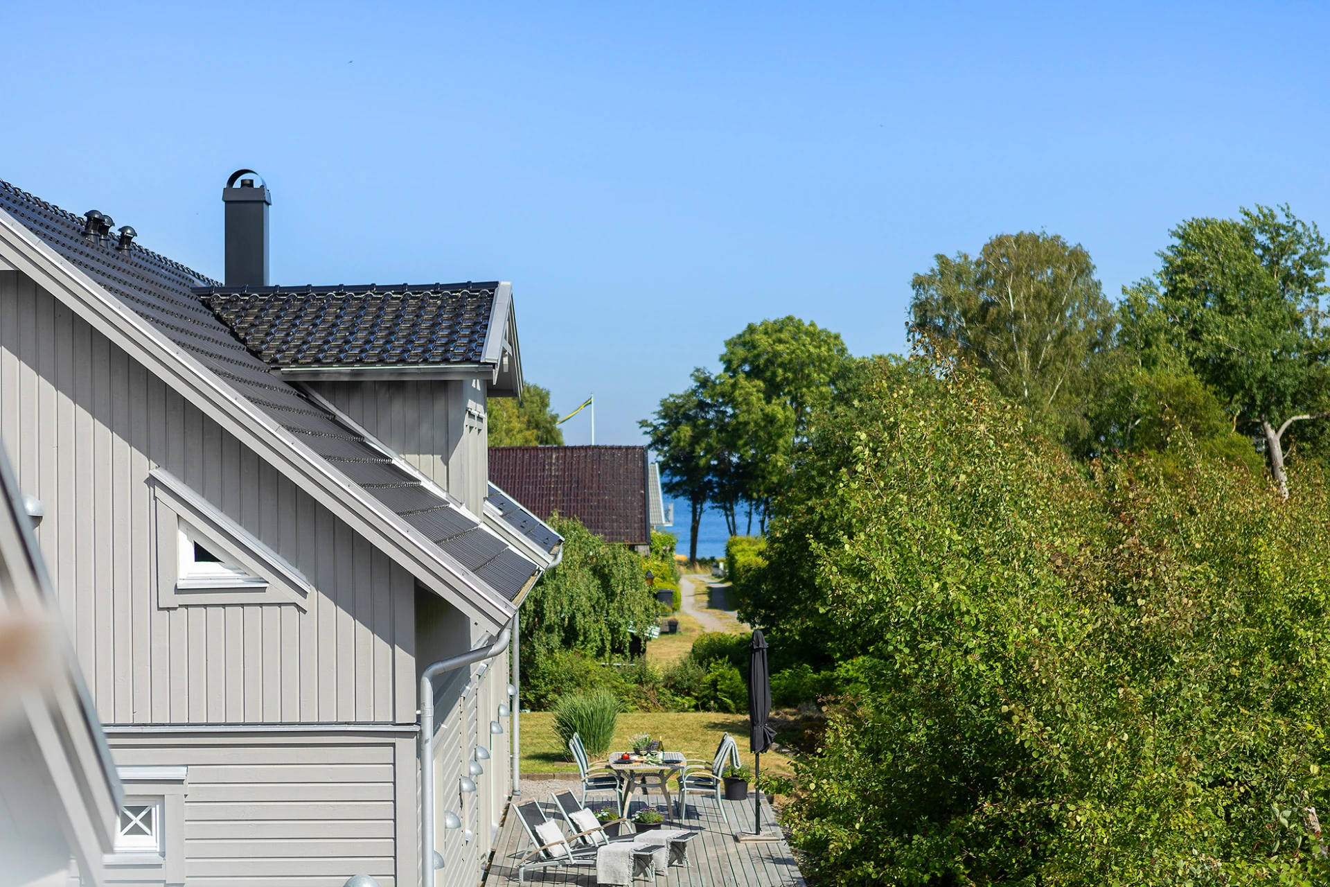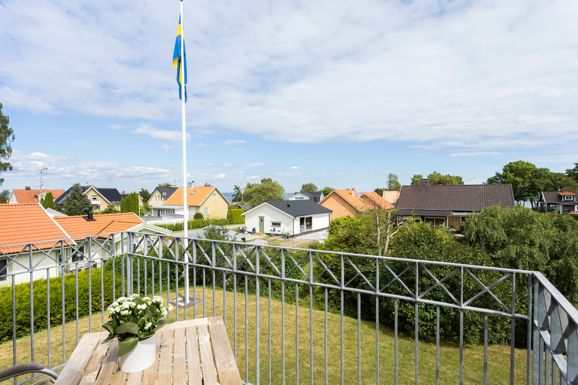 Beskrivning uteplats: Trädäck i söderläge, balkong i sydost med havsutsikt