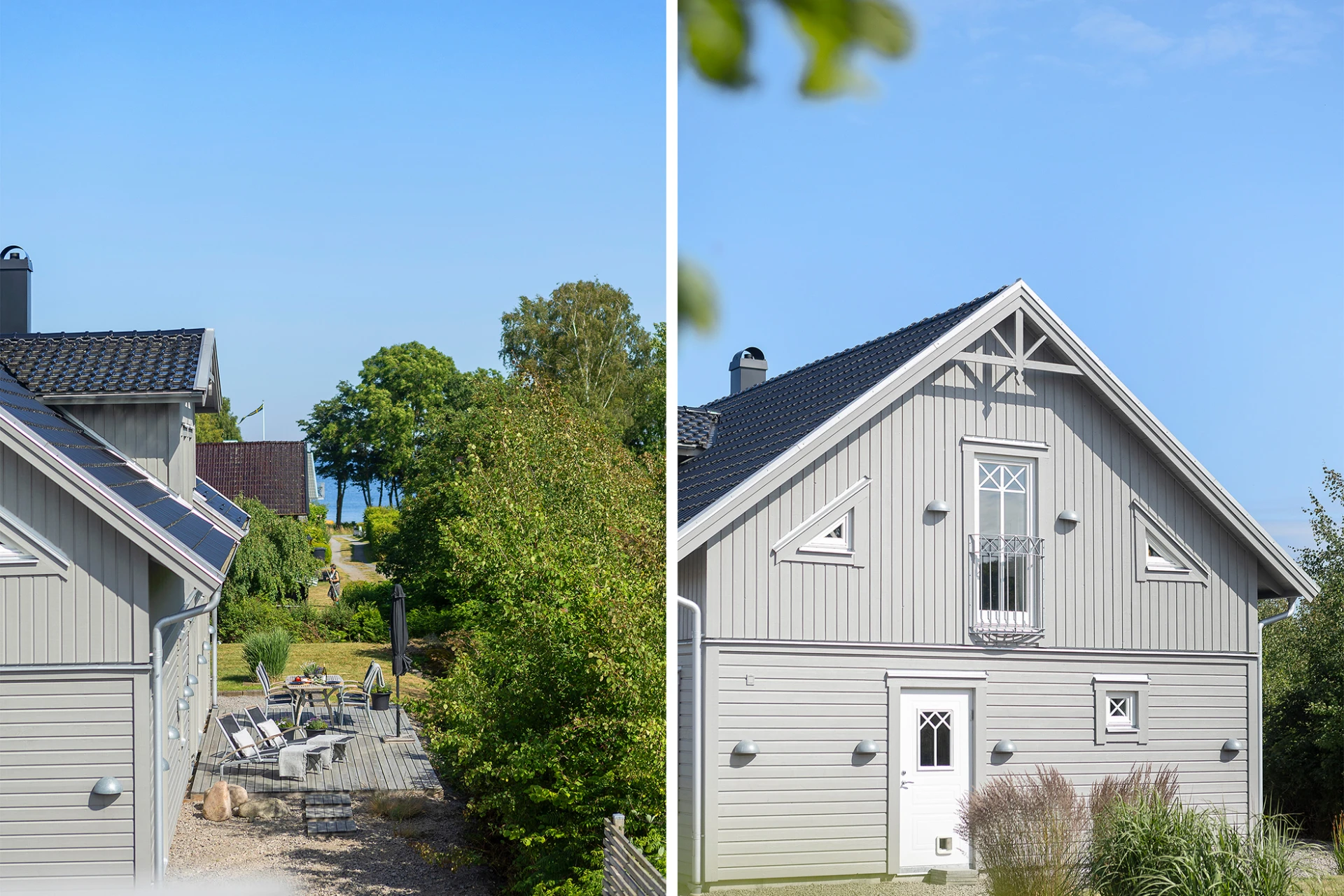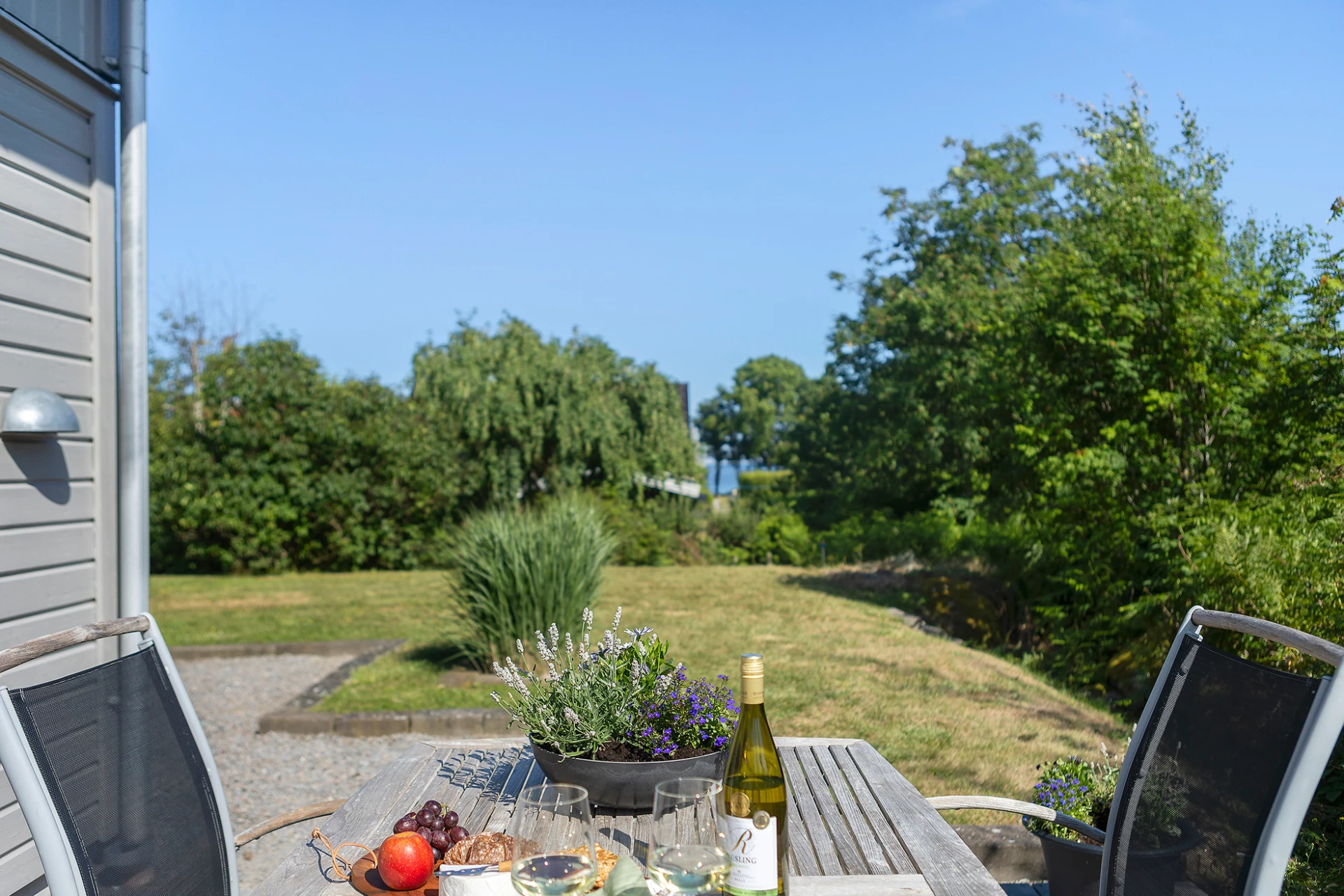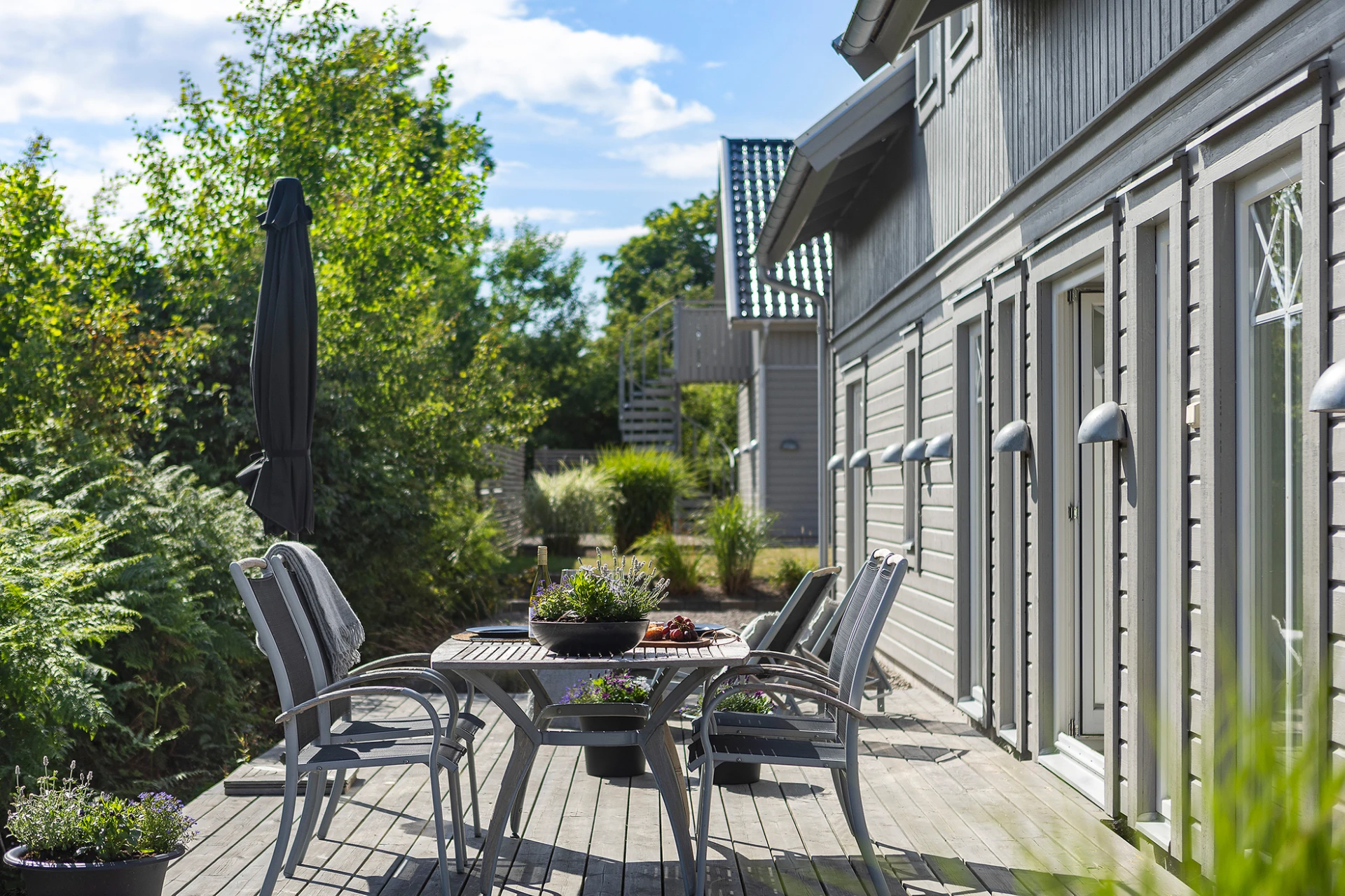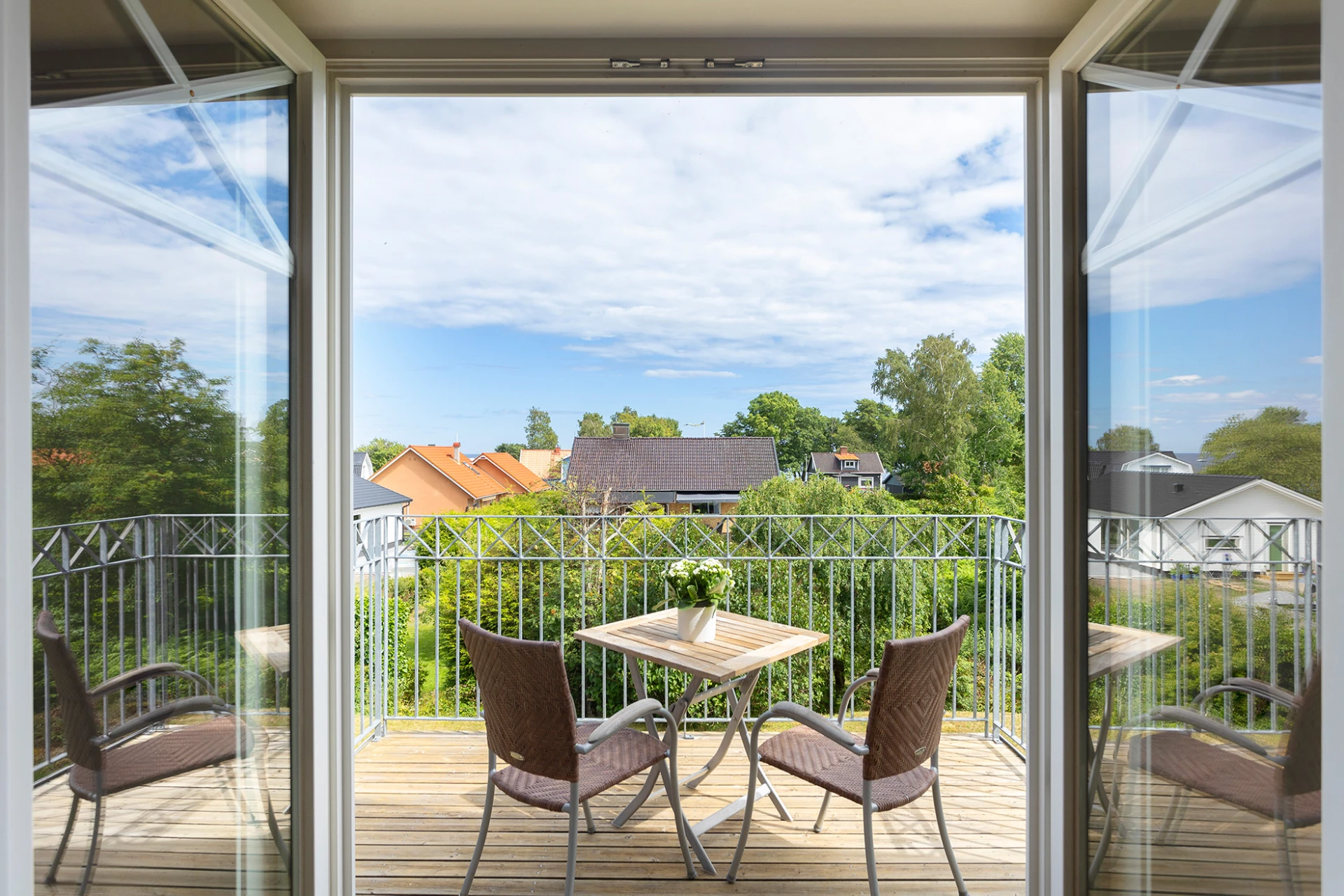 Beskrivning uteplats: Trädäck i söderläge, balkong i sydost med havsutsikt