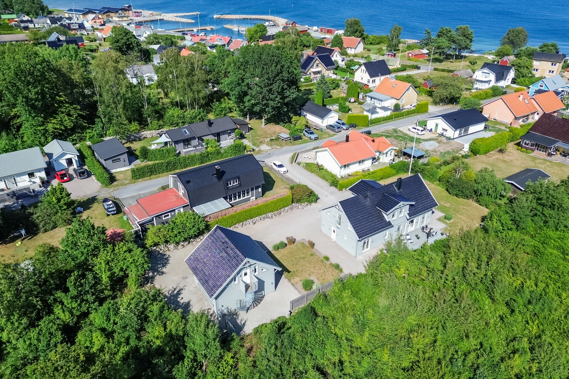 Precis ovanför havet, med havsnära läge finns denna generösa och trevliga familjevilla med skyddat läge. En mysig balkong i sydostläge med en glimt av havet och där man fångar dom första solstrålarna, sol hela förmiddagen och en härlig baksida i söderläge med härlig sol hela dagen. Delvis insynsskyddad trädgård och inramat stengärde. Singelbelagd parkering på uppfarten med plats för flera bilar och ett fristående isolerat dubbelgarage med en lägenhet ovanpå. Villan passar utmärkt för en familj med barn. Hjärtat i huset är det fina köket med matplats och utgång till trädäcket där både familj och vänner samlas och njuter, soliga varma kvällar förbereder man grillen med något gott i handen. Fiber är installerat i villan, perfekt för både arbete och nöje. Fastigheten ligger med skyddad läge en liten bit upp från vägen, men ändå nära till hamn, sandstränder, magiska Spraglehall, busshållplats i hamnen. Cykelavstånd till Hörvik med restauranger och Café Art uppe på Mjällby Åsar. Villan är generös med fina bostadsytor.