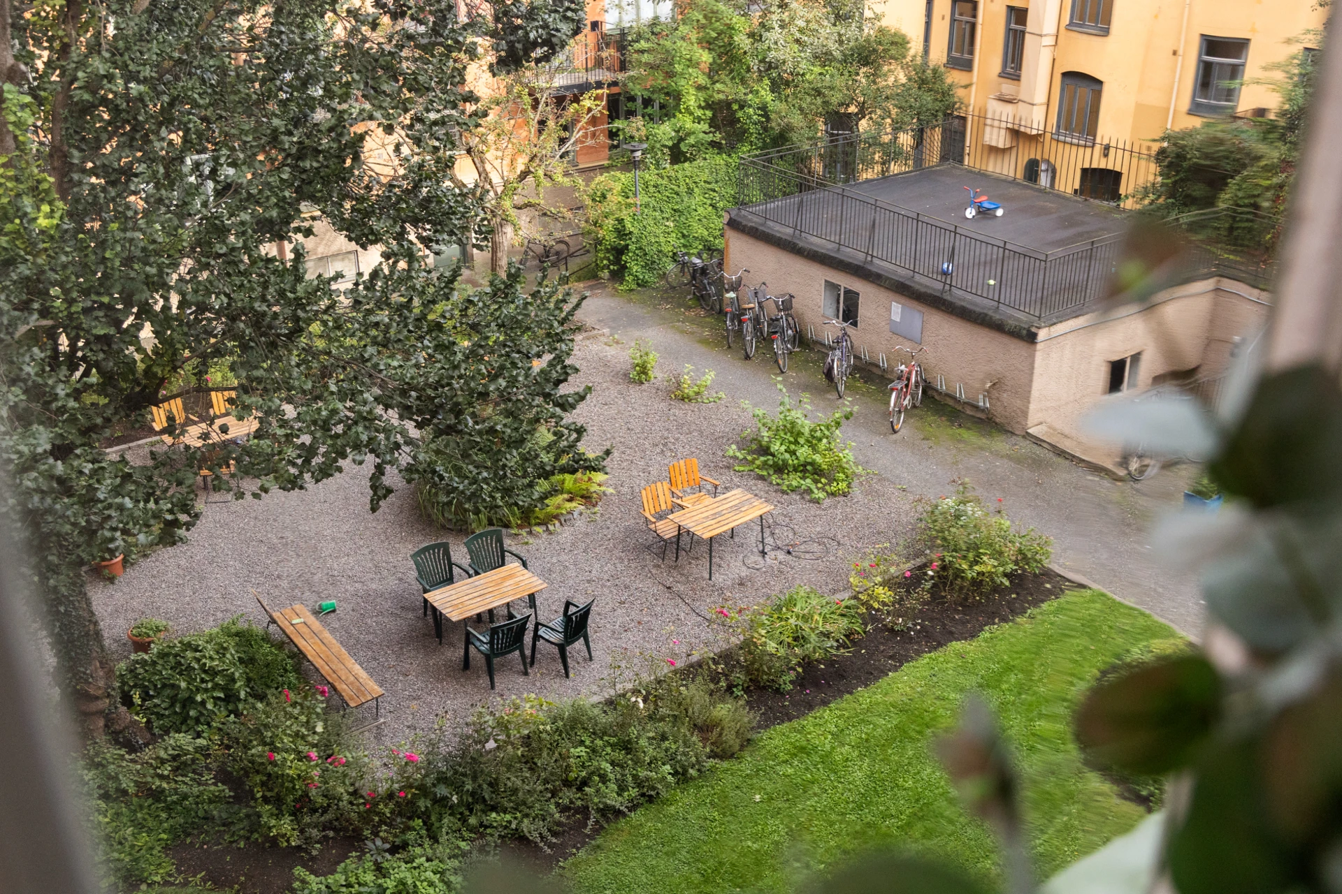 Föreningen har en stor och trivsam innergård med utemöbler, gräsmatta och grill samt även en park med bänkar och träd. Cykelparkering på gården samt ett cykelrum i gårdshuset. Barnvagnsrum finns beläget i källargången.
