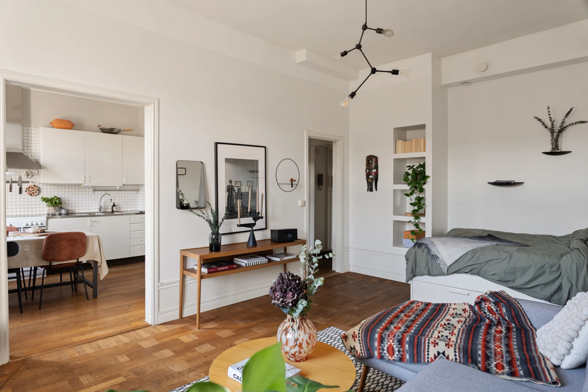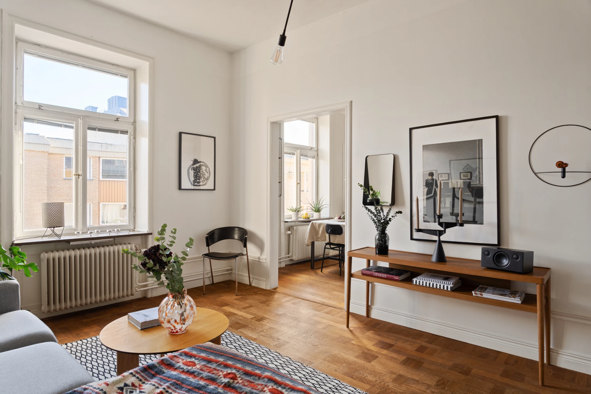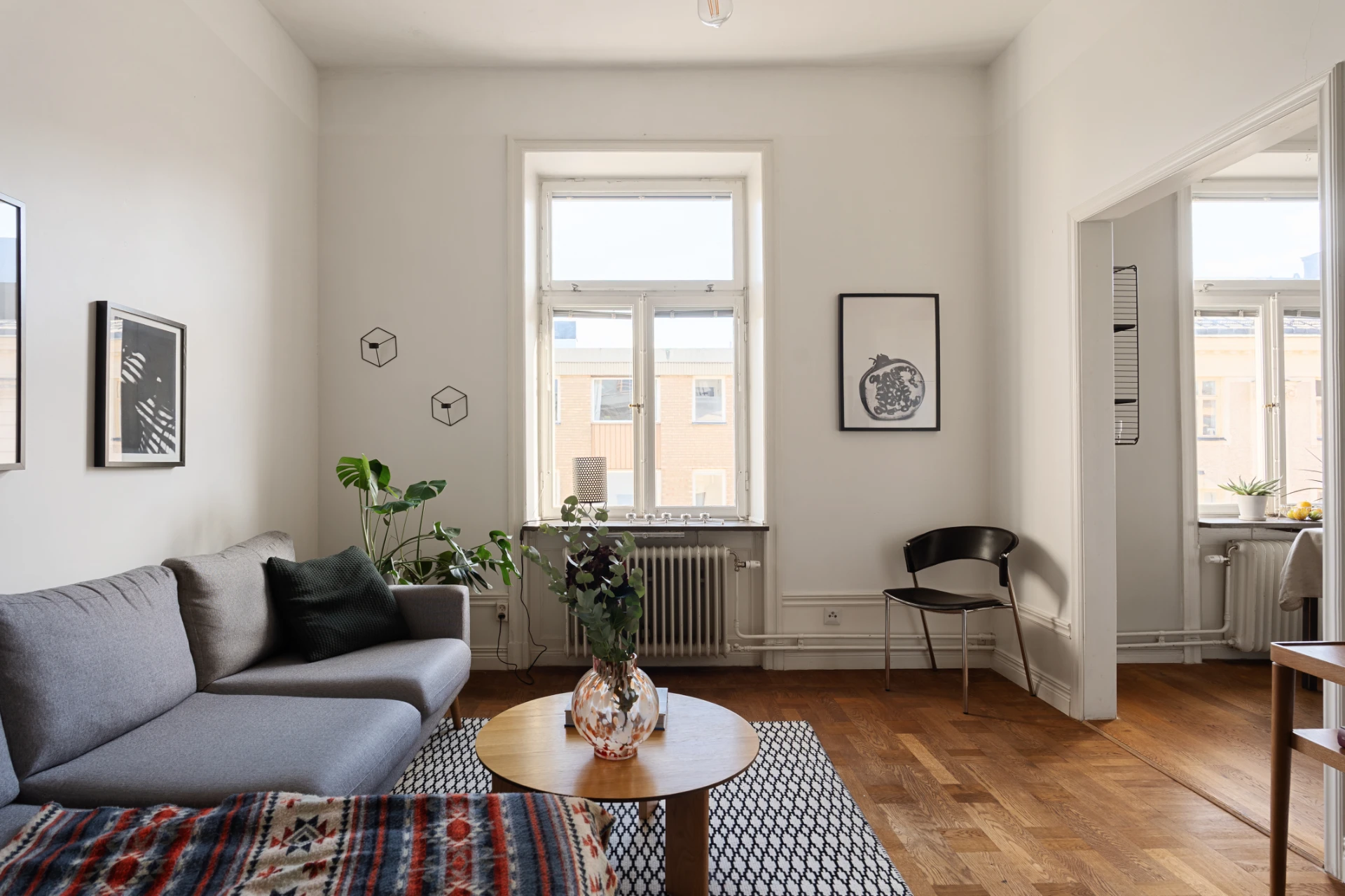 Välkommen till en riktig sekelskiftespärla högt upp i huset på Frejgatan – en bostad som kombinerar tidstypisk charm med modern funktion. Utmärkta kvadratmeter med högt i tak, vackert ljusinsläpp och sobra färgval finns här alla förutsättningar för ett stilfullt hem i hjärtat av Vasastan. Lägenheten disponeras idag som en rymlig etta men kan enkelt byggas om till en välplanerad tvåa. Köket är rymligt och har plats för diskmaskin, socialt allrum, helkaklat badrum förberett för tvättmaskin och gott om förvaringsmöjligheter i hall.