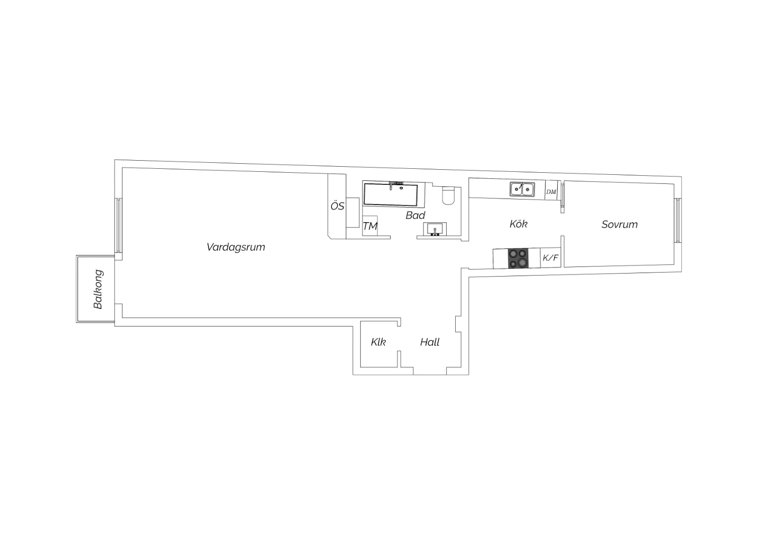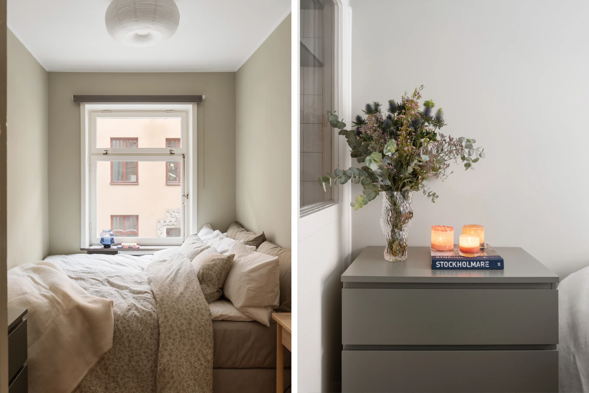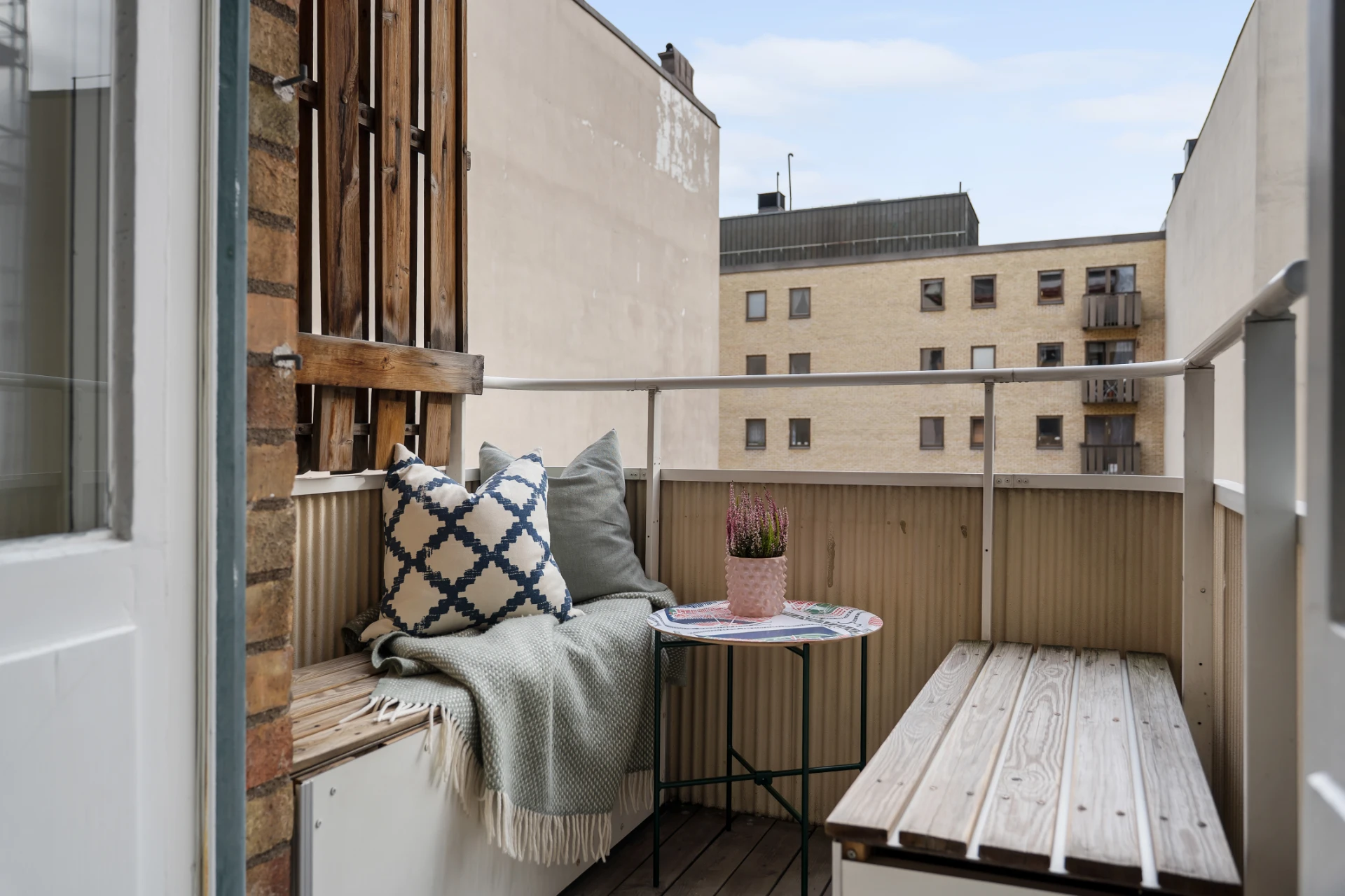 Rymligt vardagsrum ger plats åt både soffgrupp och matbord, här finns också en härlig öppen spis - perfekt för mysiga höstkvällar! På balkongen kan man sitta i lugn och ro då den vetter mot innergården. Hallen är välkomnade med vackert och praktiskt stengolv, härifrån nås klädkammaren. Sovrummet erbjuder plats för dubbelsäng, köket har gott om förvaring och bostadens badrum är helkaklat med tvättmöjlighet.