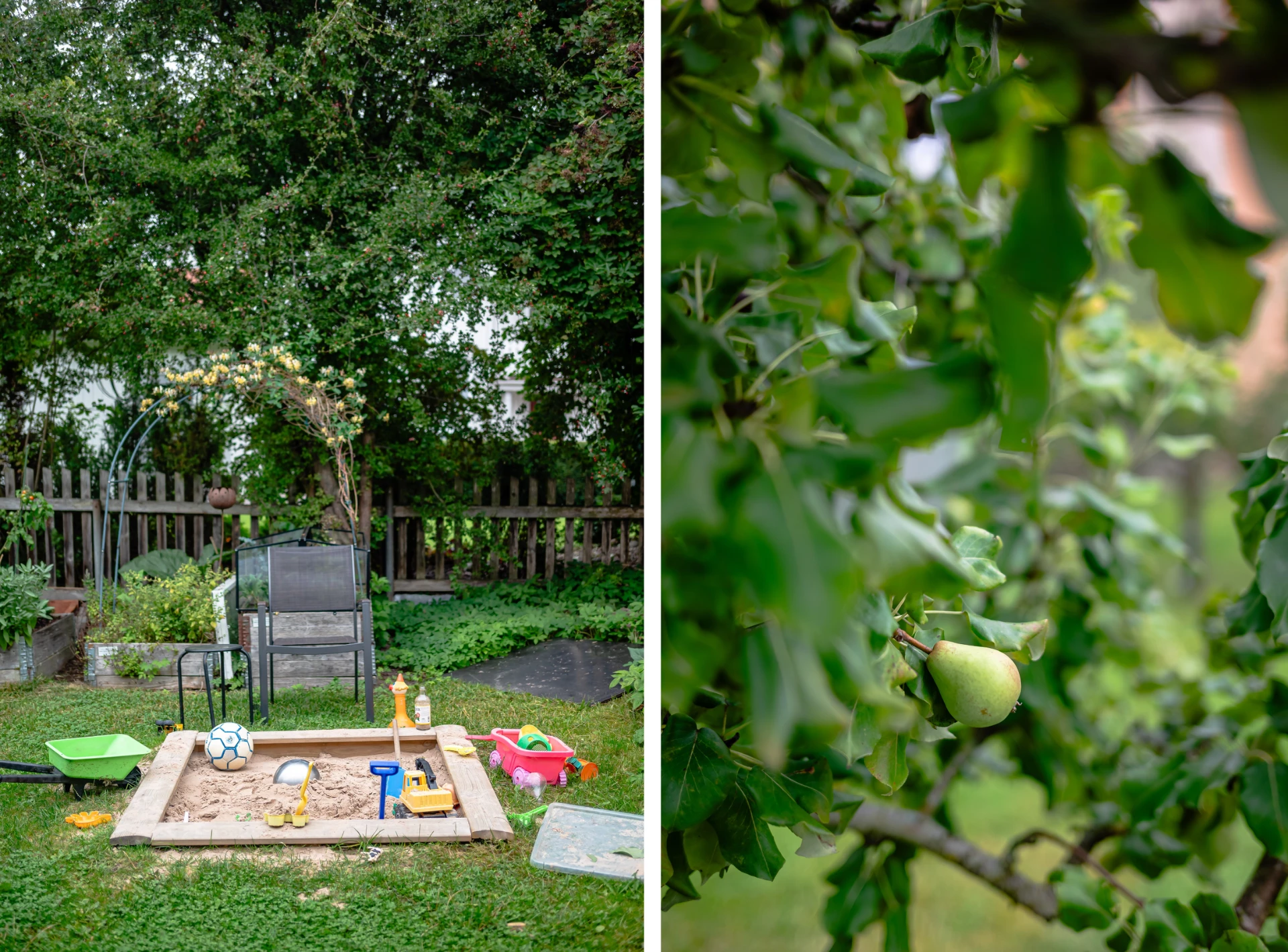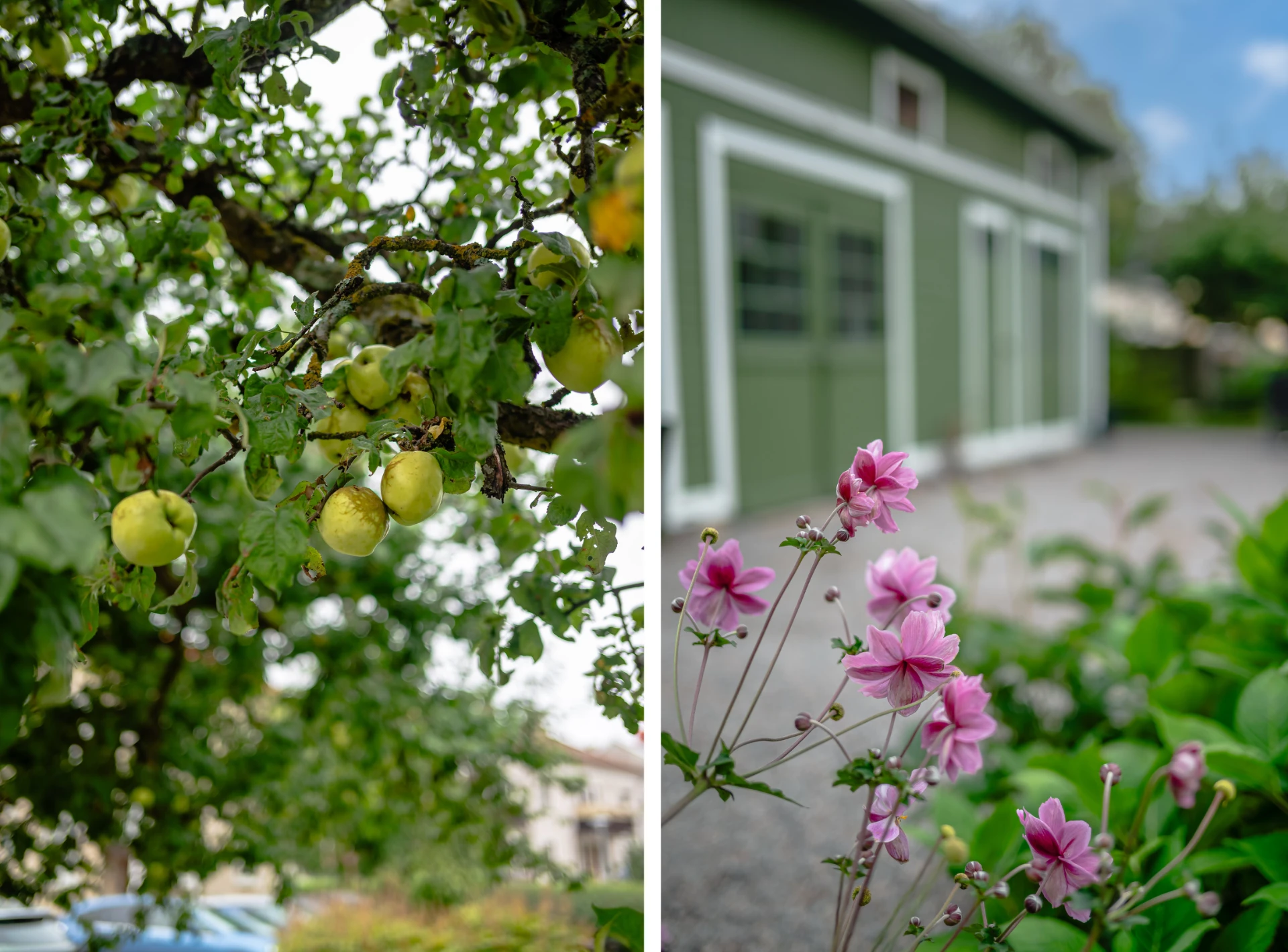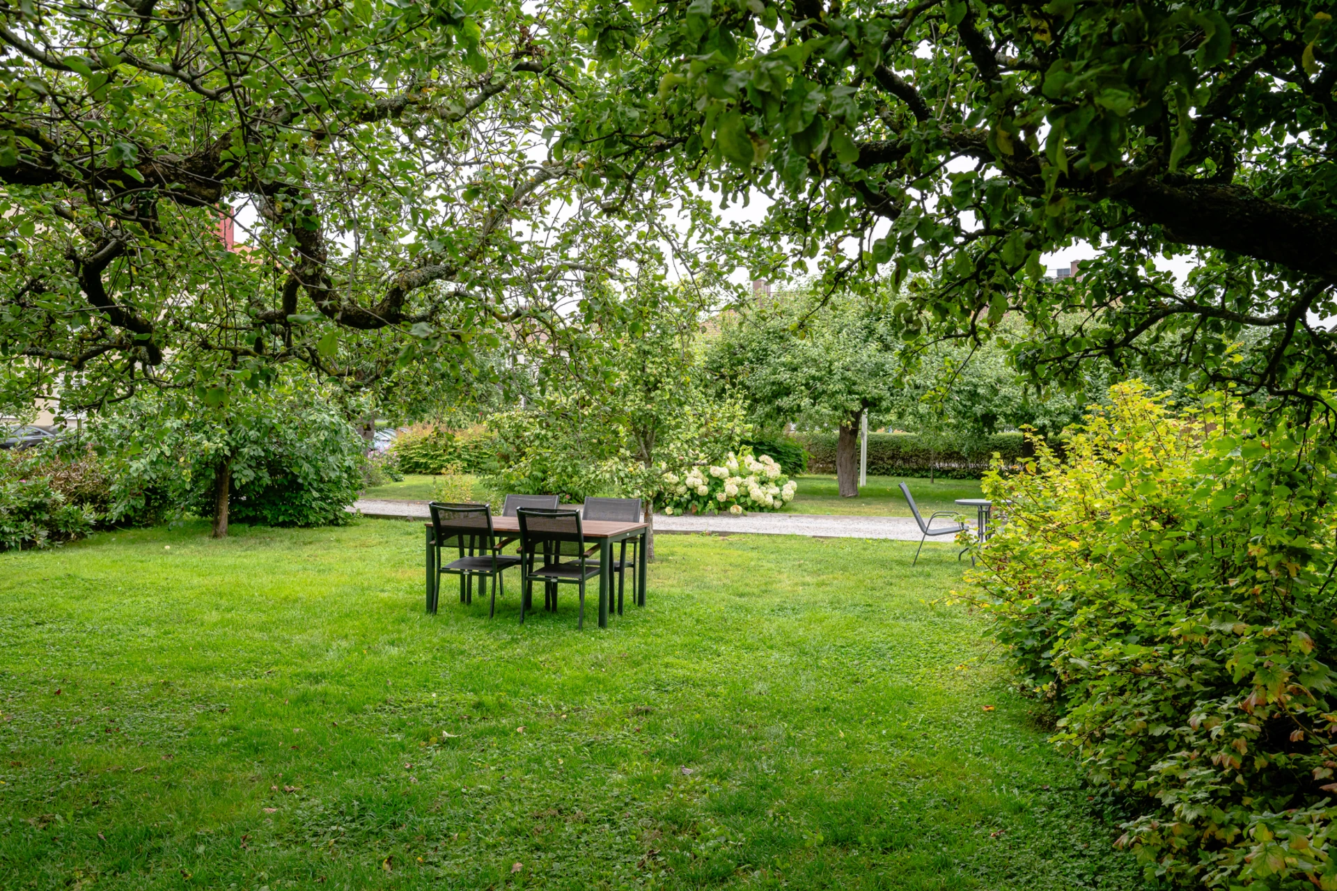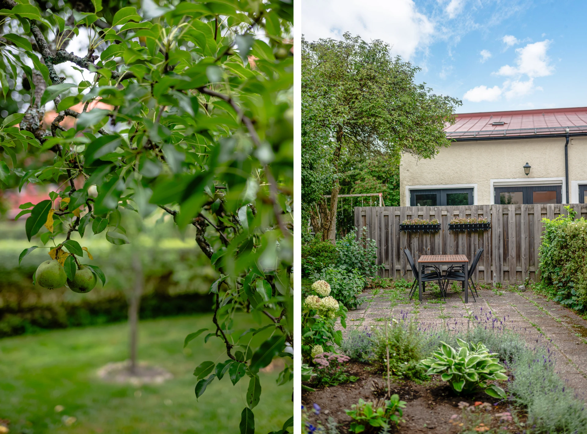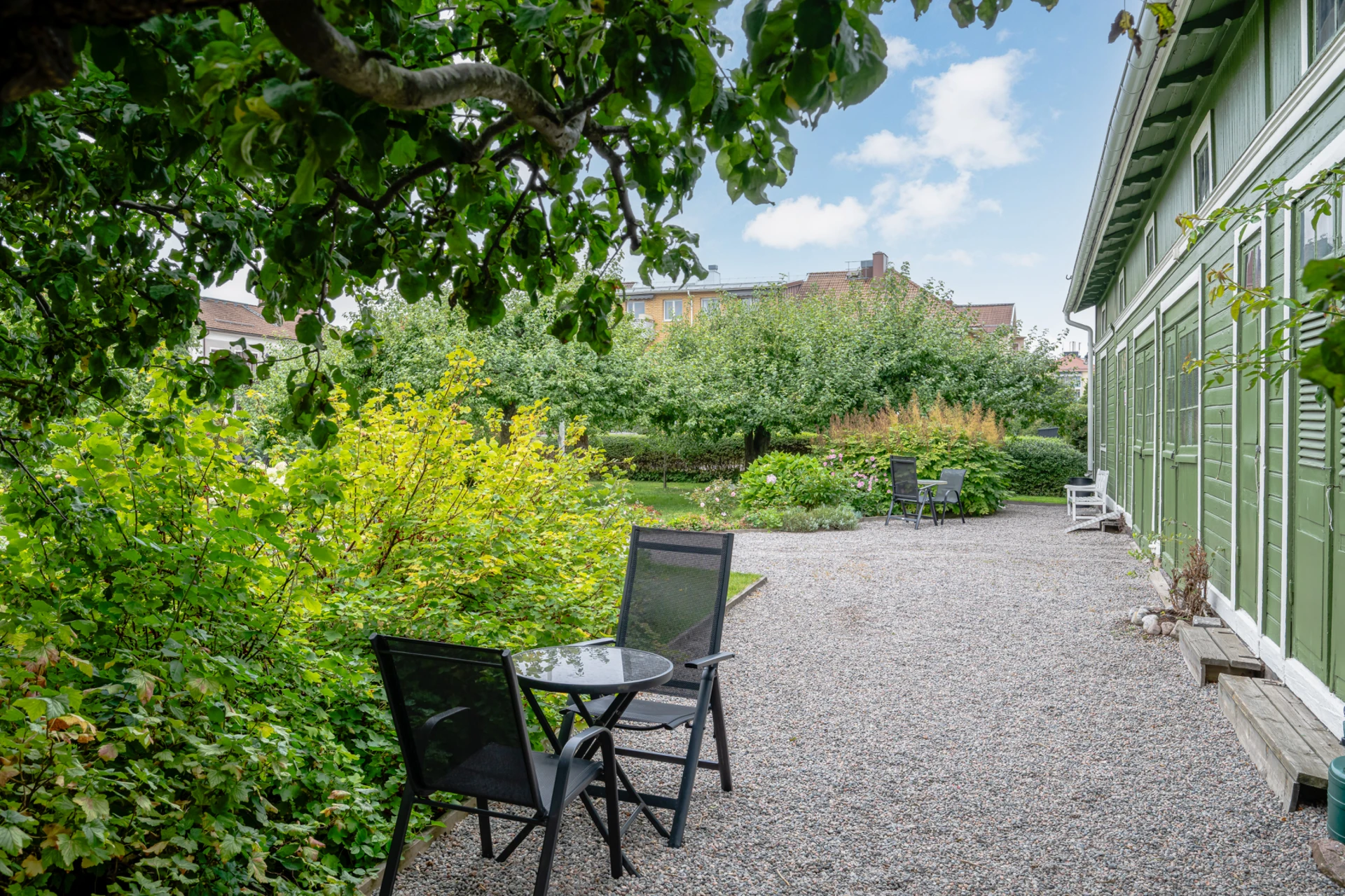 • Lummig innergård med odlingslotter, fruktträd och sittplatser