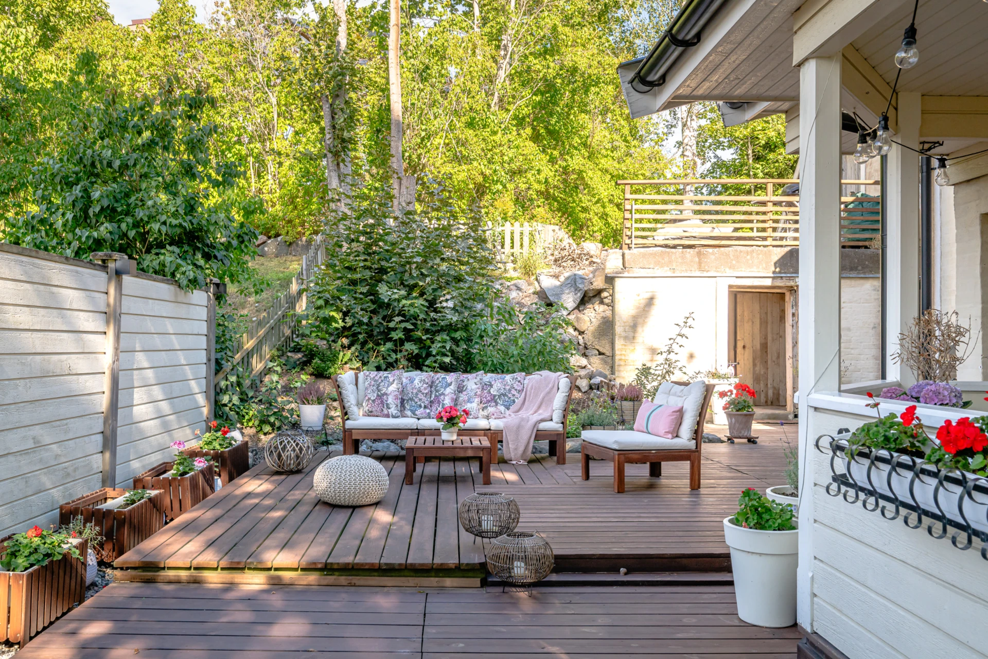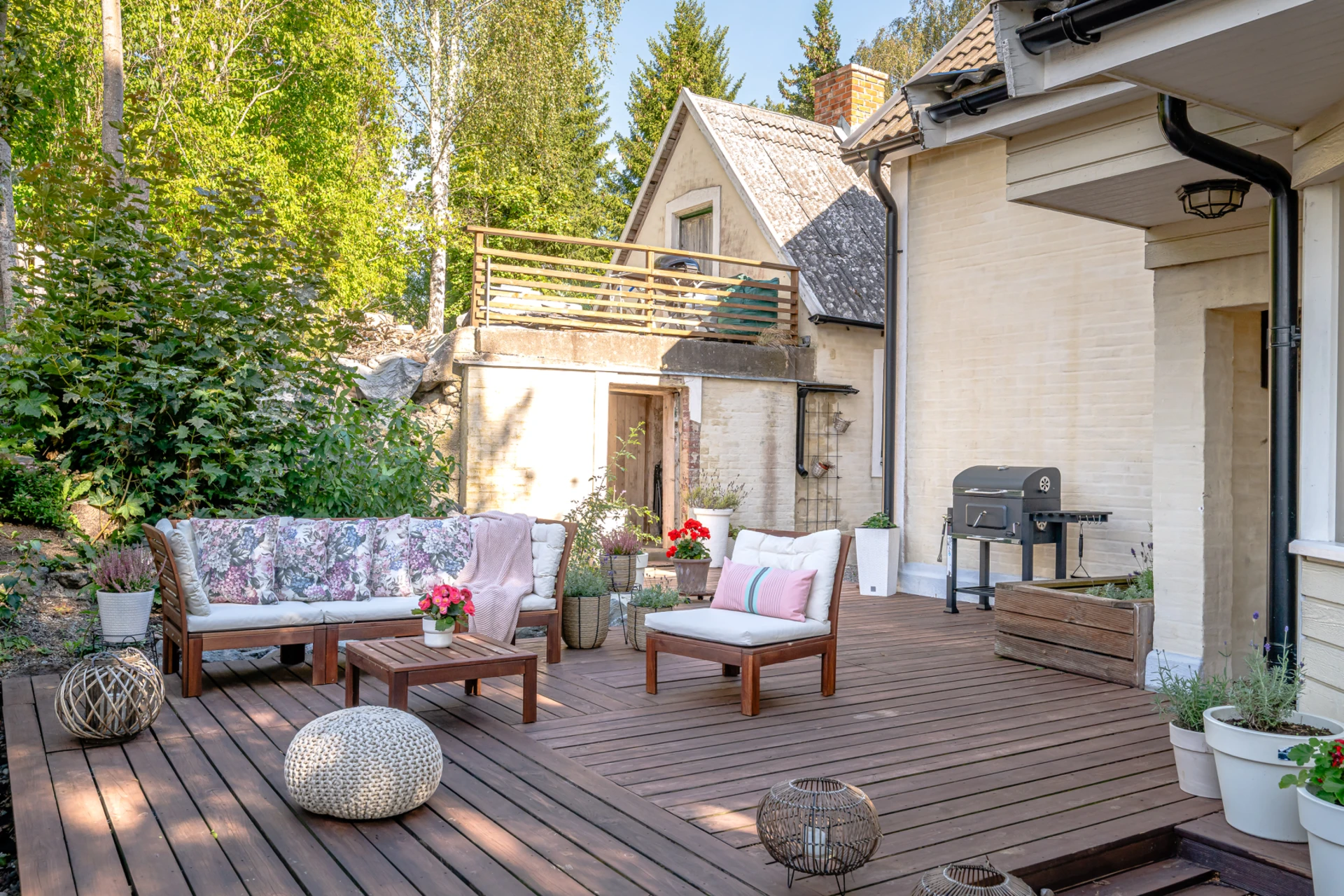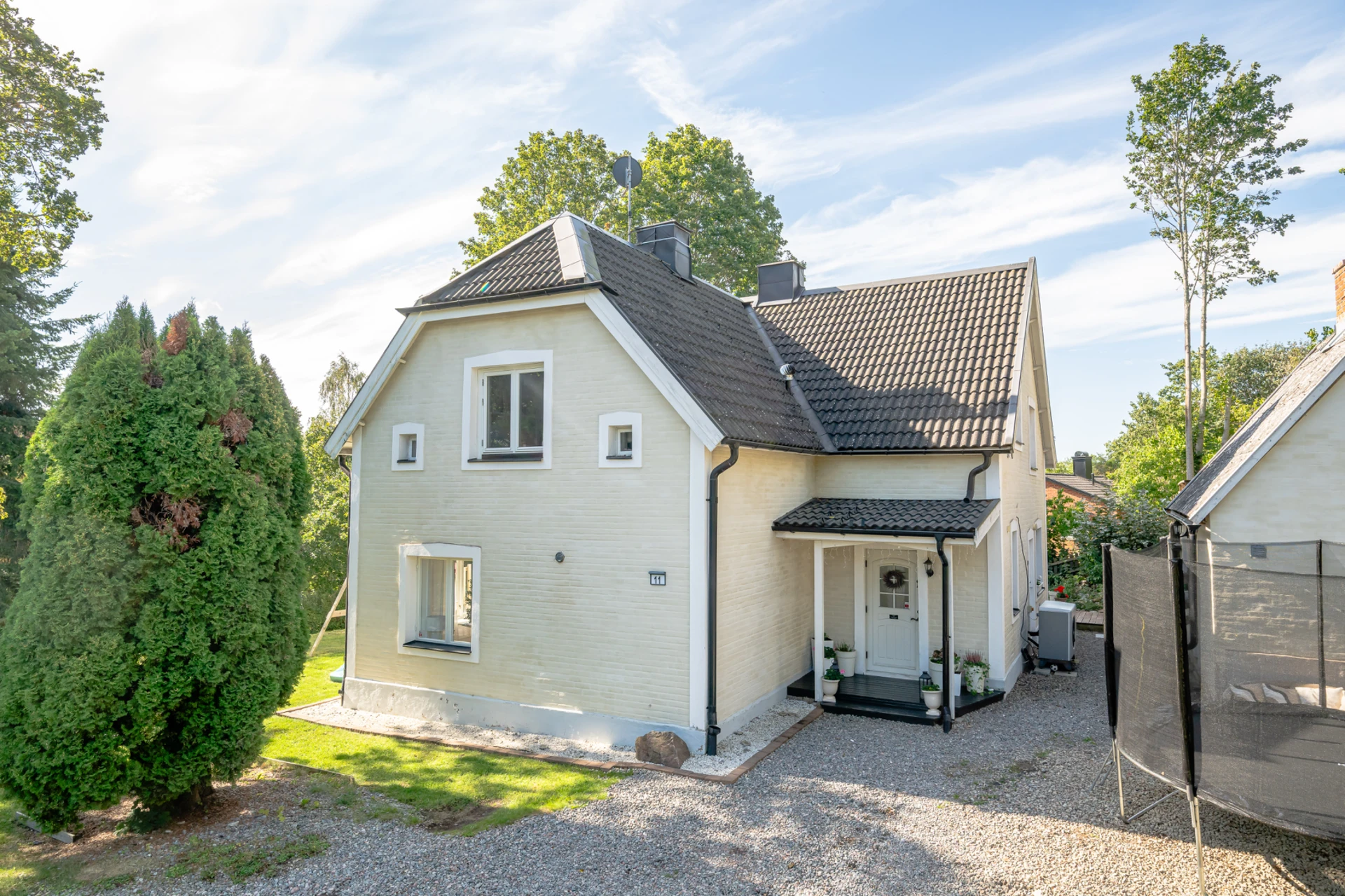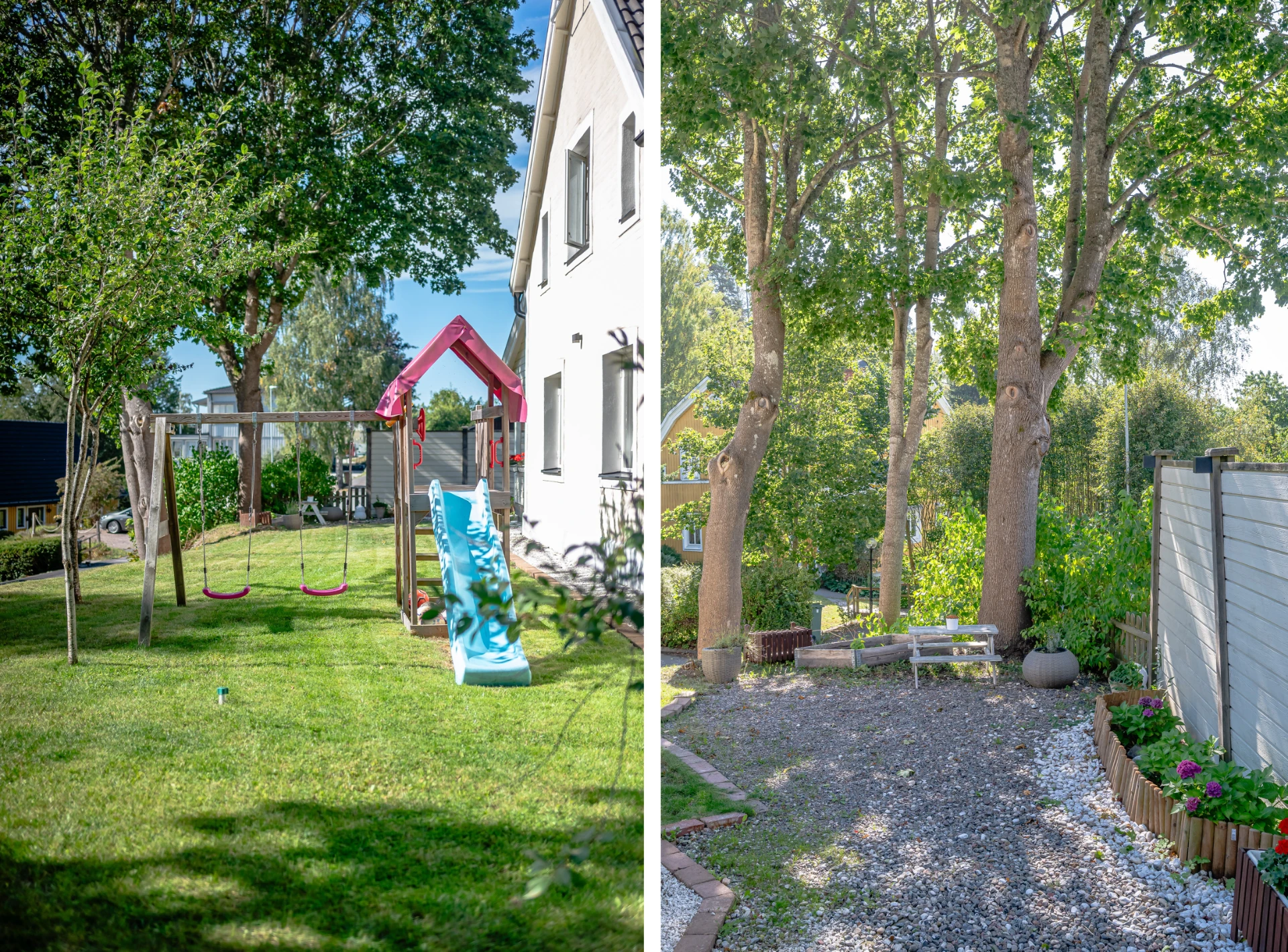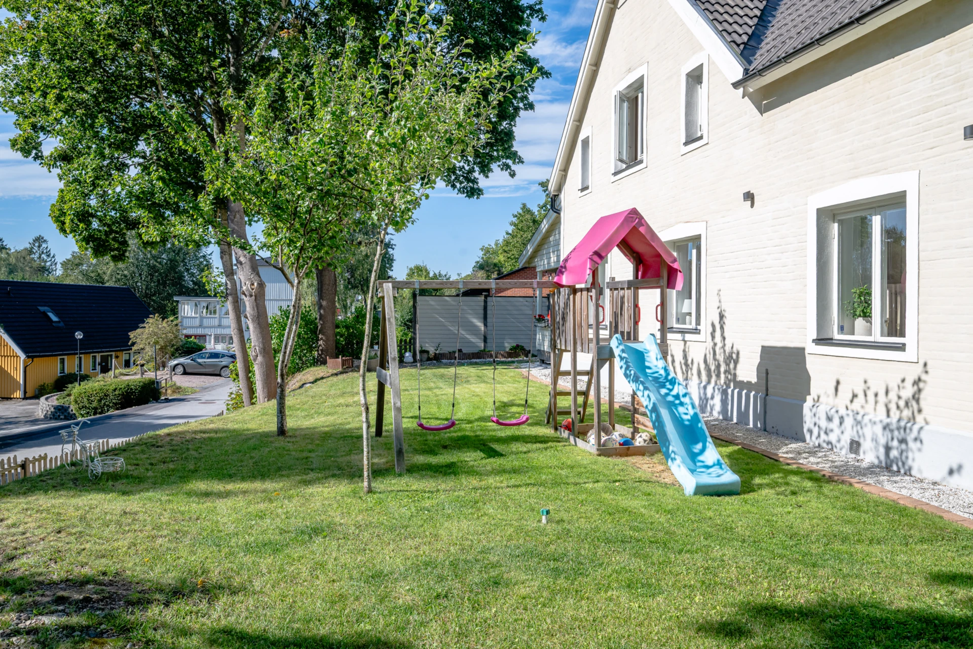 Laminatgolv med vattenburen golvvärme och tapetserade väggar. Braskamin och matplats för 6 personer. Stor öppning till vardagsrummet.
