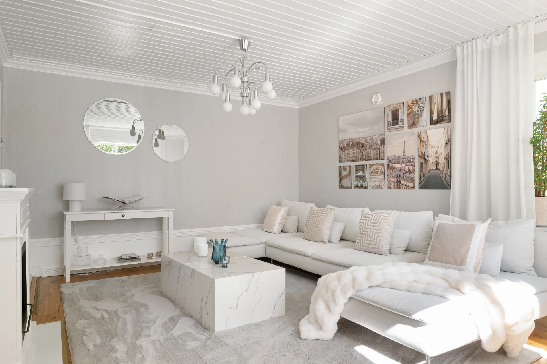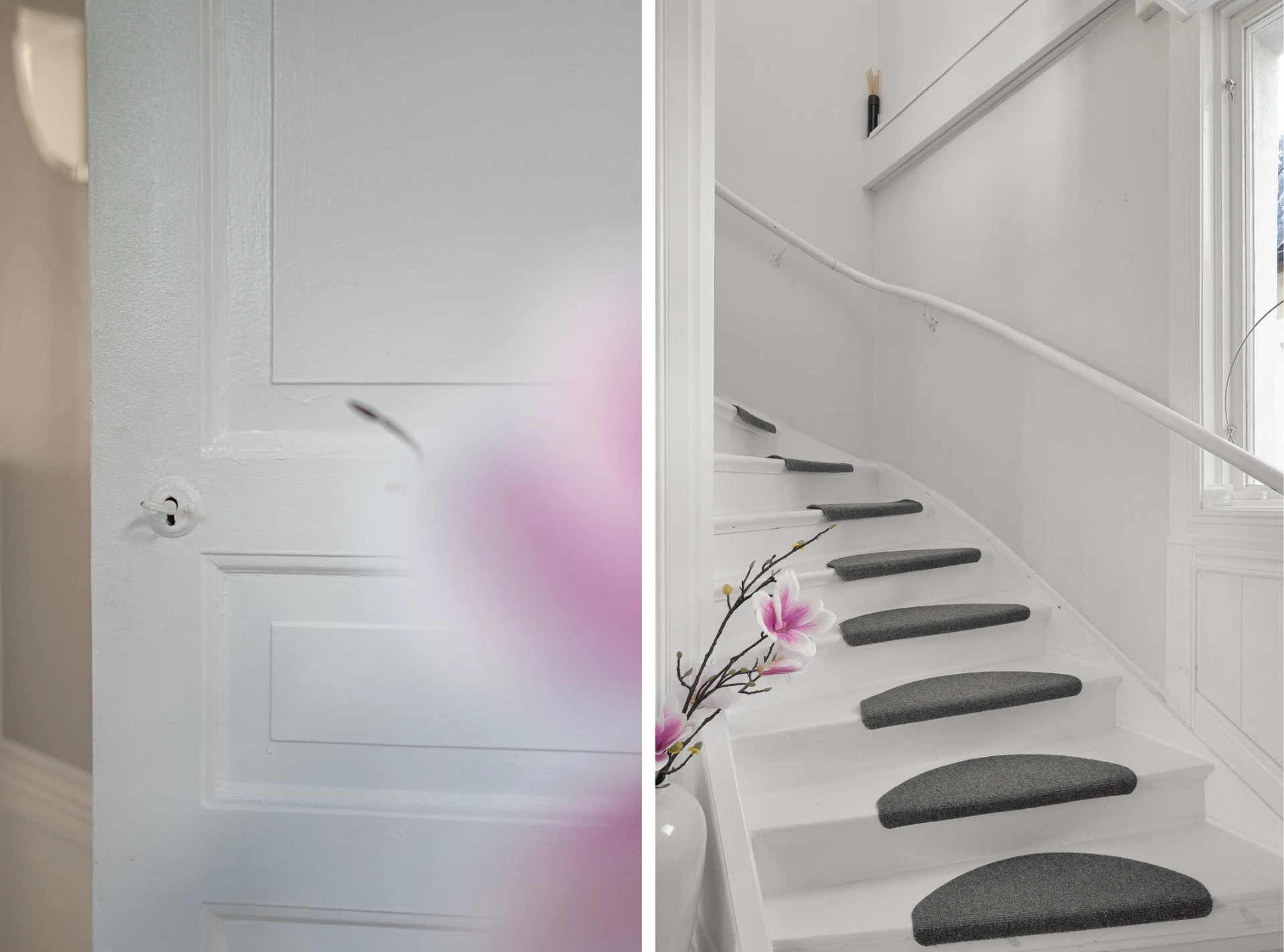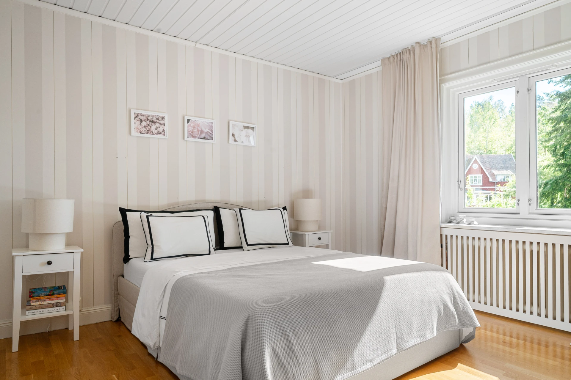 Laminatgolv med vattenburen golvvärme och målade väggar.