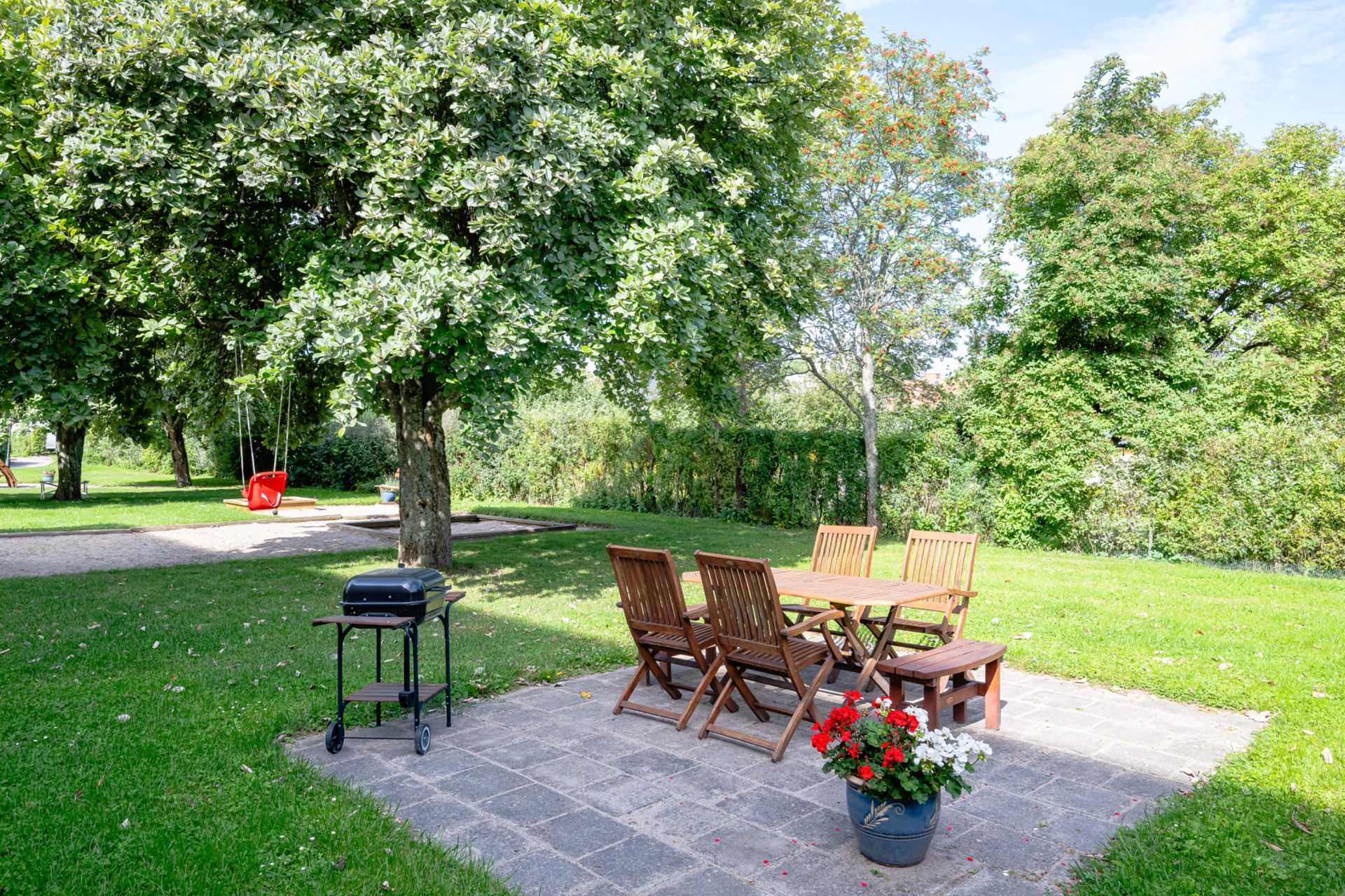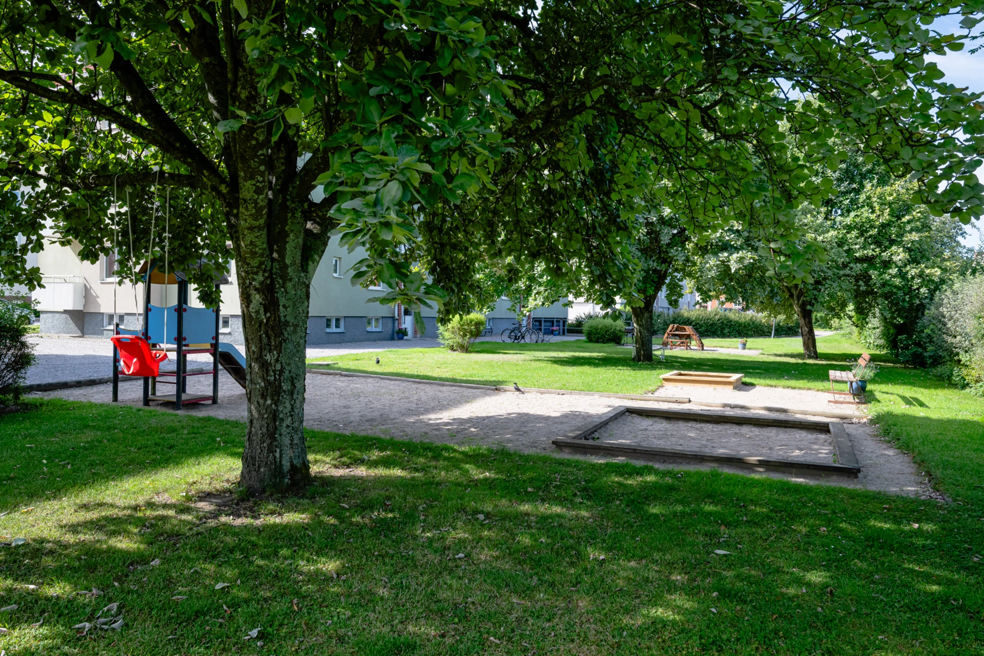 Tre tvättstugor totalt i båda husen. Två uteplatser. En samlingslokal och ett litet gym. En litet snickarutrymme.