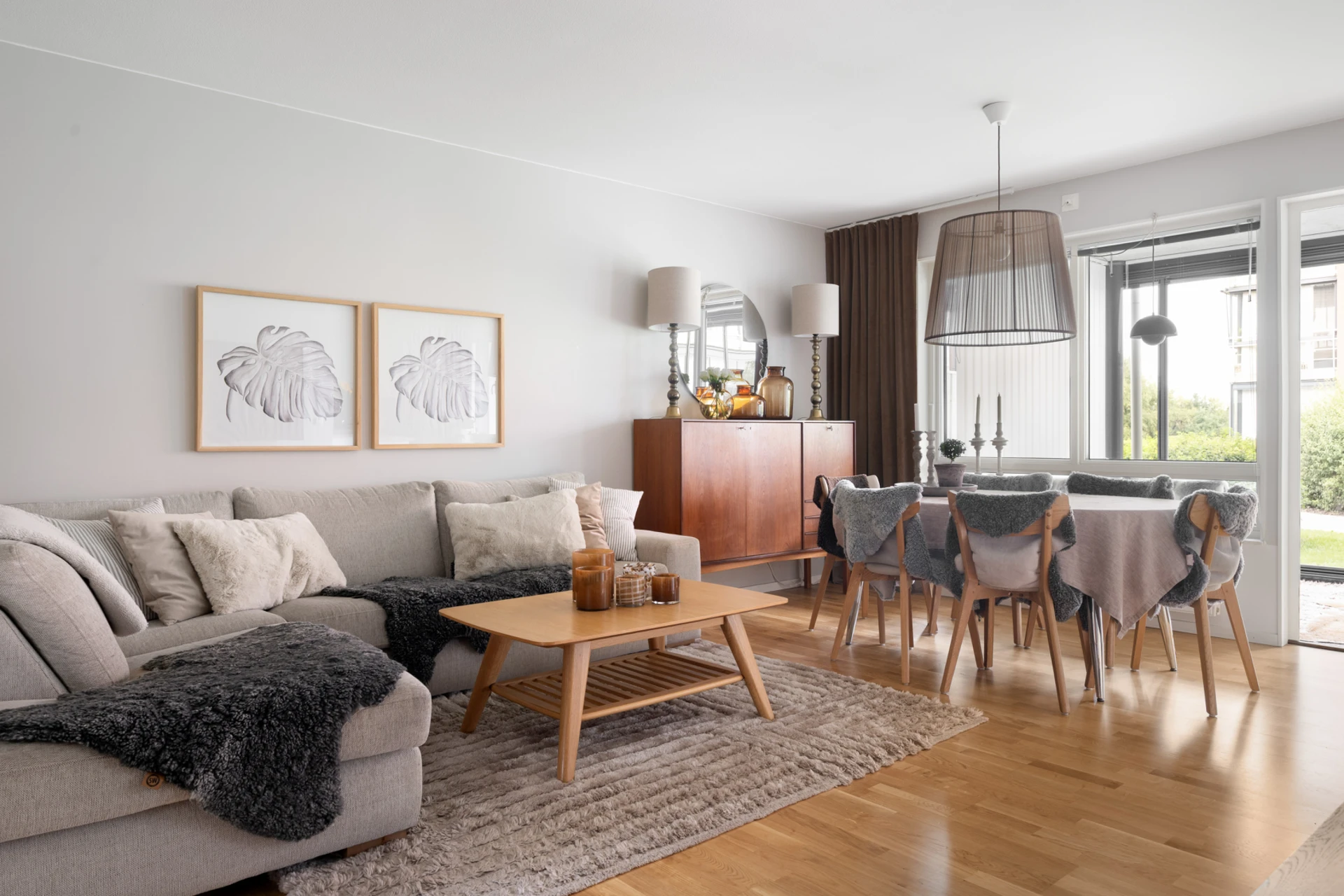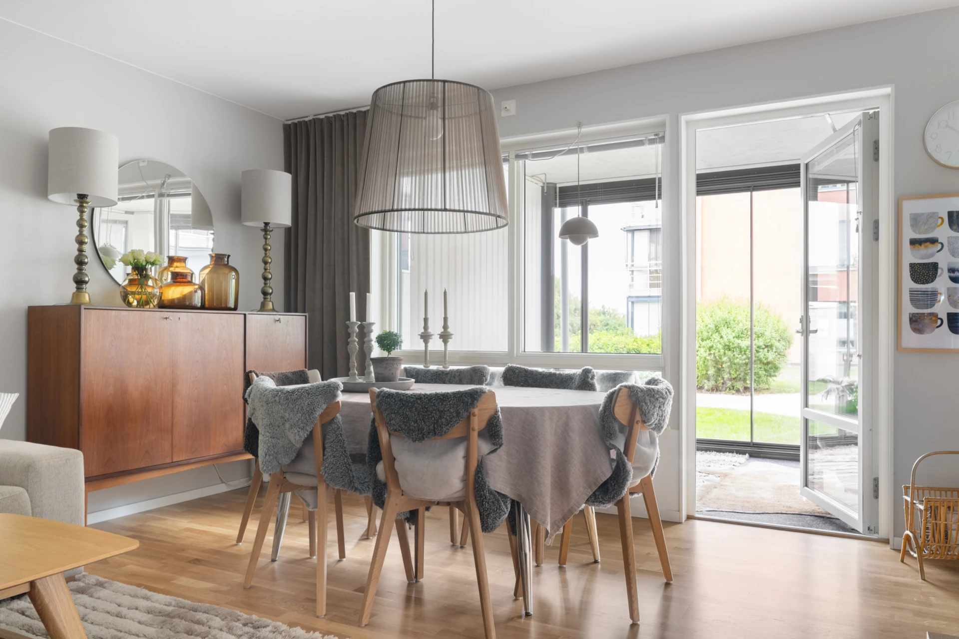 Stilfull lägenhet med inglasad uteplats i naturnära miljö - ett hem som förenar modern komfort med närhet till både vatten och grönska. Här möts smakfull design och genomgående hög standard i en interiör som direkt skapar en inbjudande känsla. Den välplanerade dispositionen gör bostaden både praktisk och trivsam, med en perfekt balans mellan funktion och estetik. Köket är en självklar samlingspunkt, utrustat med rostfria vitvaror och planerat för både matglädje och sociala stunder.
