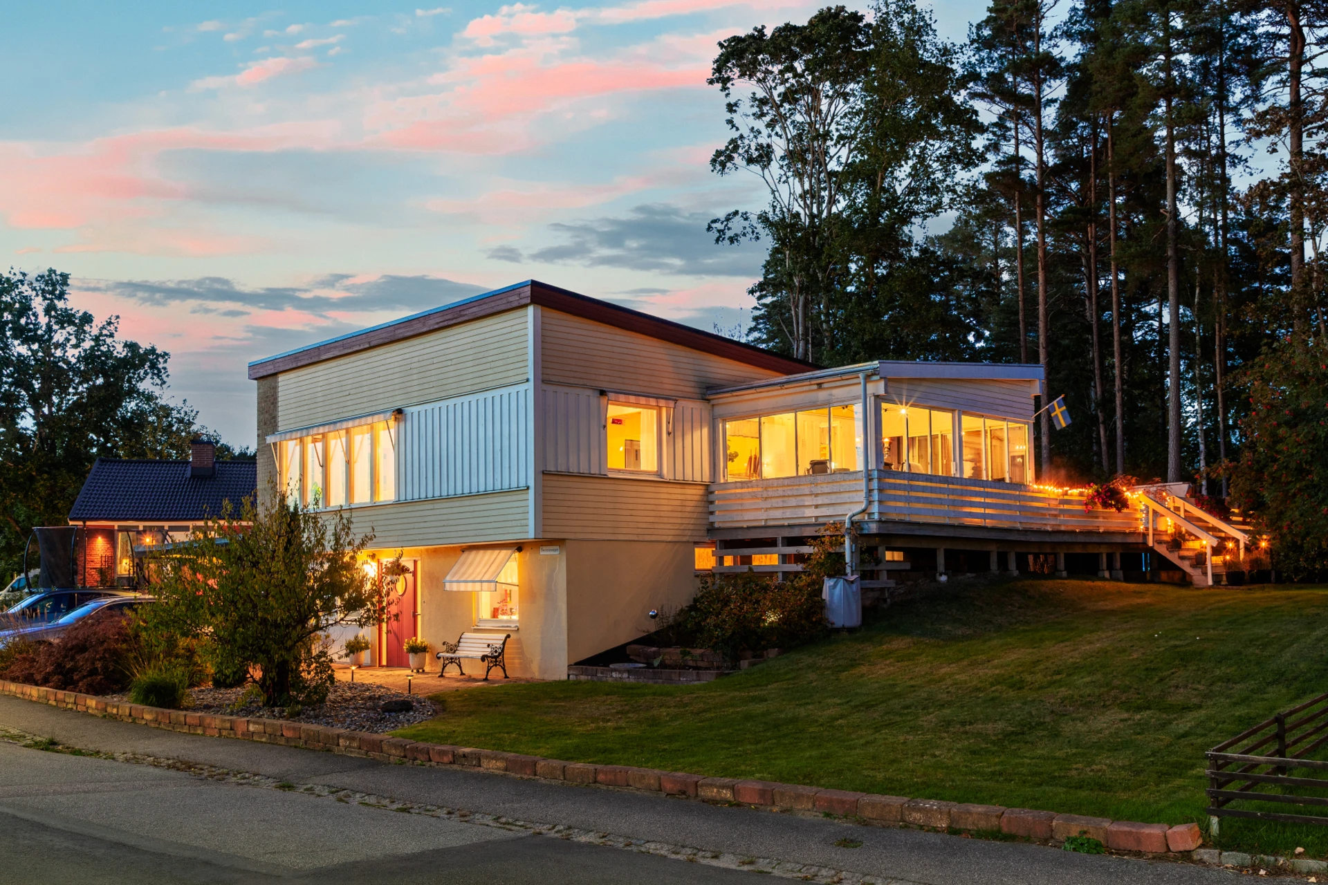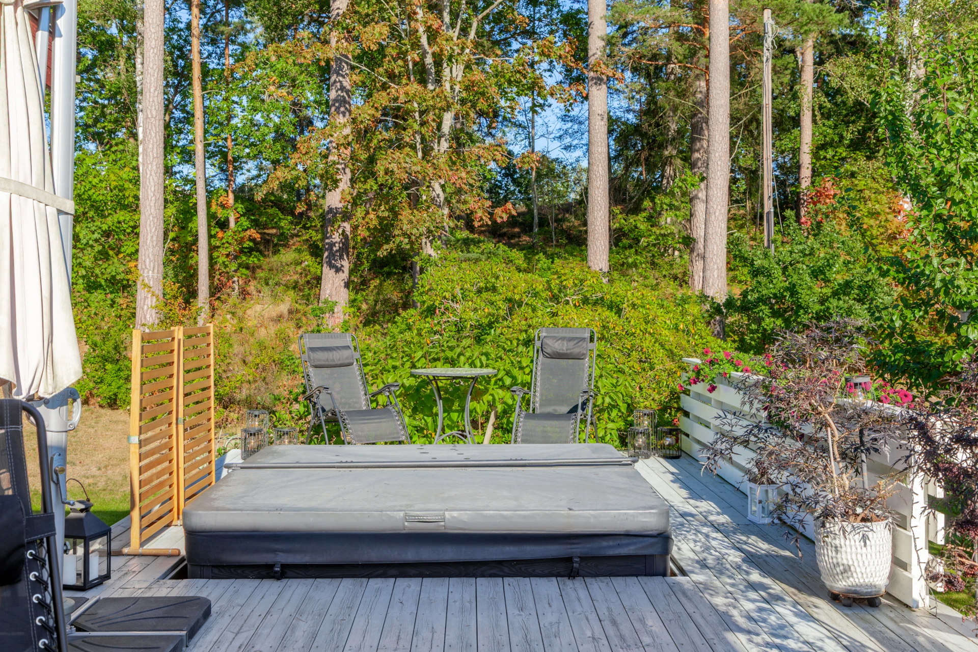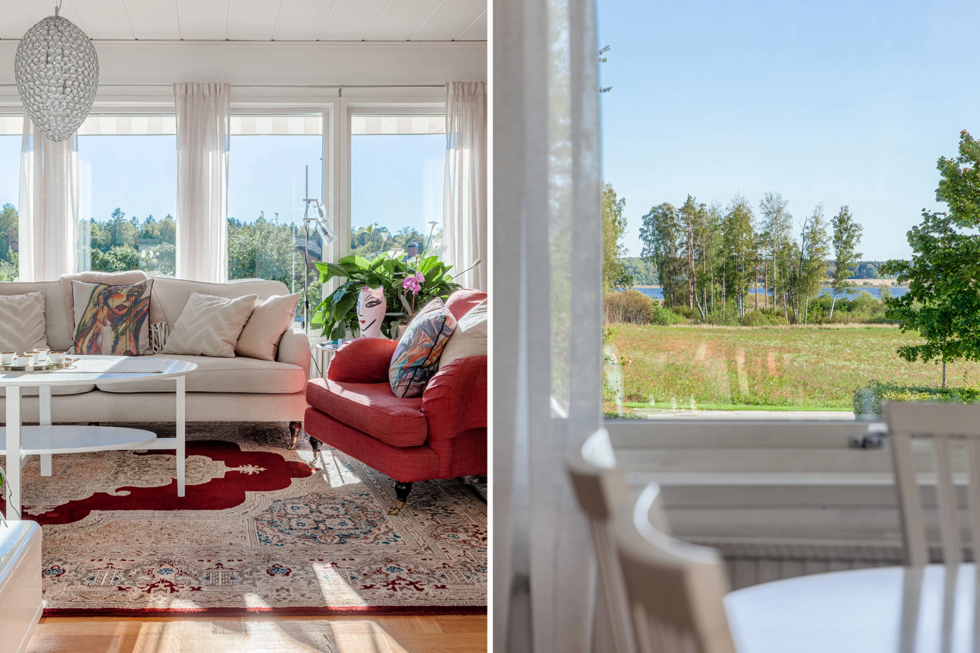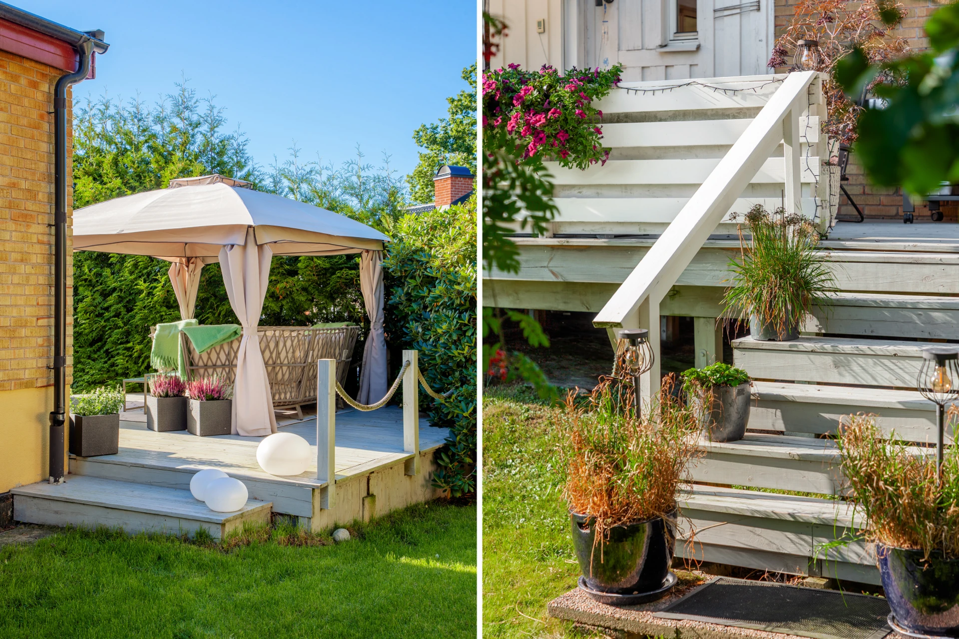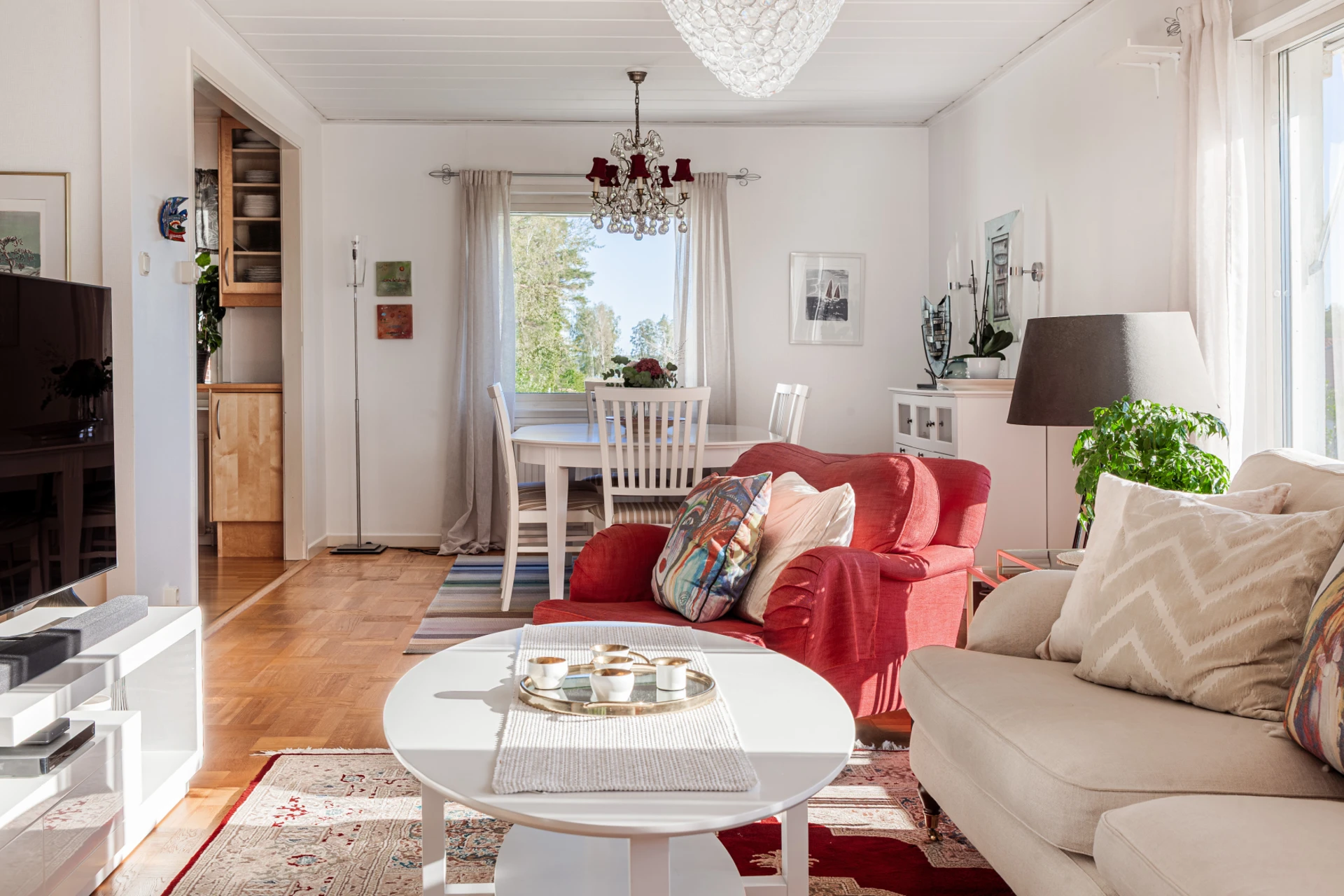 Parkettgolv och vitmålade väggar. Köksinredning från Ballingslöv med luckor i gediget björkträ, arbetsbänk i laminat och kakel som stänkskydd. Köket är utrustat med kyl och frys med ismaskin i fullhöjd (Samsung), extra bred induktionshäll (Electrolux), inbyggd varmluftsugn med ångfunktion (Samsung), fläkt, inbyggd mikro (Electrolux) samt diskmaskin (Electrolux). Flyttbar köksö på hjul. Utgång till inglasat uterum och vidare access till altanen med inbyggt spabad.