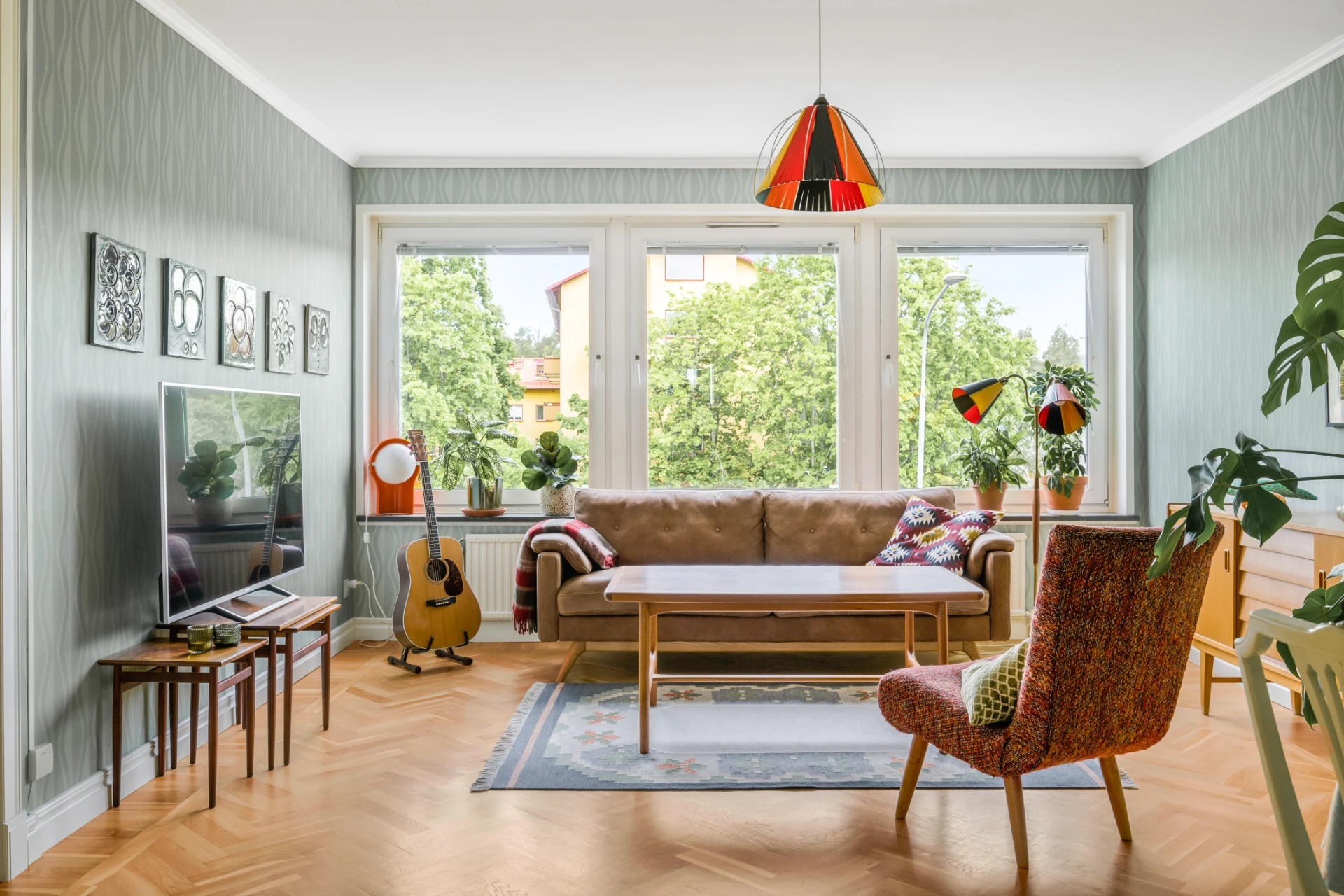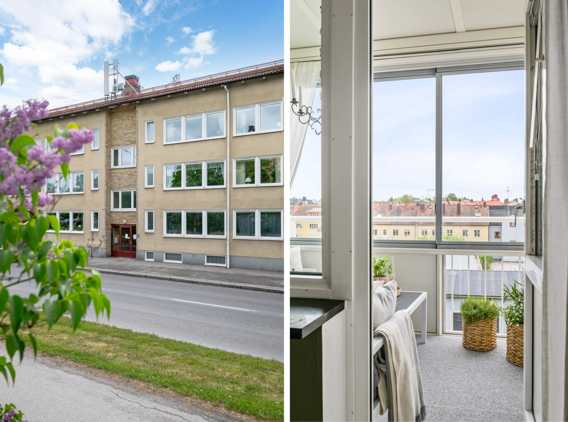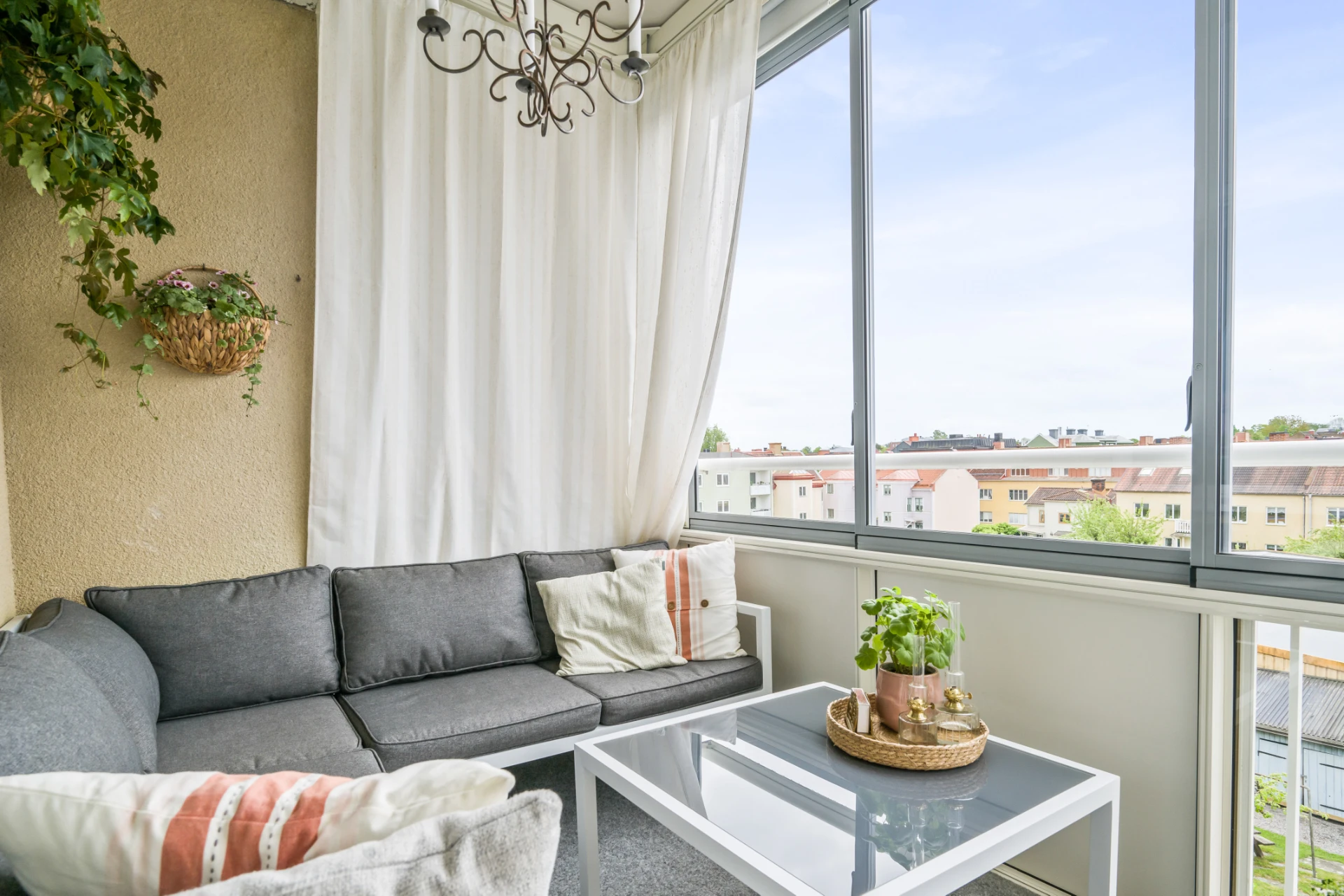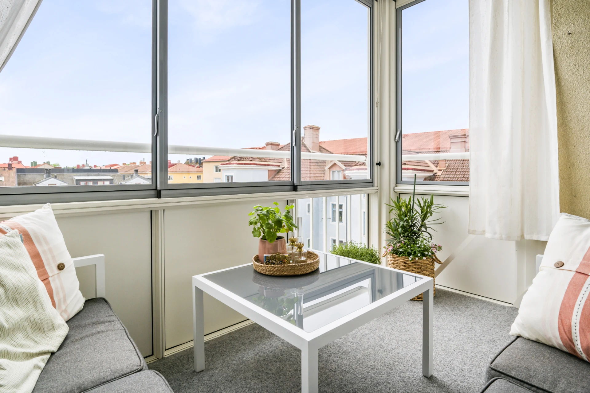 Charmig trea med retrovibbar och inglasad balkong, mitt i stan! Välkommen till en hemtrevlig och väldisponerad trea med karaktär, belägen i hjärtat av stan! Här bor du högt upp i huset, utan insyn, med stora fönsterpartier i två väderstreck som skapar ett ljust och luftigt hem med härlig rymd.