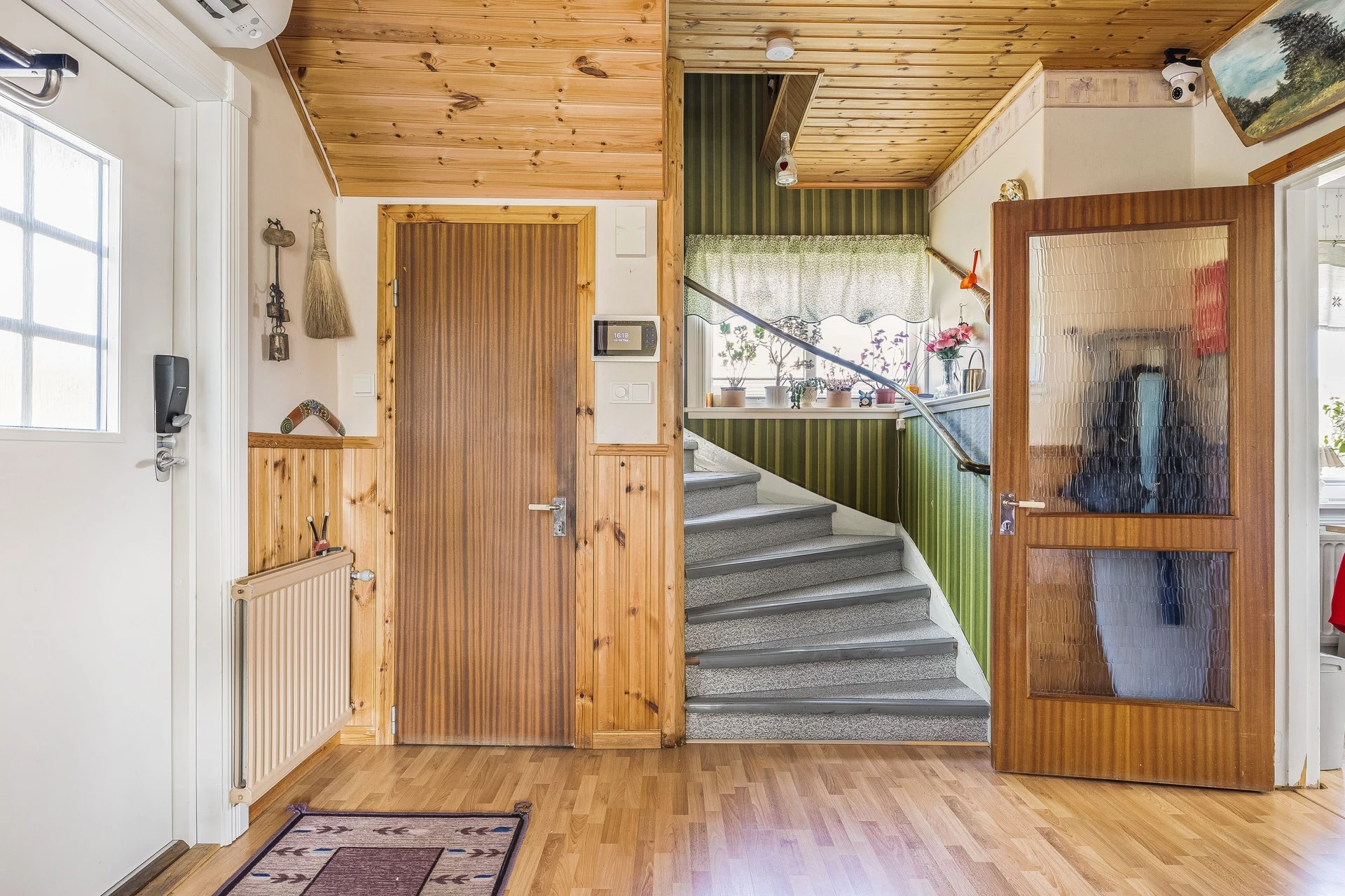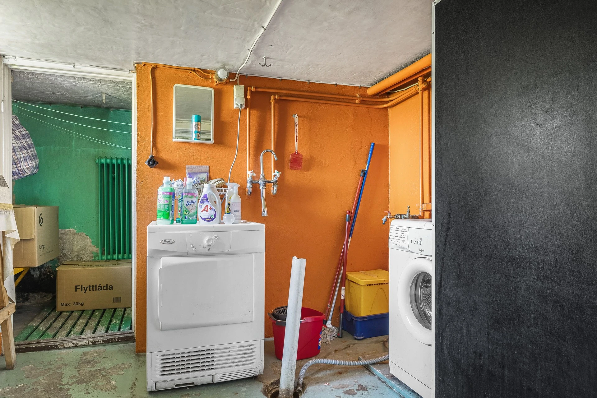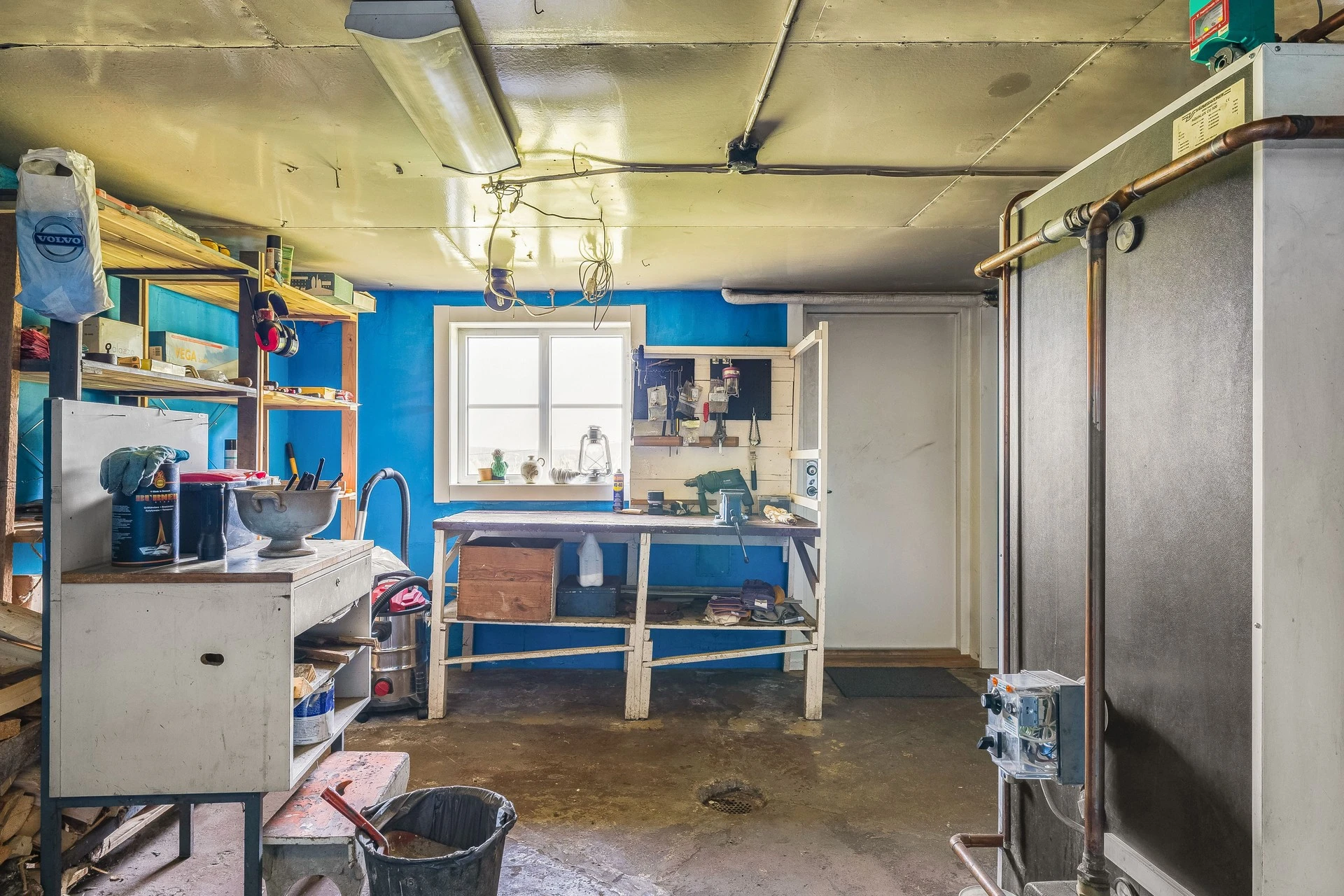 Till fastigheten hör även ett garage med plats för bil, verktyg eller annan förvaring. På källarplanet finns ytterligare utrymme i form av tvättstuga, förråd och extra förvaringsmöjligheter.
