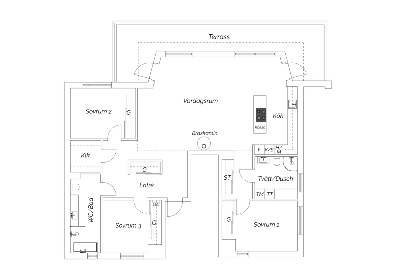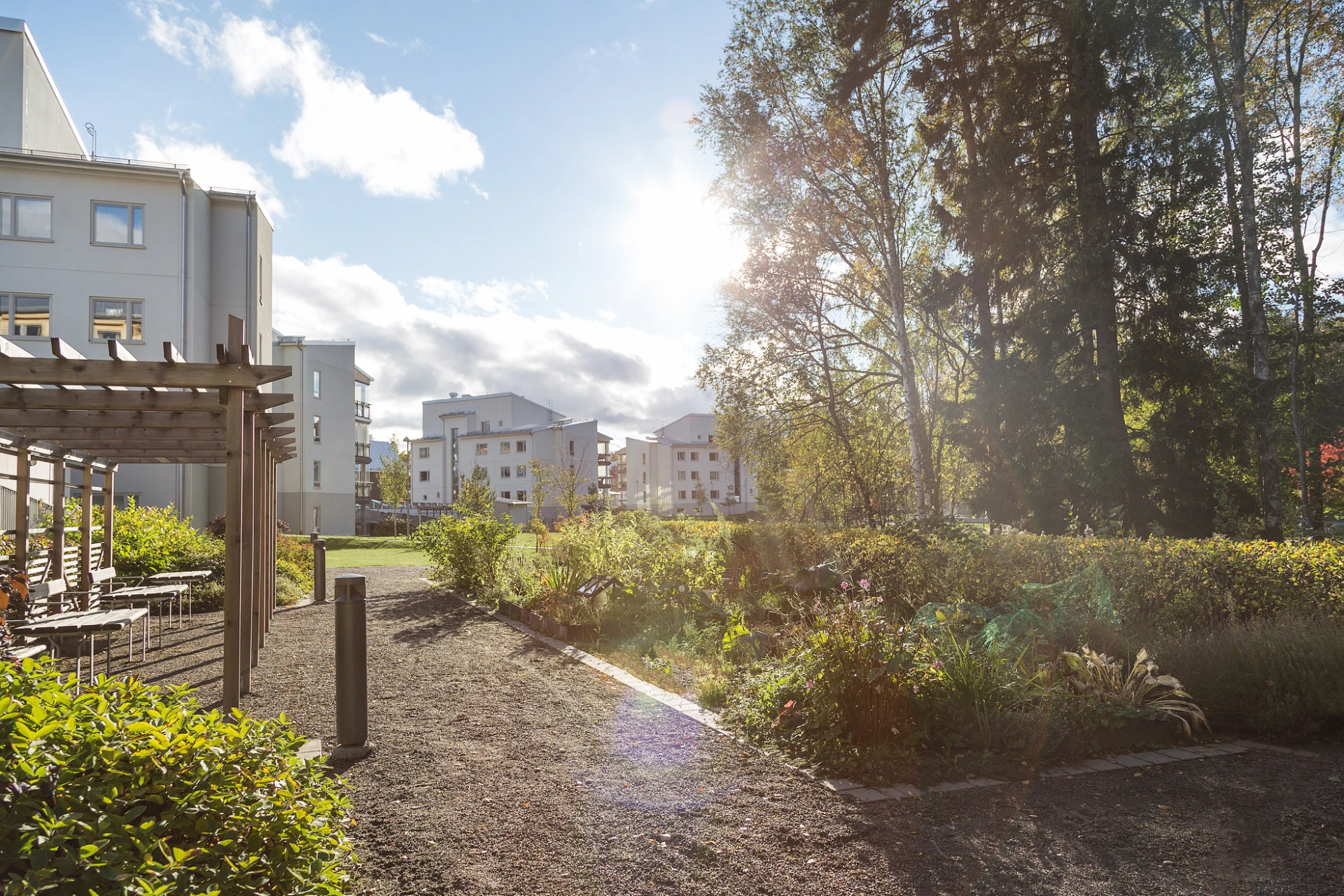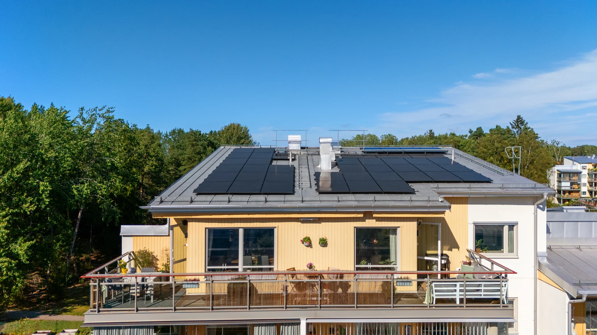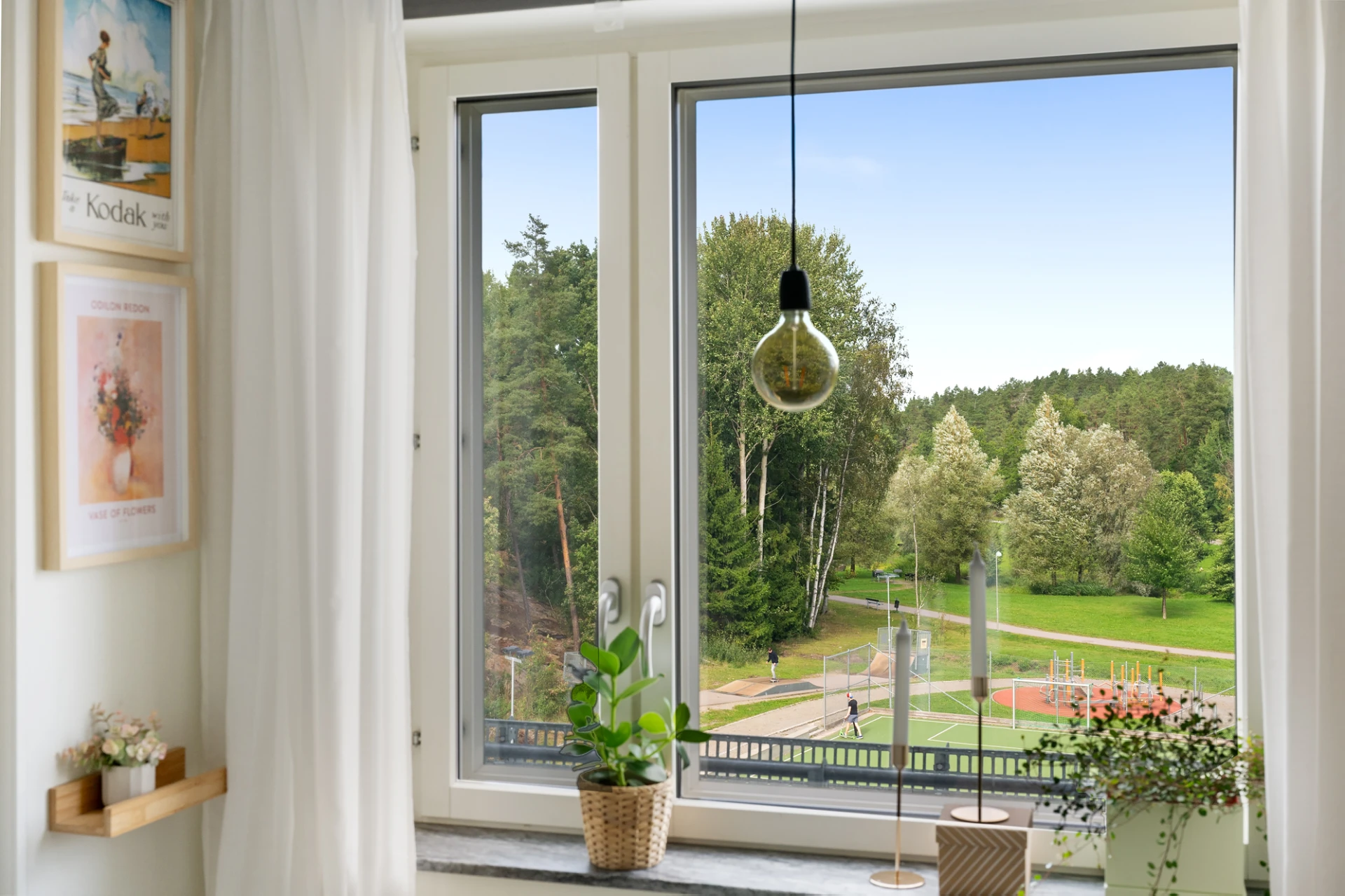 Den generösa takterrassen om 25 kvm är unik i sitt slag. Ett högt och fritt läge med bästa solmöjligheter. Här ryms både matplatsmöbel, grill och stor loungemöbel. En markis (nytt markistyg sep 2025) som ger solskydd under de hetaste sommardagarna.