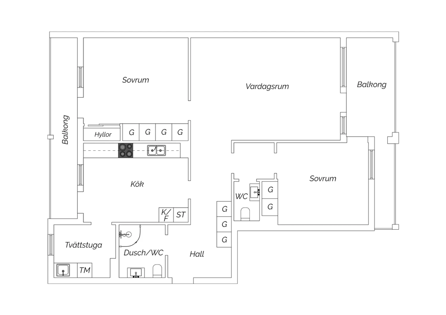 3 rum, 89 kvm boarea
