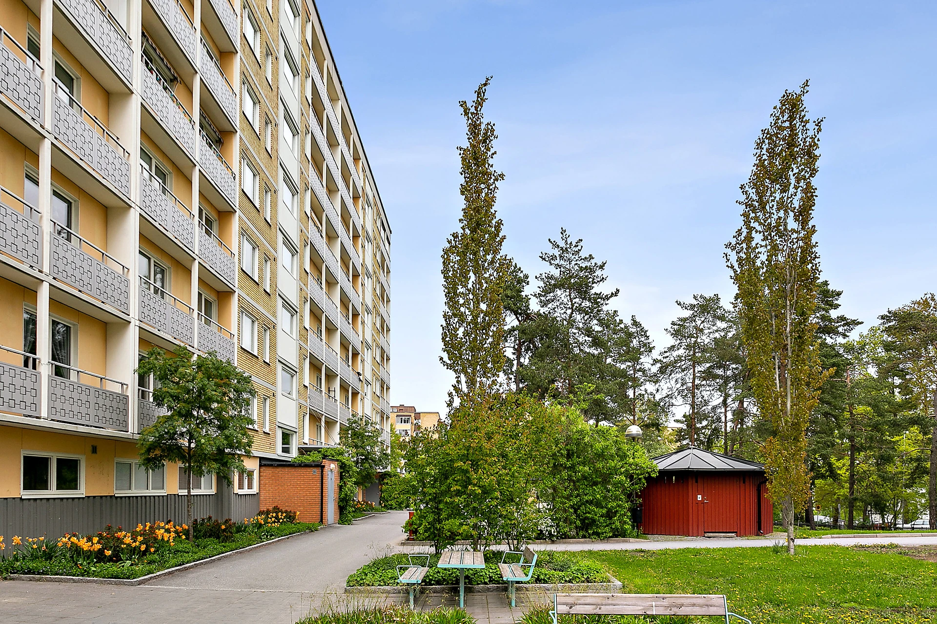 Här har ni nära till Älta centrum och skolor såväl som till den vackra naturen. Man tar sig lätt till Tyresö, Sickla eller Stockholm city med bil eller buss. I detta lummiga närområde finns många grönområden, här ges en viss känsla av att bo på landet, trots att man når Gullmarsplan och Slussen med en kort bussresa. Förutom intilliggande Ältasjön finns även närheten till Flatenbadet med underbar sandstrand för hela familjen. Ishall, tennishall och idrottsplats ett par minuter bort. Ca 5 minuter (med bil) bort ligger Hellasgården med sitt breda utbud av friluftsliv. Sjöarna i närheten är förutom den intilliggande Ältasjön med badmöjligheter även Flaten, Strålsjön, Sandasjön, Ulvsjön, Söderbysjön, Dammtorpssjön och Källtorpssjön. I närområdet ligger även friluftsanläggningen Hellasgården vid Källtorpssjön och Erstaviks fina 1700-talsherrgård nära Erstaviksbadet.
