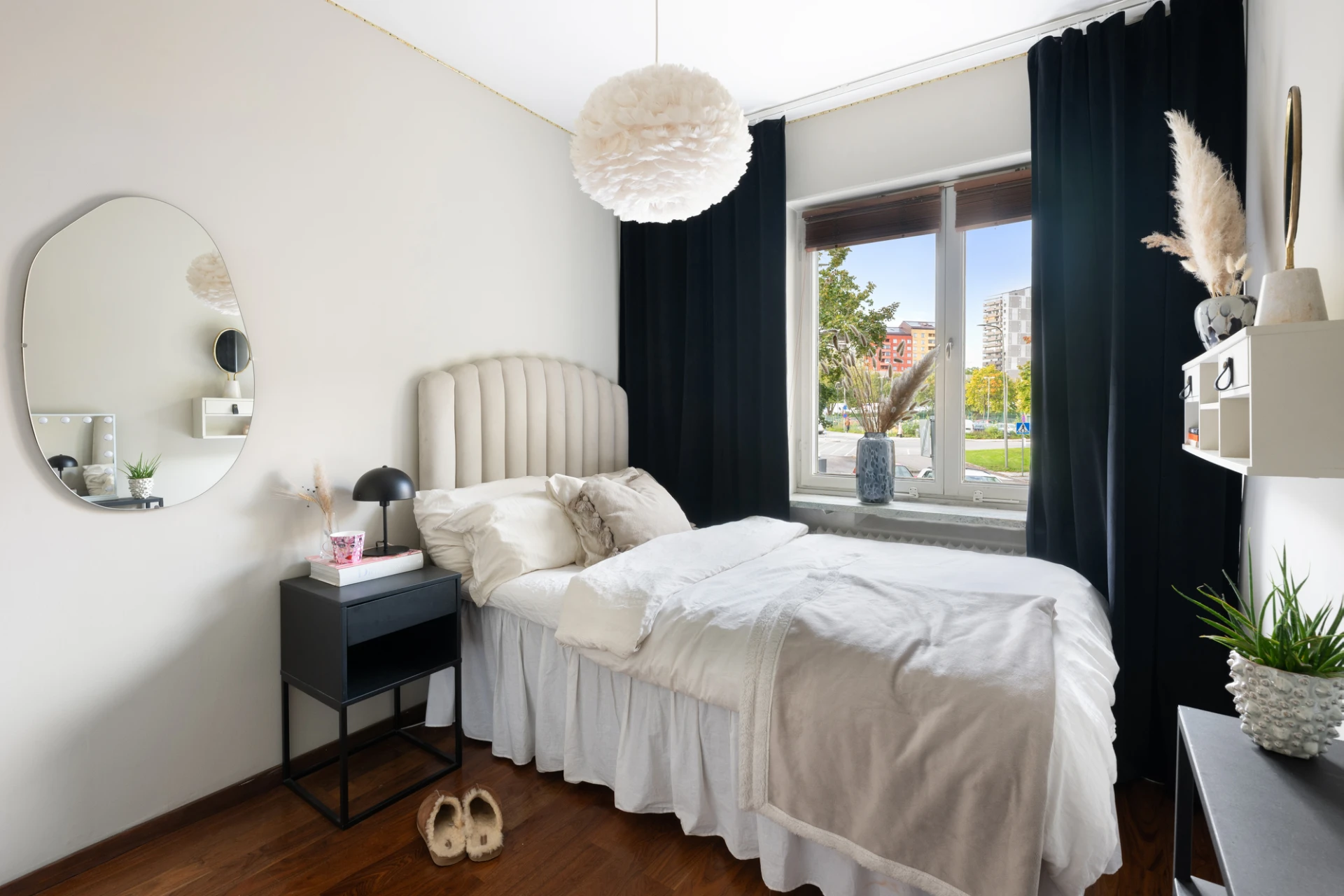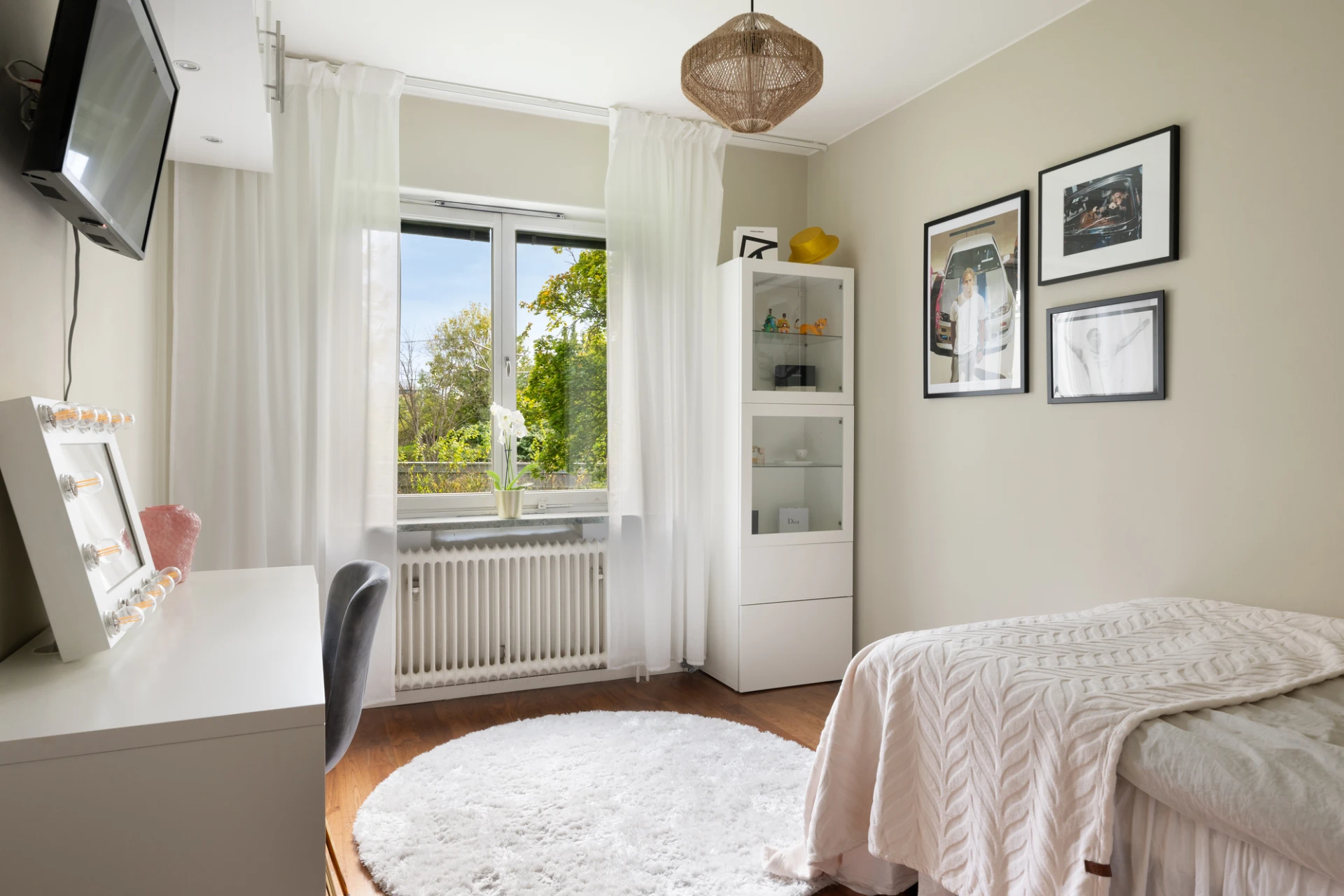 Fint sovrum med ett härligt ljusinsläpp. Här finns plats för säng, sängbord och annat önskat möblemang.