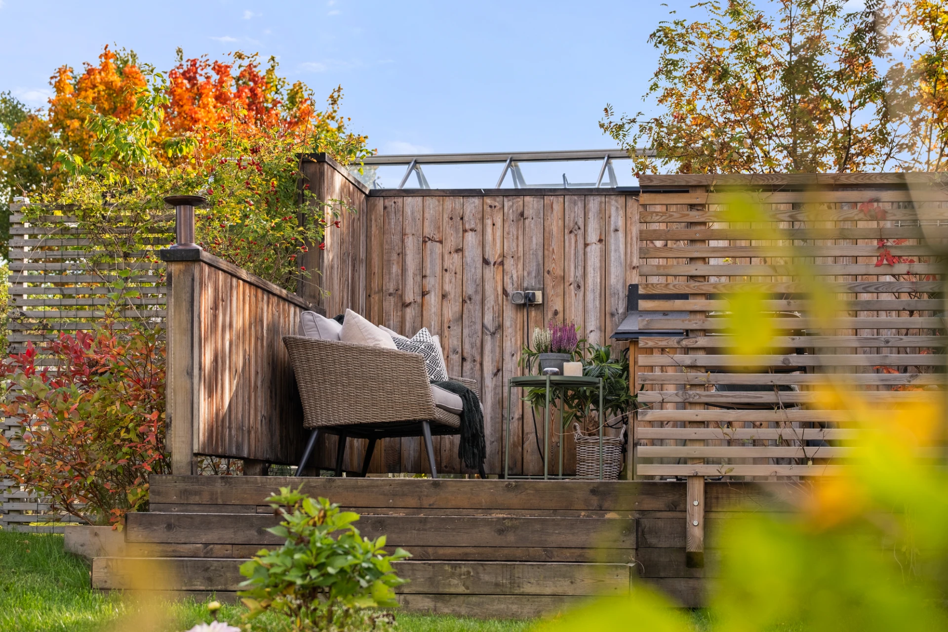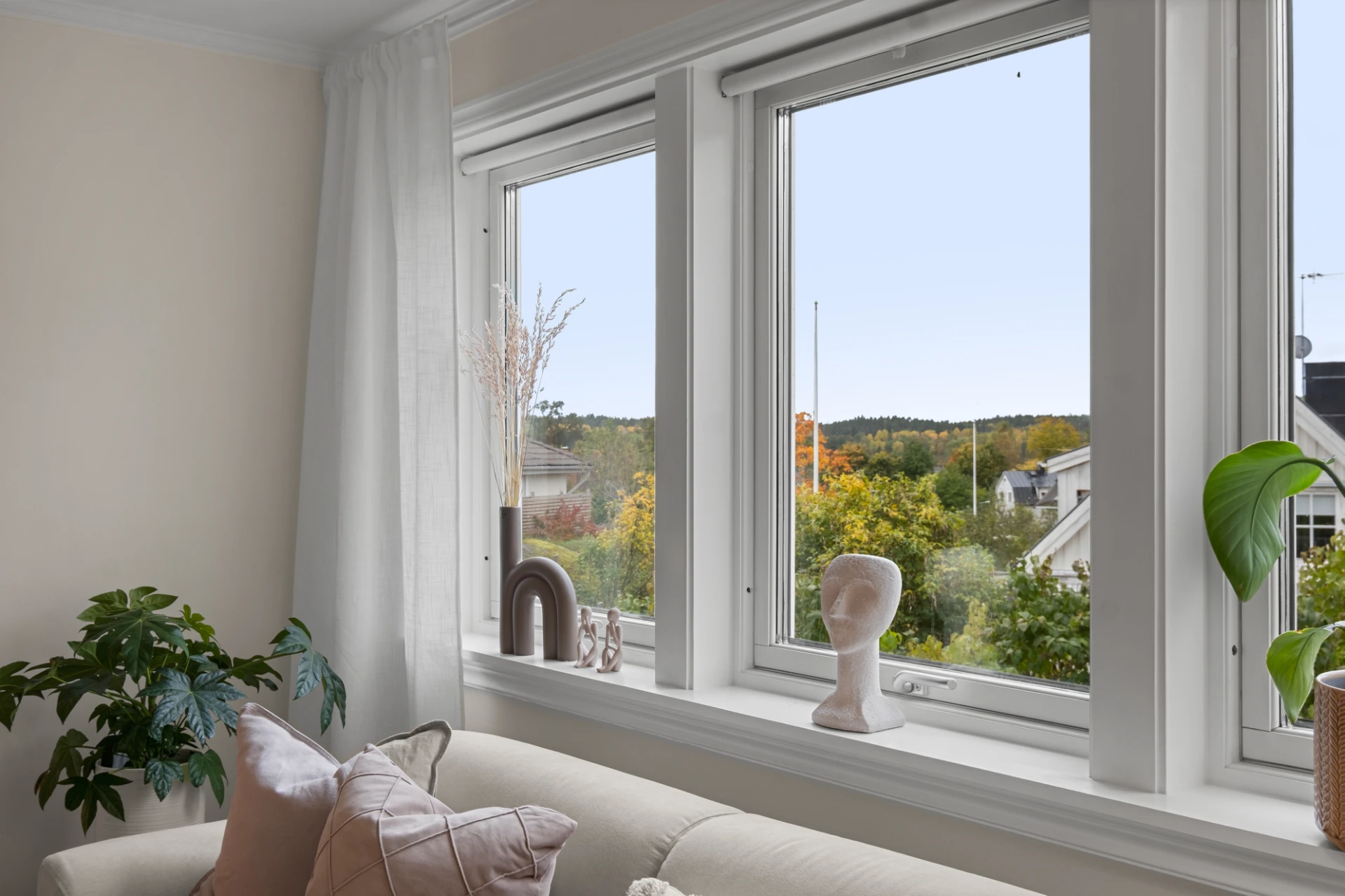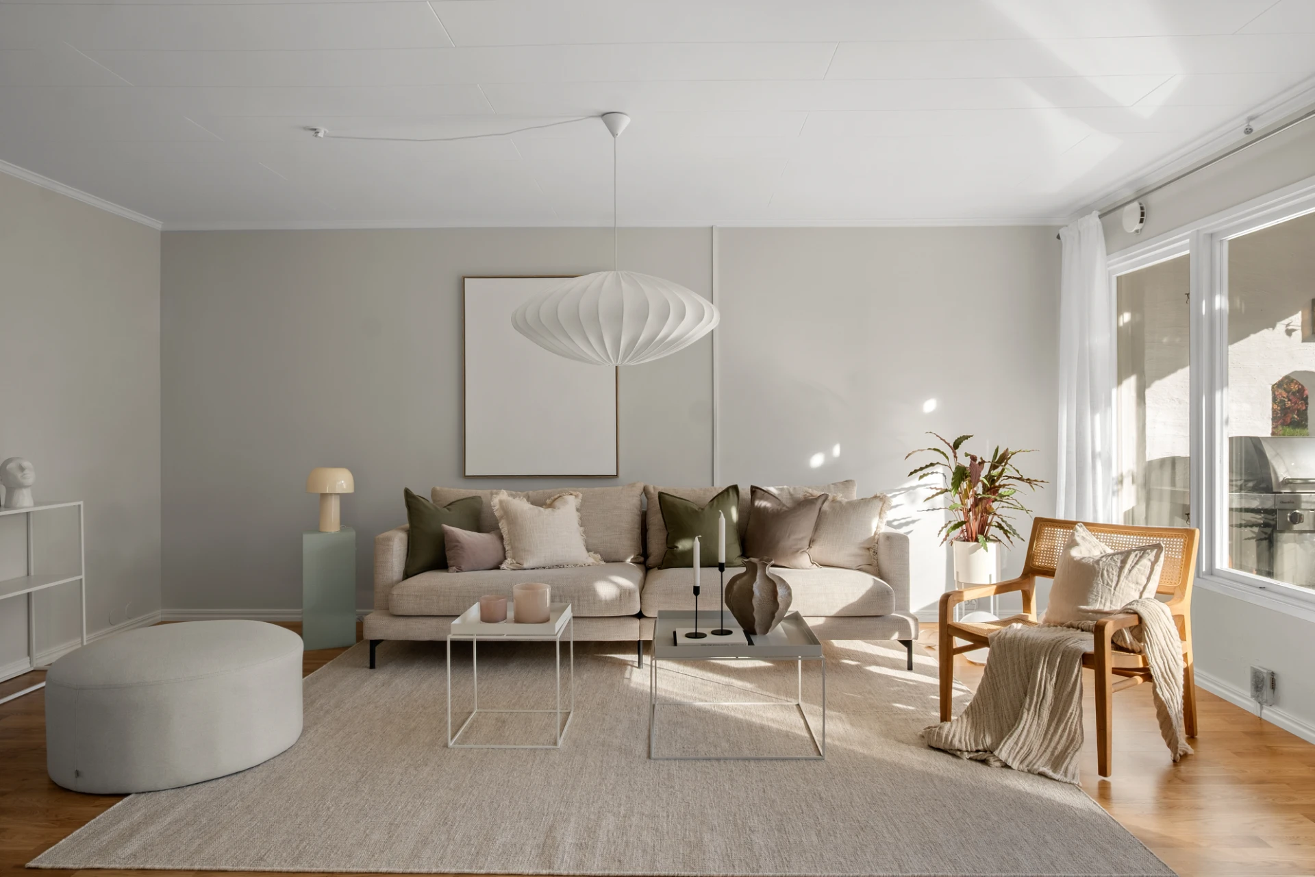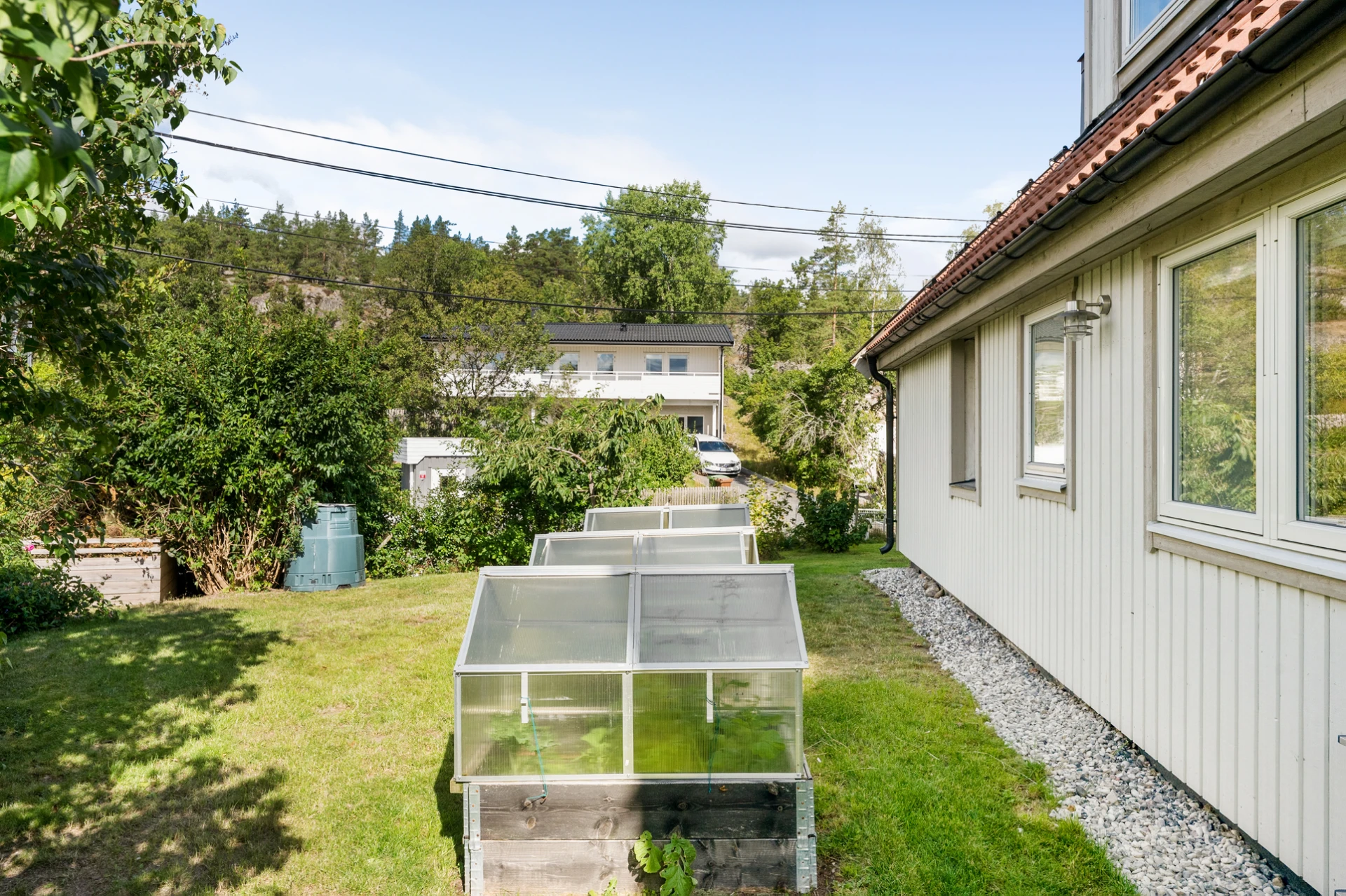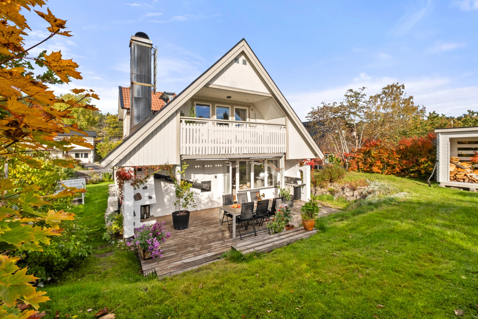 Generöst vardagsrum med plats för soffgrupp, soffbord, tv-möbel och matplats. En täljstenskamin skänker både värme och mysfaktor under höst- och vinterhalvåret. Ekparkett, ljust målade väggar och altandörr ut till den trädäckade uteplatsen. Här finns även en luft-luftvärmepump som kan leverera både värme och kyla för extra komfort året runt.