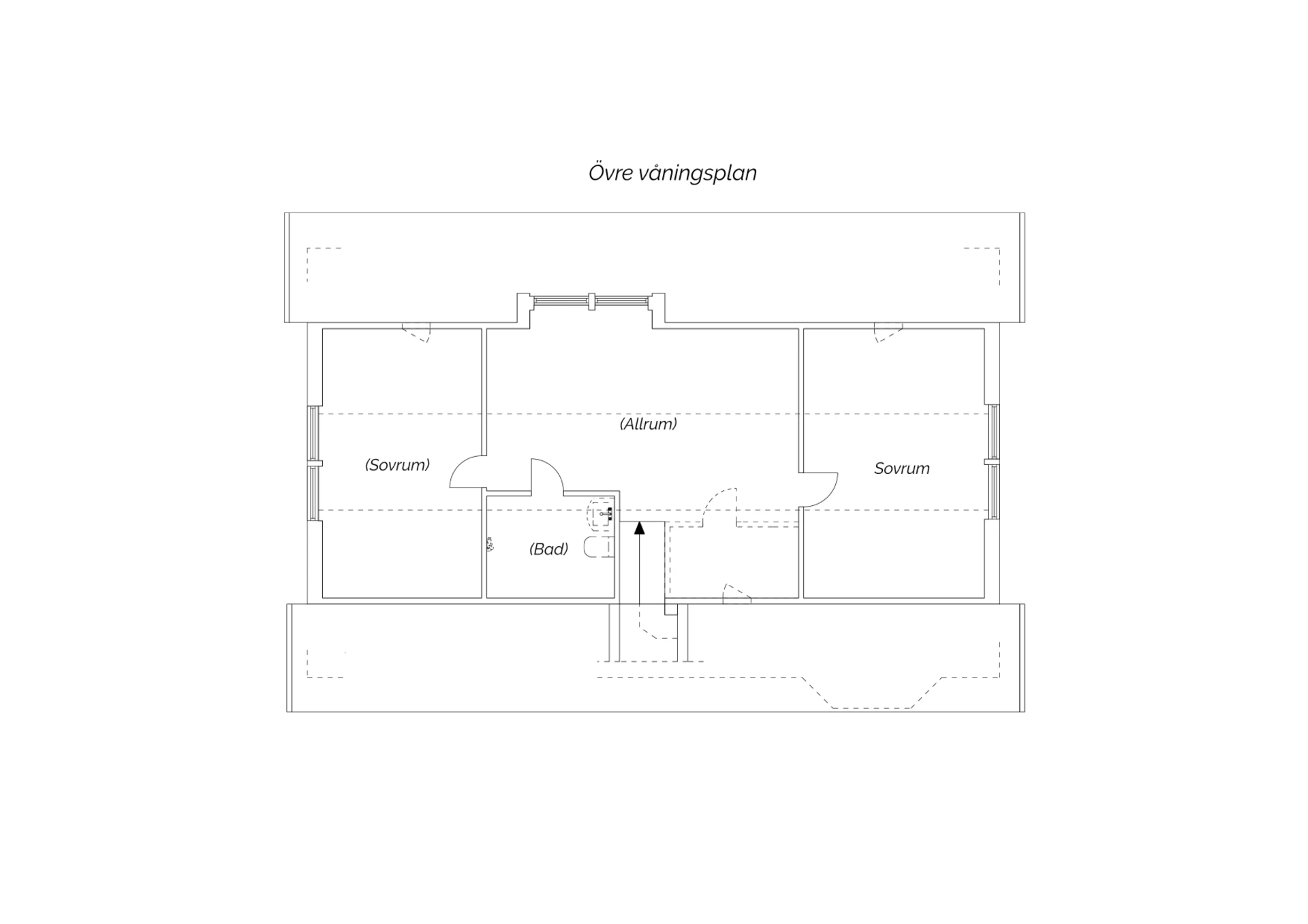 Rymligt allrum med plats för soffgrupp, tv-möbel och annat valfritt möblemang.