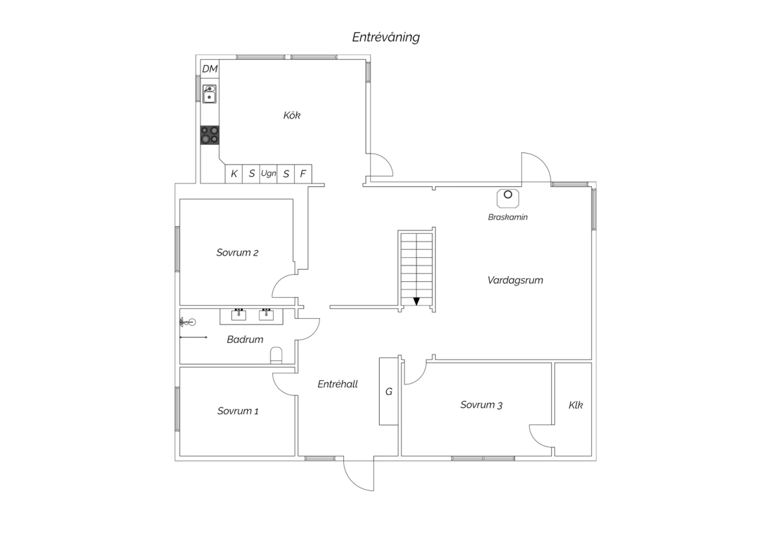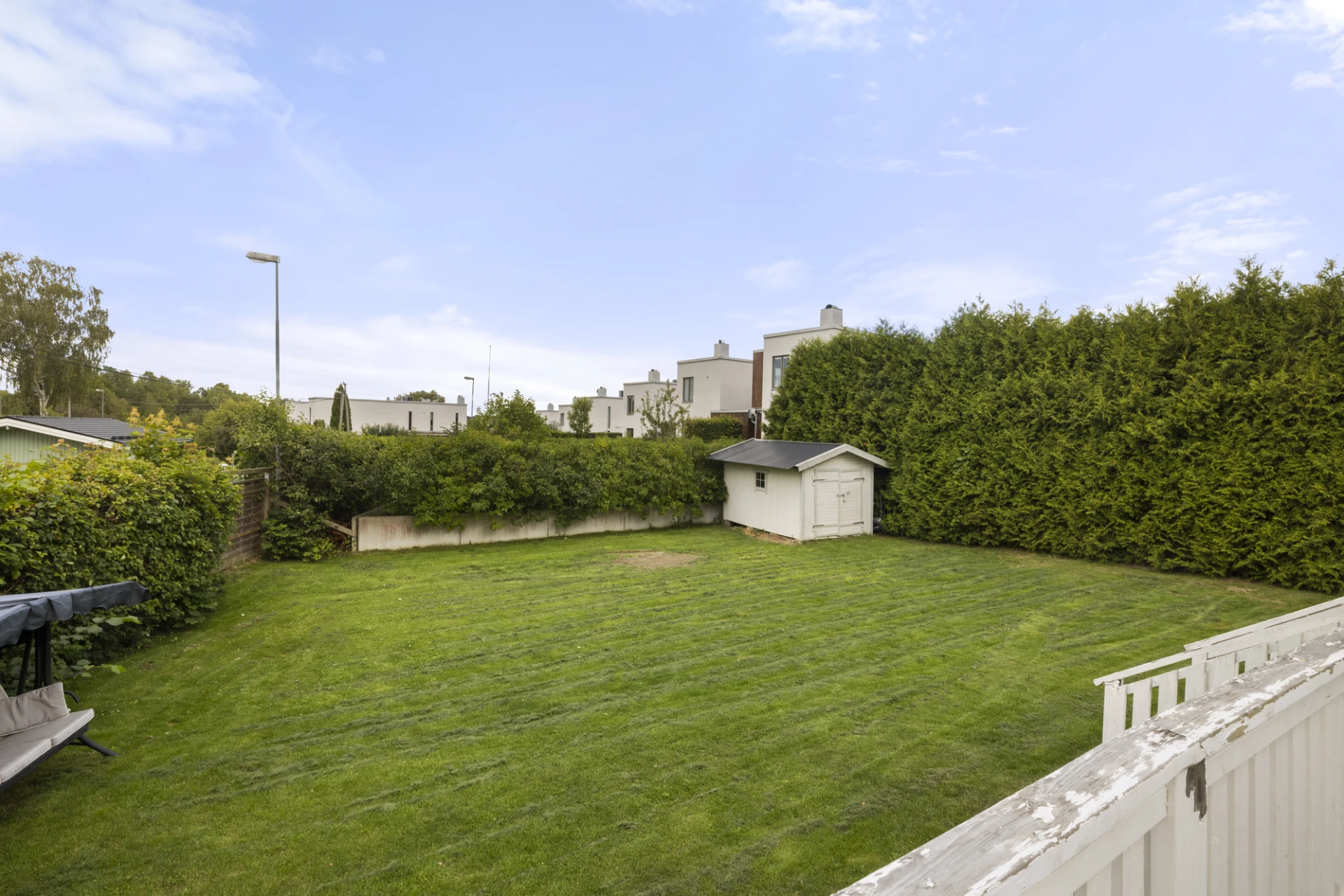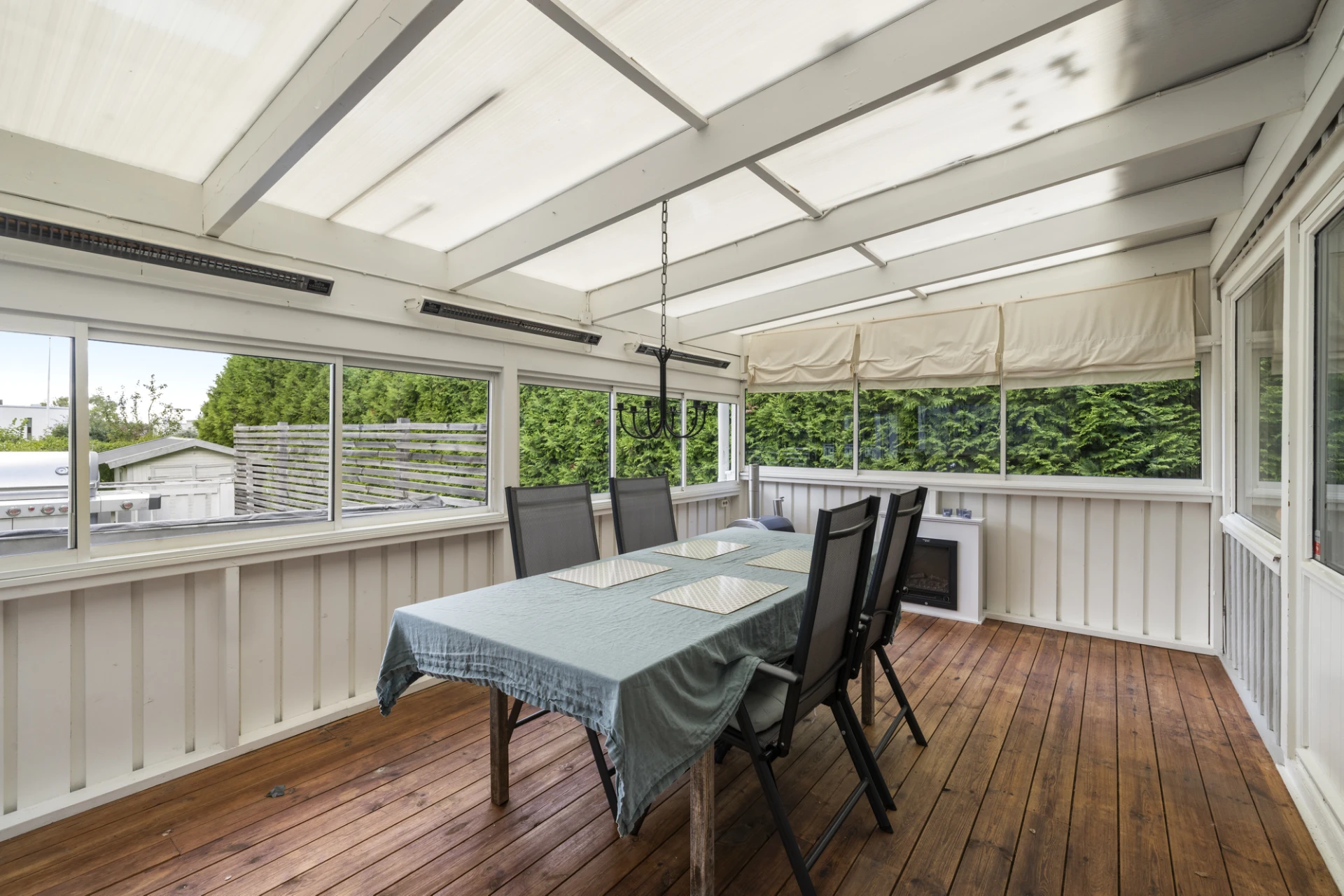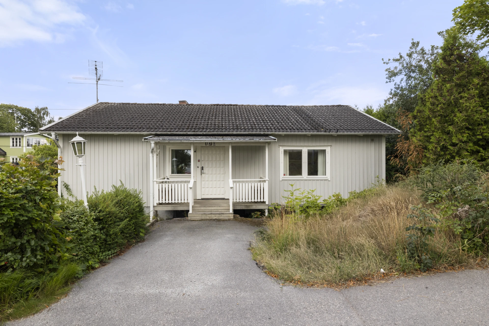 Vardagsrummet erbjuder gott om plats för en stor soffgrupp och möblemang för hela familjen. Den mysiga braskaminen skapar värme och trivsel under årets kalla dagar. Från vardagsrummet nås det inglasade uterummet som blir en naturlig förlängning av vardagslivet under både sommar och vinter. Parkettgolv, vitmålade väggar och vitmålad träpanel i taket.