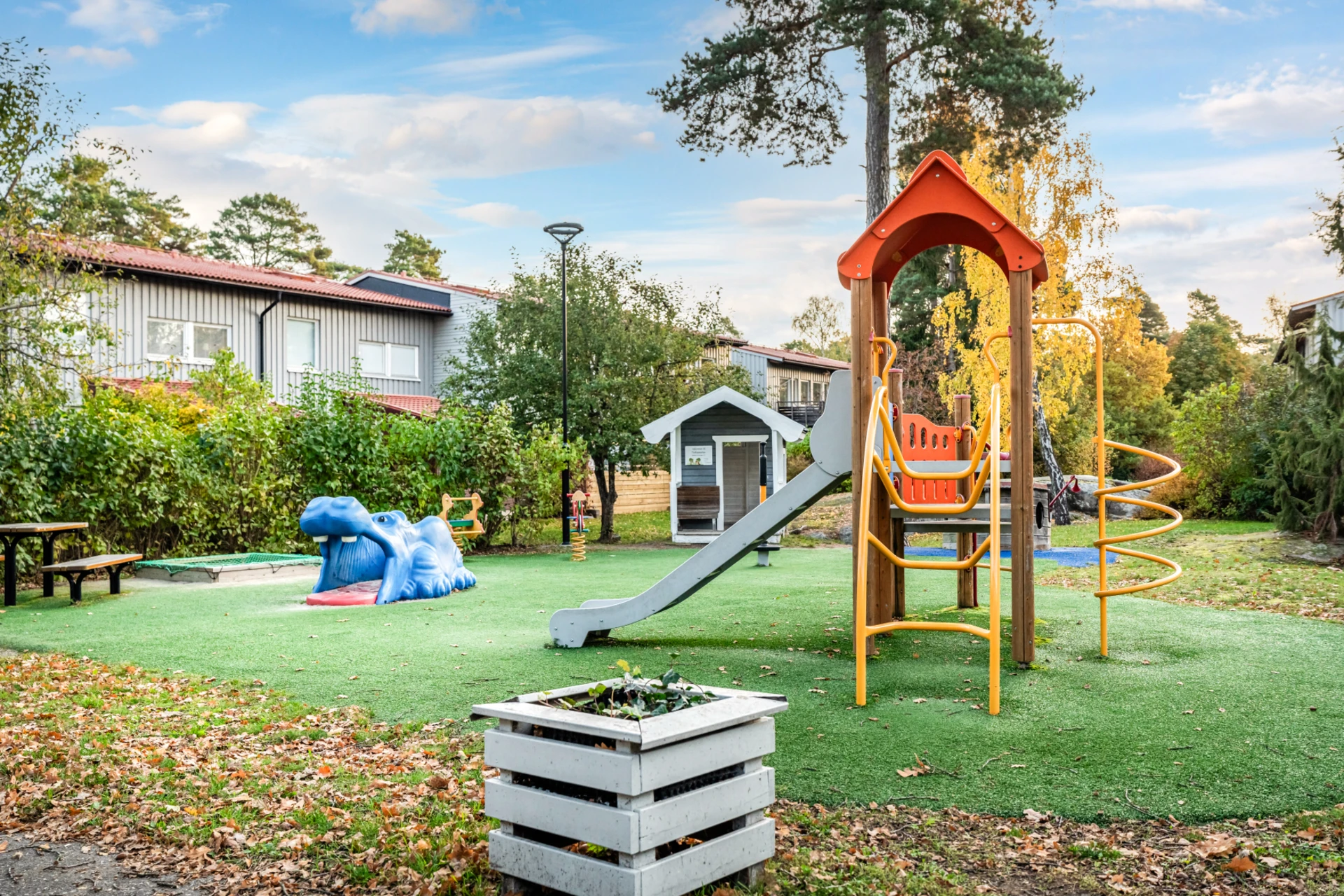 2018 Ombyggnad av båda lekplatserna. Förbättrad skärmning av samtliga takluckor