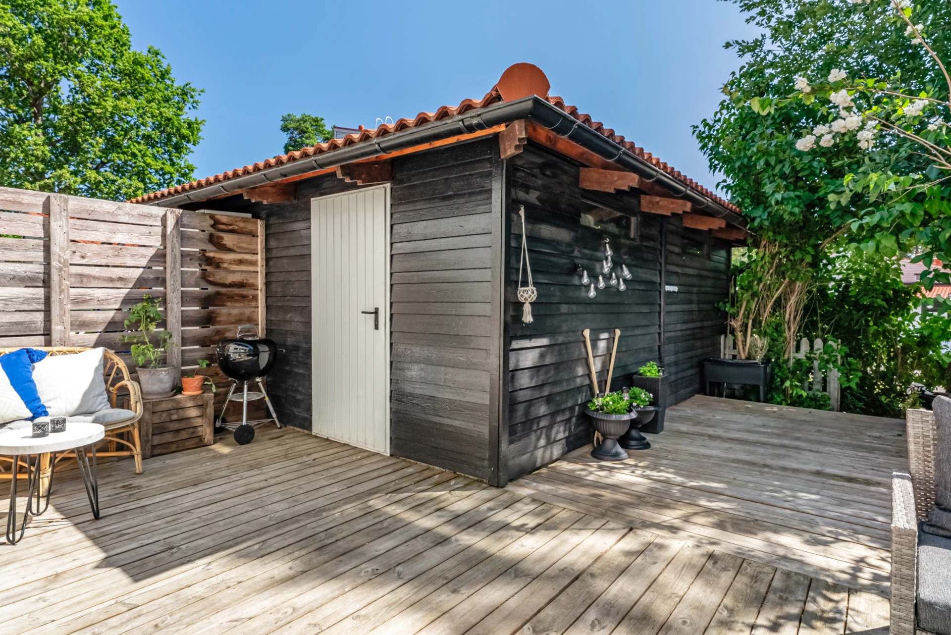 I anslutning till baksidan finns ett praktiskt förråd.