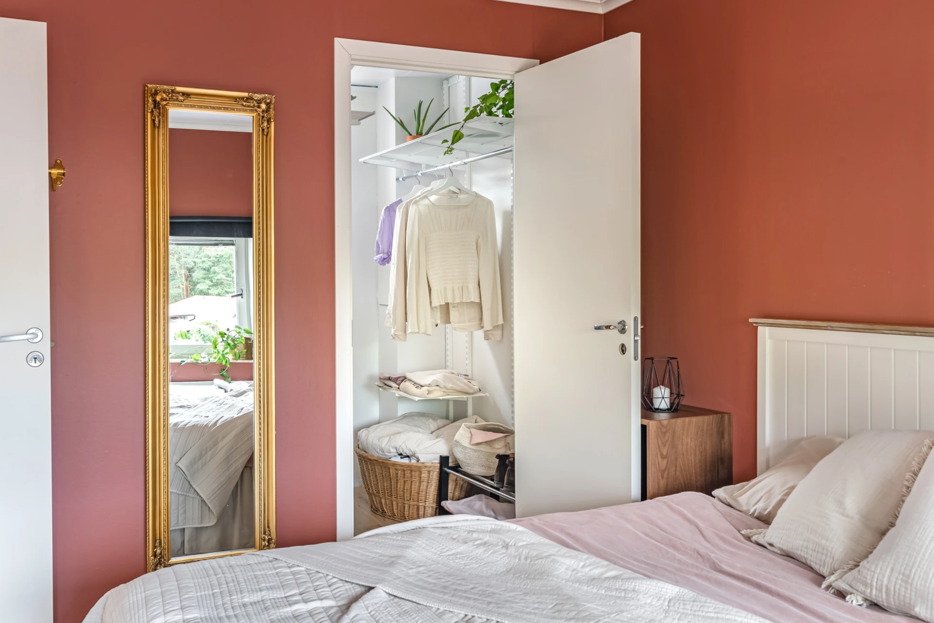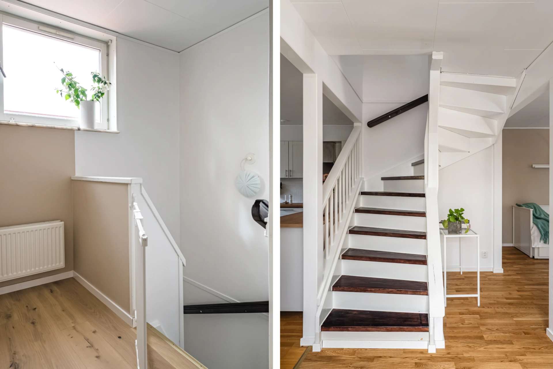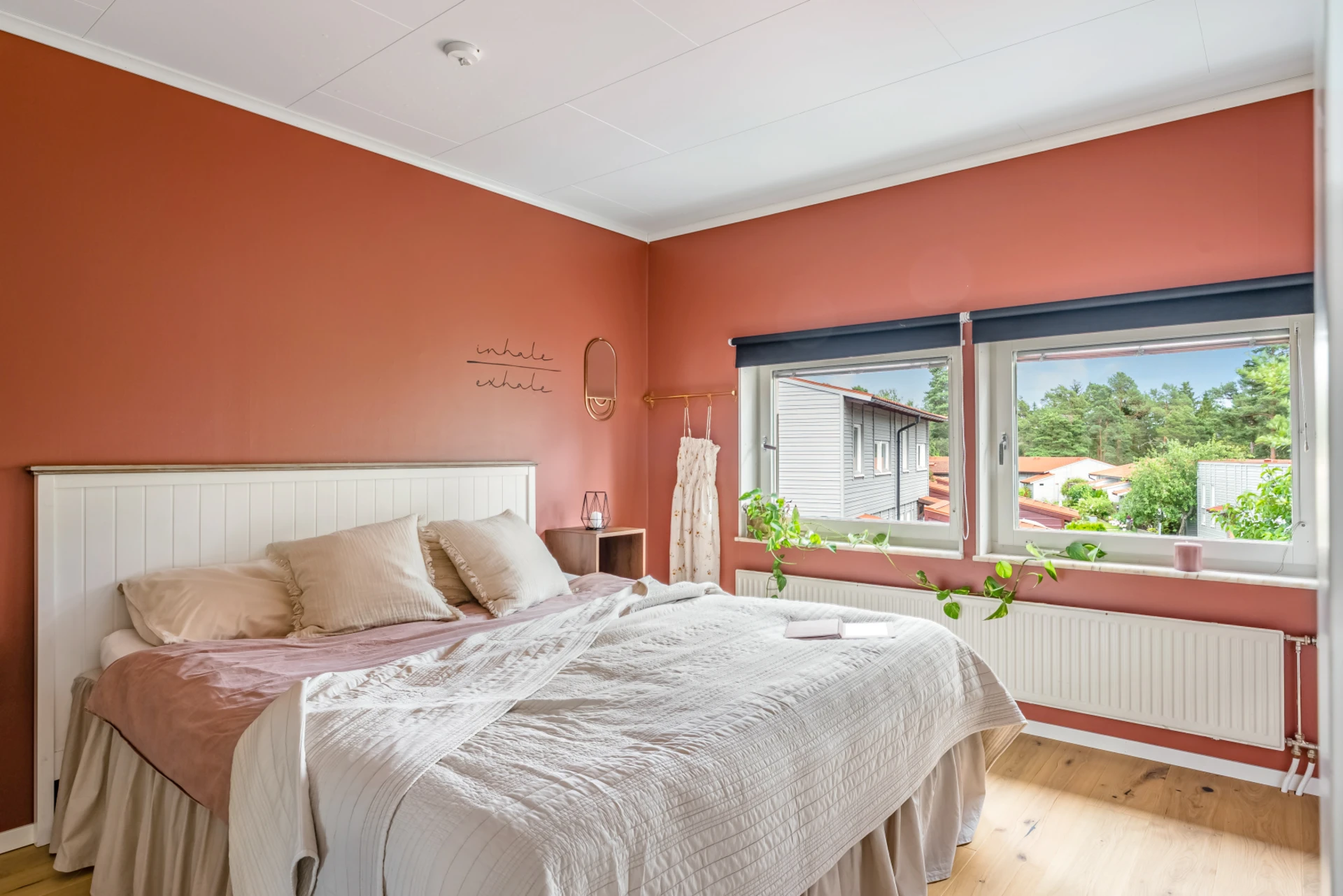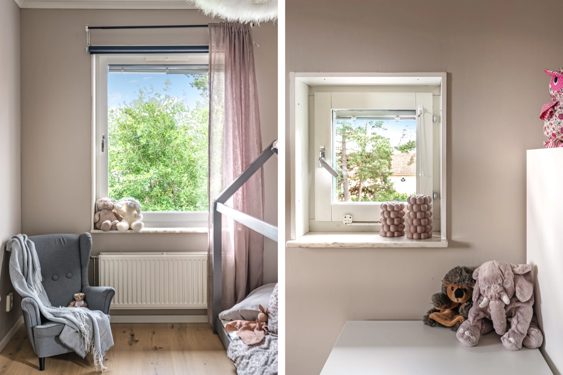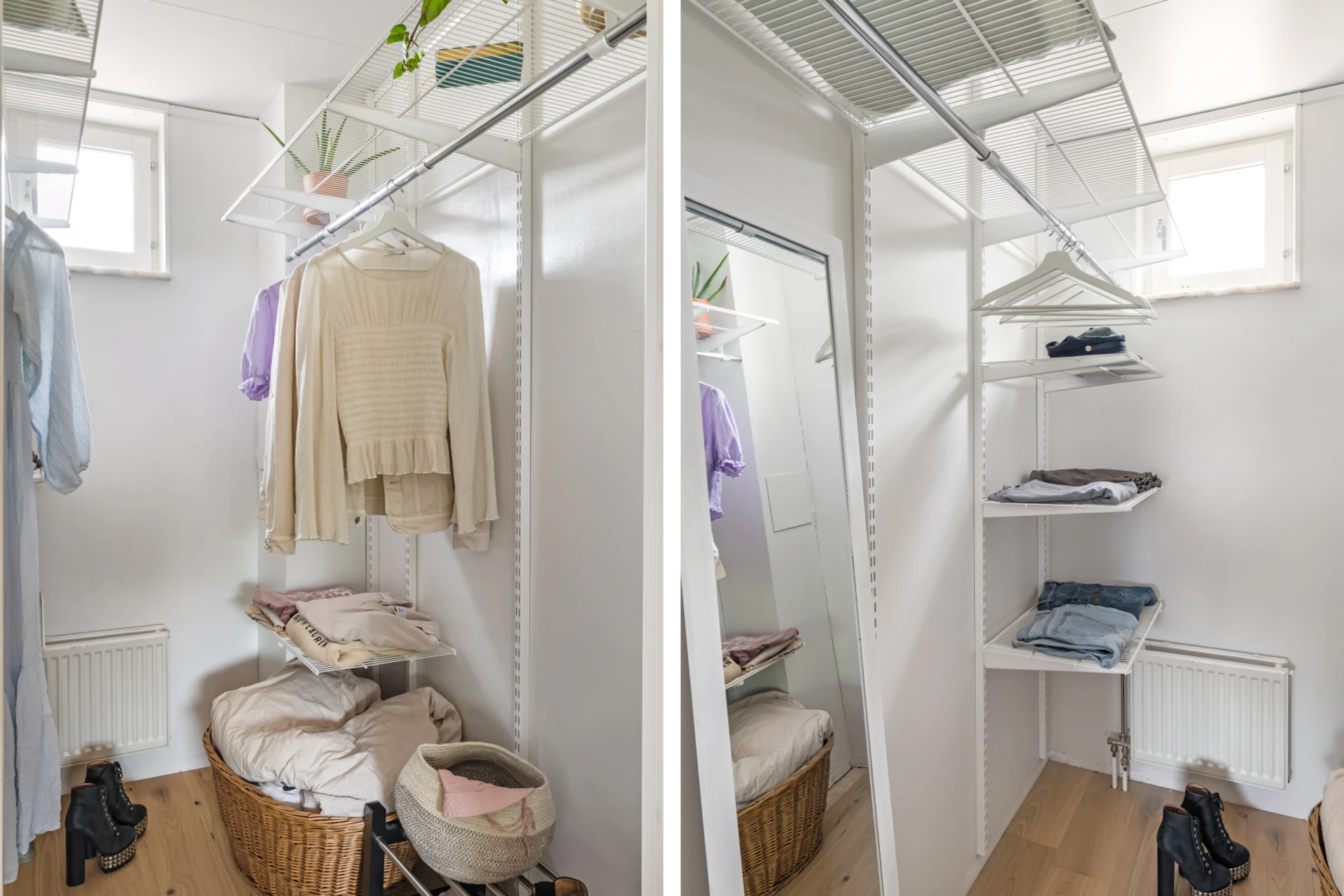 Två generösa sovrum med fina golv och målade väggar i sobra färger. Fönster som vätter mot baksida och grönska. Ett av sovrummen har en walk-in-closet i anslutning.