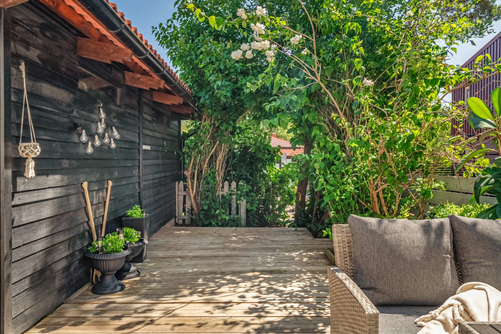 Denna bostad erbjuder ett trevligt gavelläge med uteplats i härligt läge.