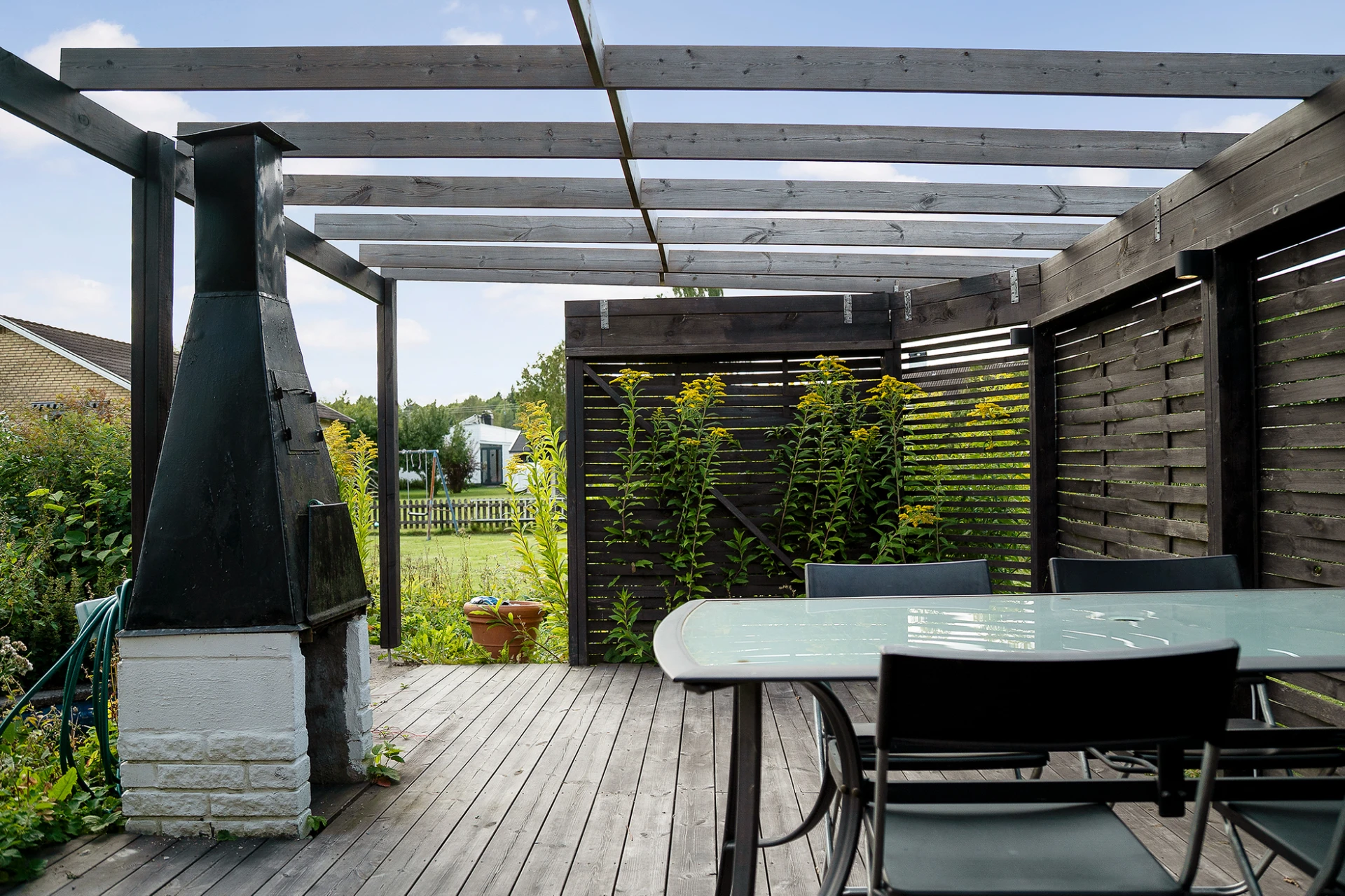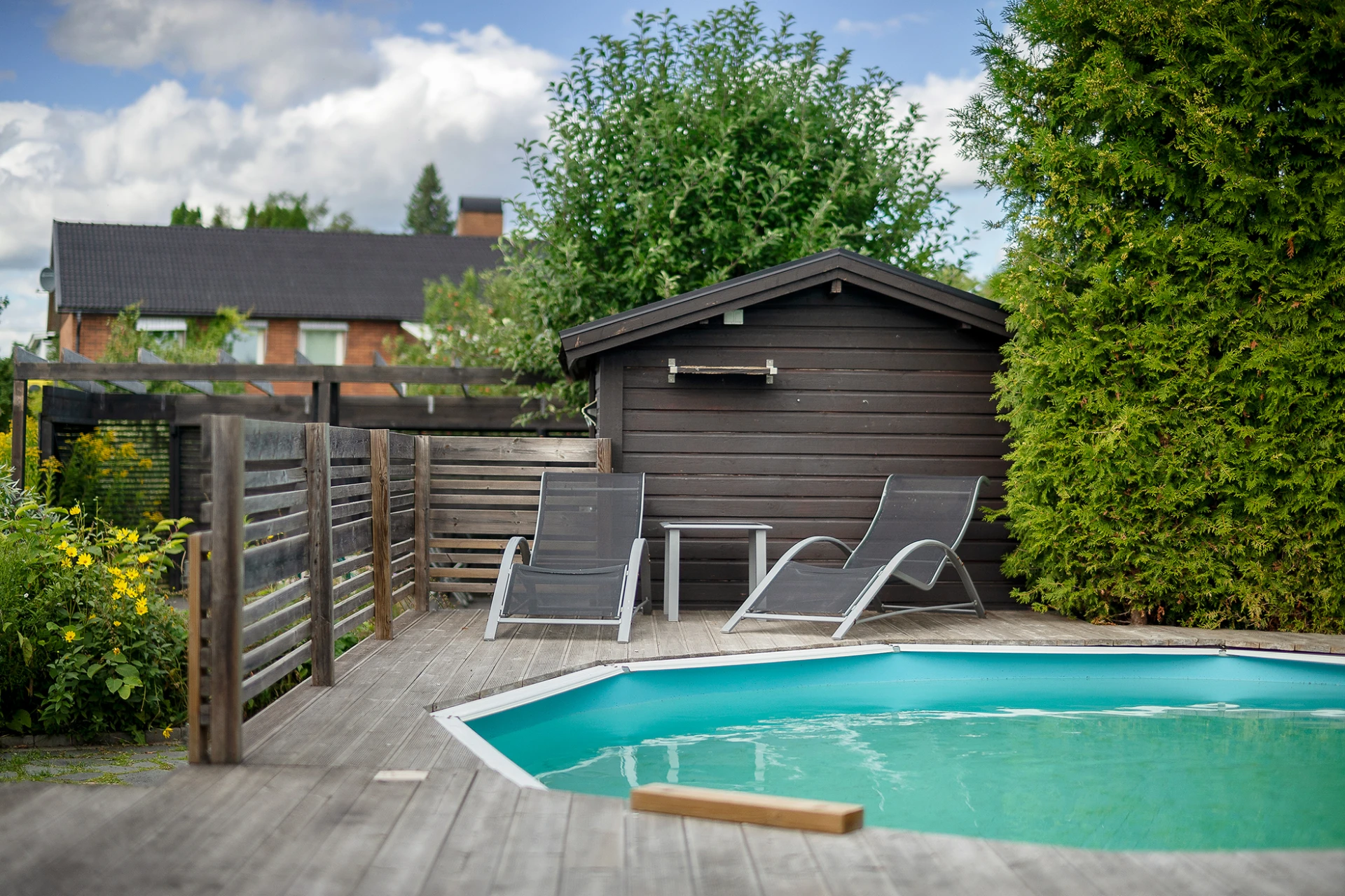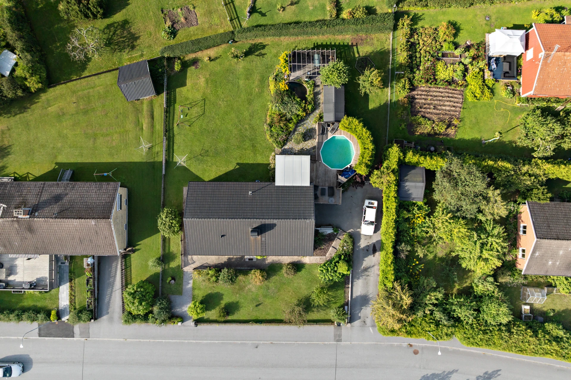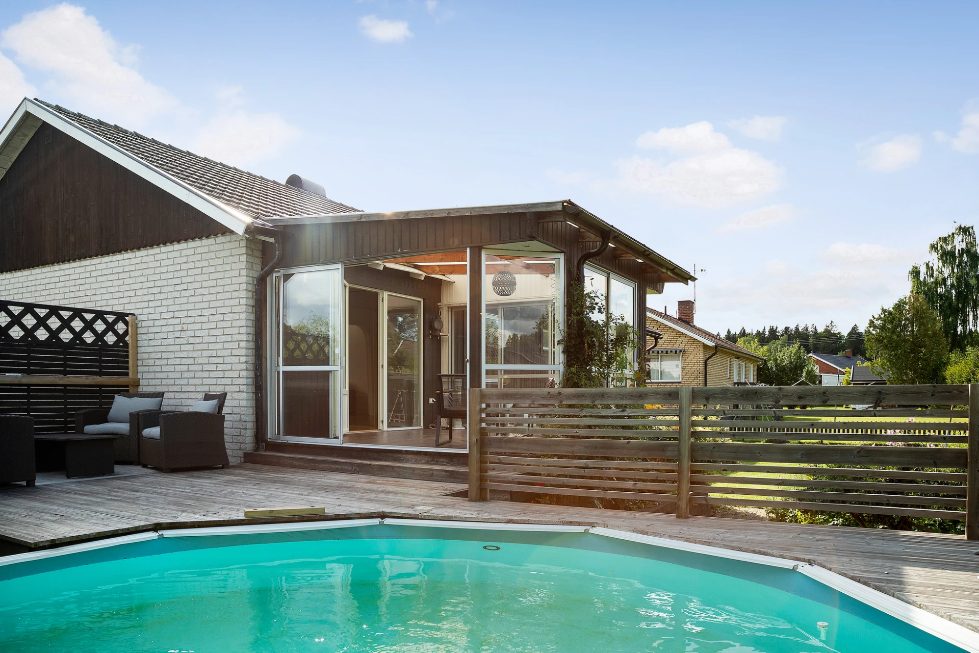 Härlig och insynsskyddad trädgårdstomt med gott om plats för lek och odling. På baksidan finns en stor altan med flera uteplatser, varav en del är inglasad. På tomten finns även ett poolområde med trädäck, förråd och plats för solstolar. Perfekt för sommarens varma dagar.