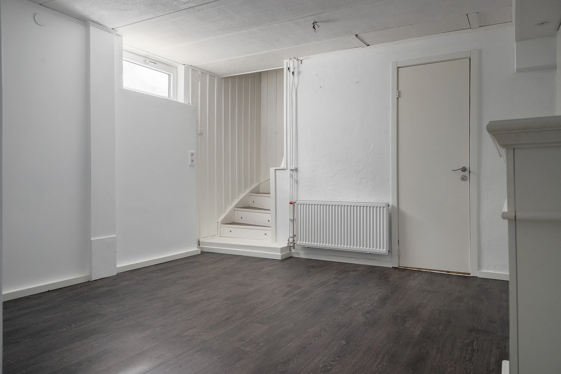 Flera praktiska förråd och förvaringsutrymmen finns på källarplanet.