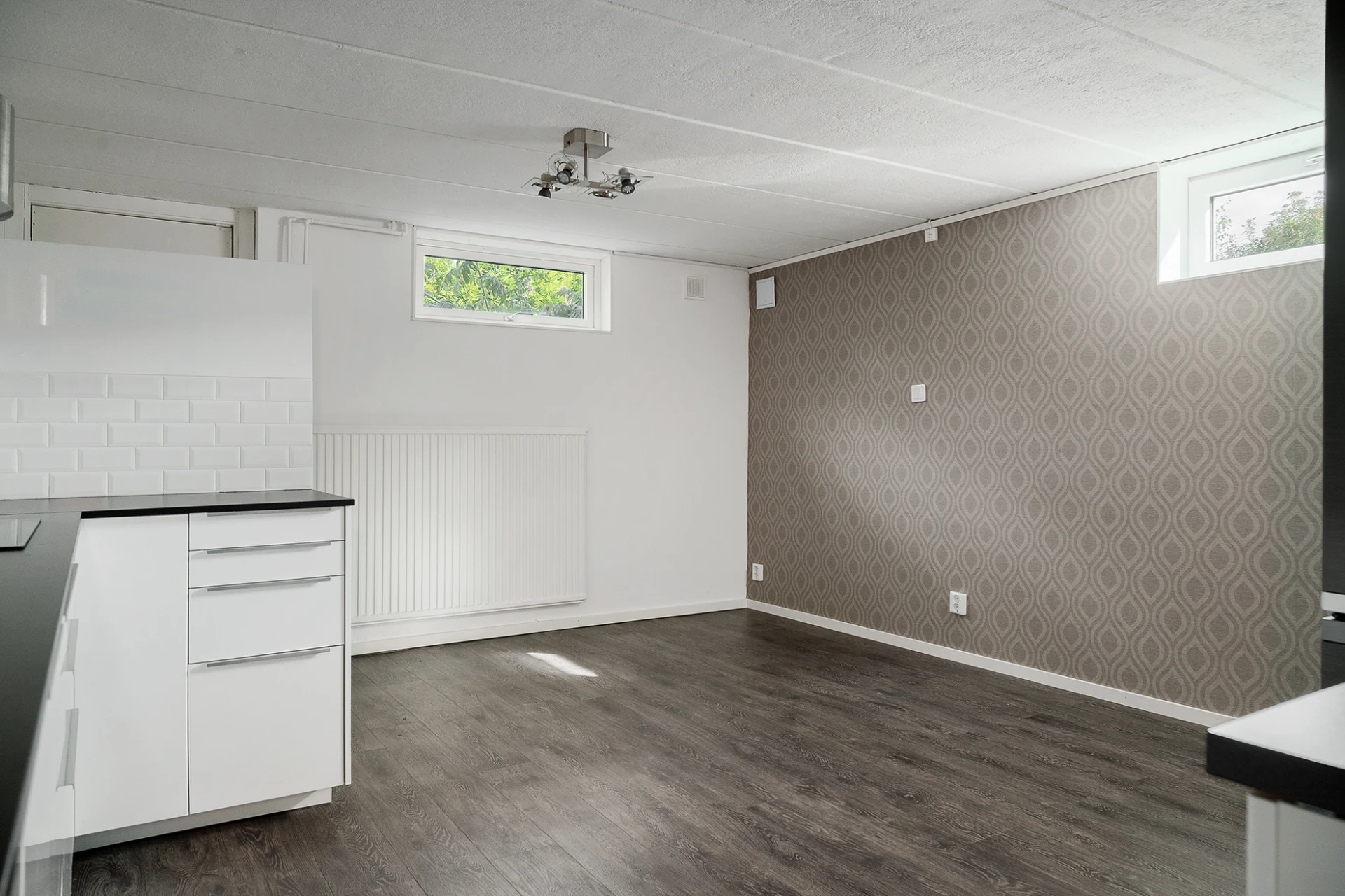 Fullt utrustad källare med generösa ytor som erbjuder flera användningsområden. Finns möjligheter att ha som uthyrnings del.