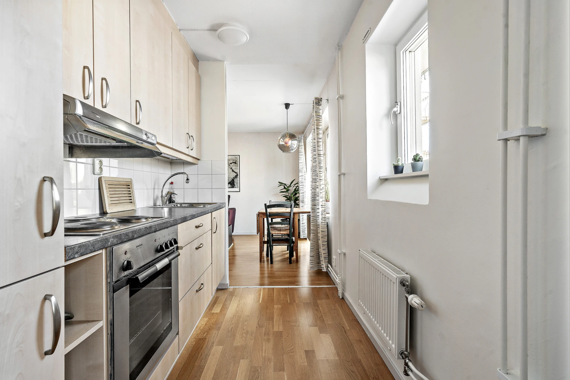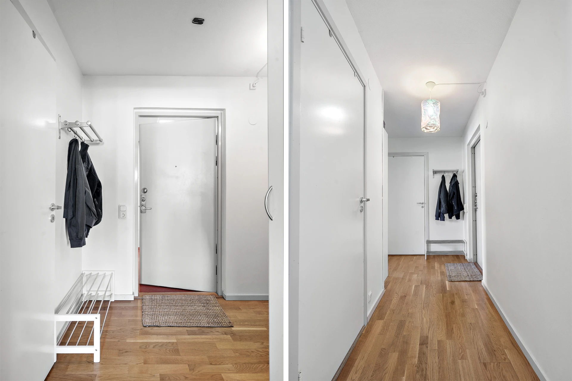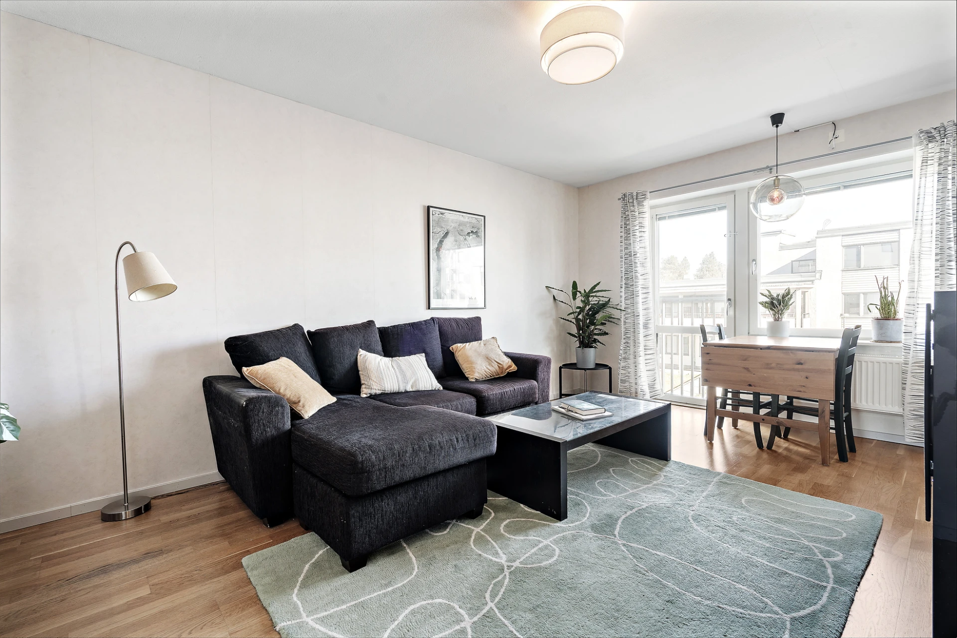 Välkommen till en ljus och trivsam bostad där de stora fönsterpartierna släpper in rikligt med dagsljus och skapar en luftig atmosfär. Här möts du av en inbjudande hall med gott om plats för avhängning, ett rymligt vardagsrum med utrymme för både en större soffgrupp och matplats samt ett funktionellt kök med bra arbetsytor. Vardagsrummet ligger i öppen anslutning till köket vilket ger fina sociala ytor för umgänge.